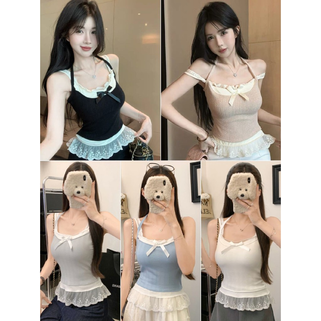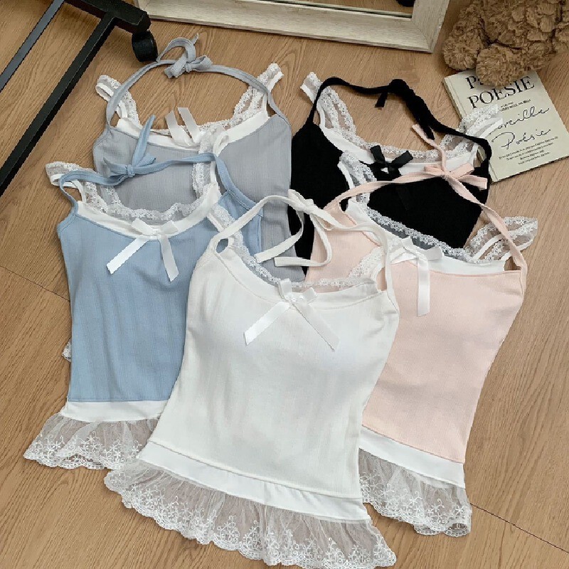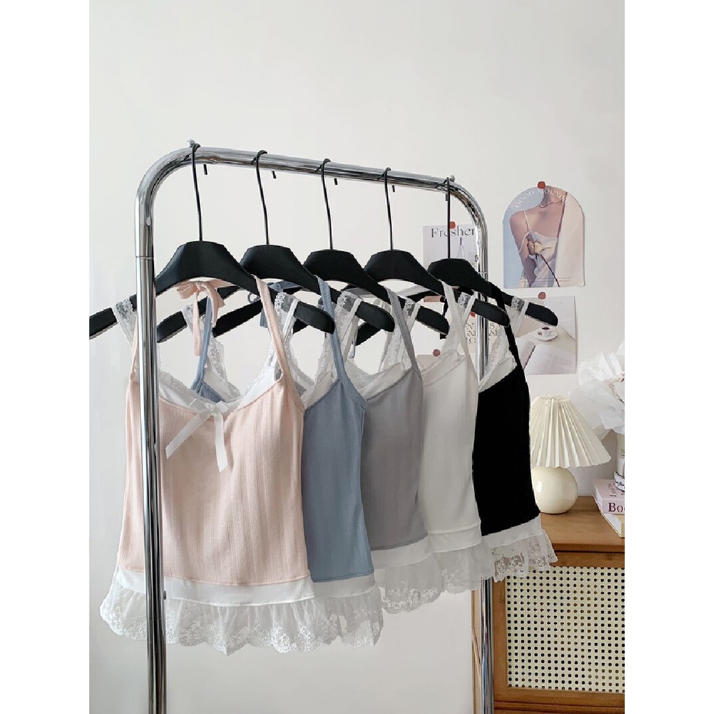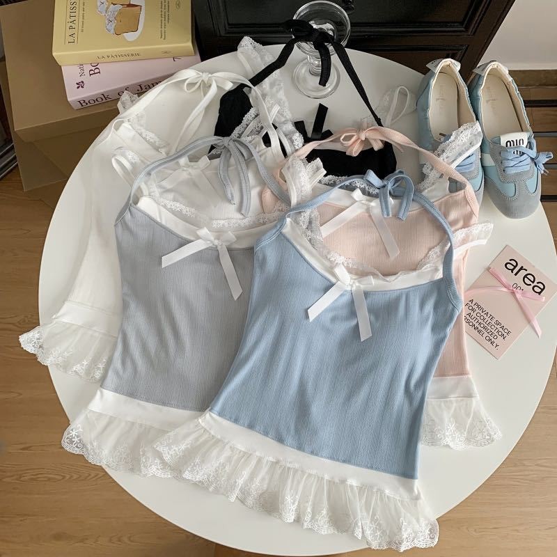 【HOT 本舖】夏季新款辣妹蕾絲邊吊帶背心女別致小眾一體式帶胸墊百搭上衣外搭小背心辣妹上衣白色,均碼|灰色,均碼|黑色,均碼|藍色,均碼|粉色,均碼Tanks & CamisolesHOT本舖|女裝館