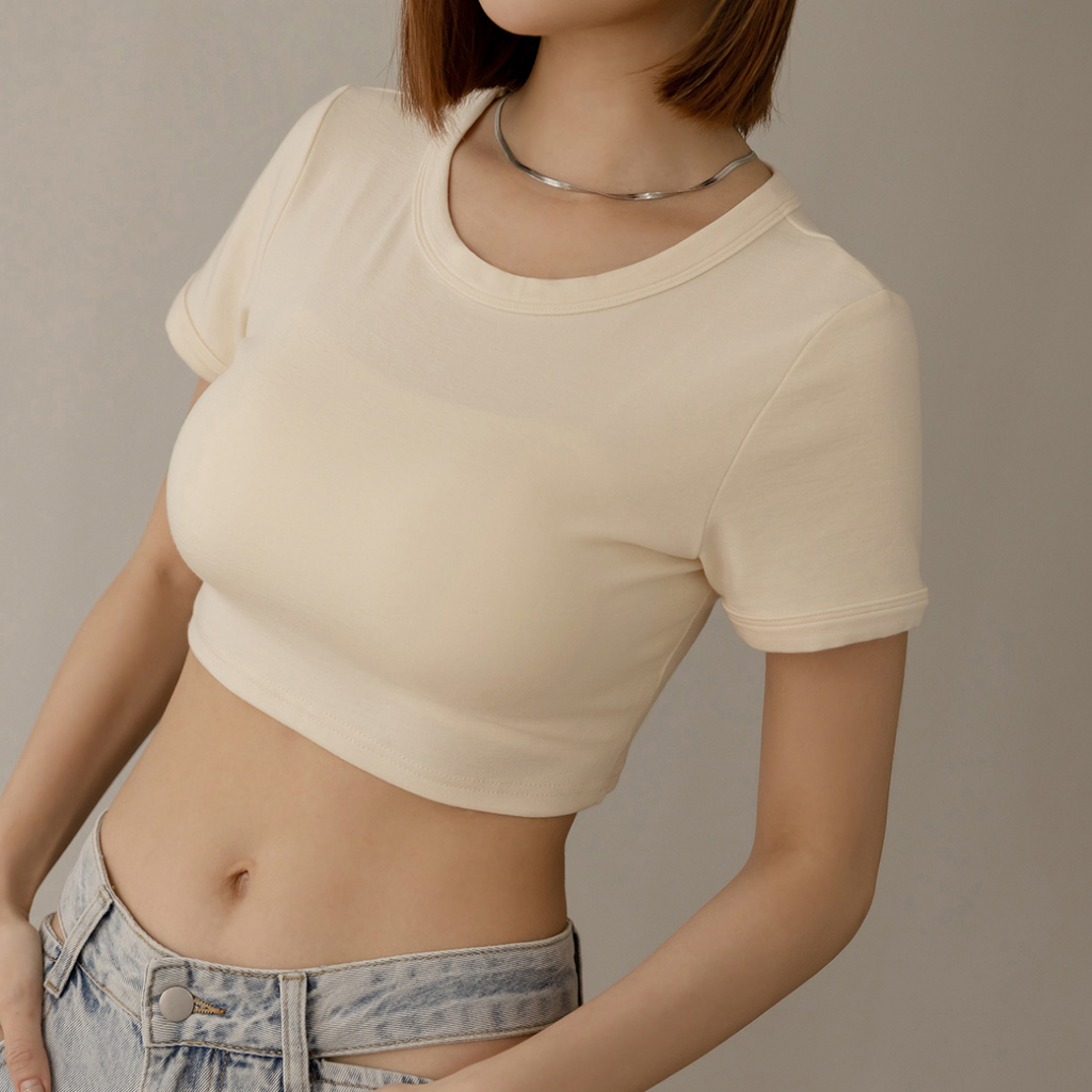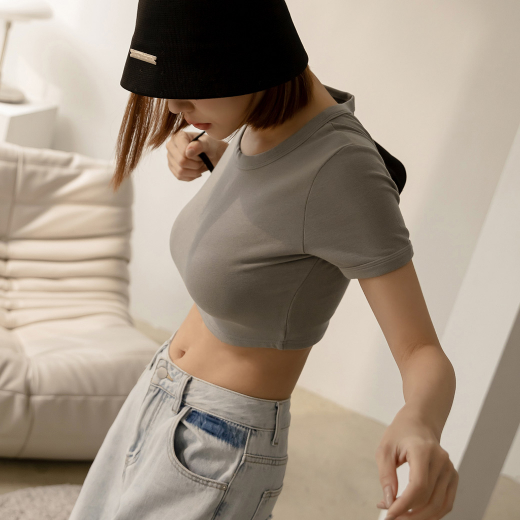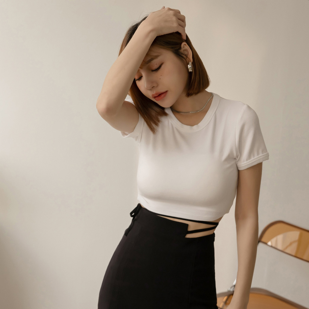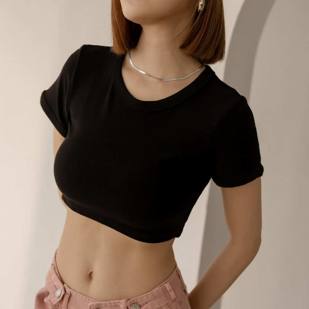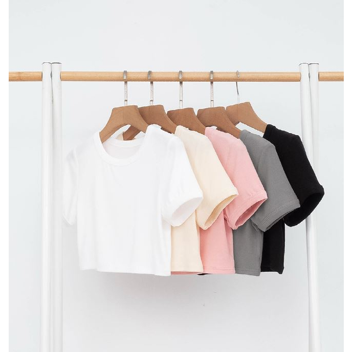 IN SHOP 圓領彈性短版T恤-共5色【KY19169】煙灰|黑|白|杏|粉T-shirtsIN’ SHOP 旗艦店