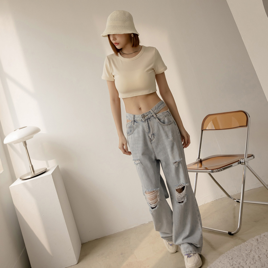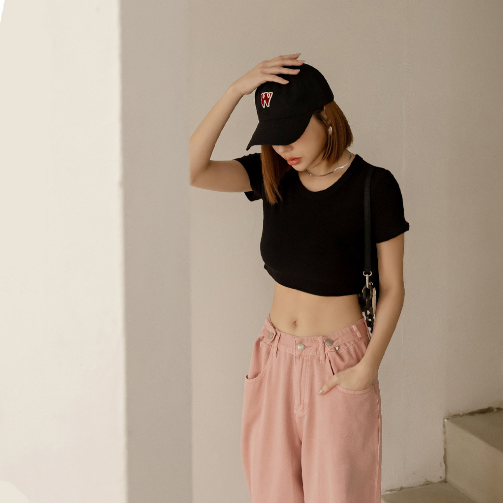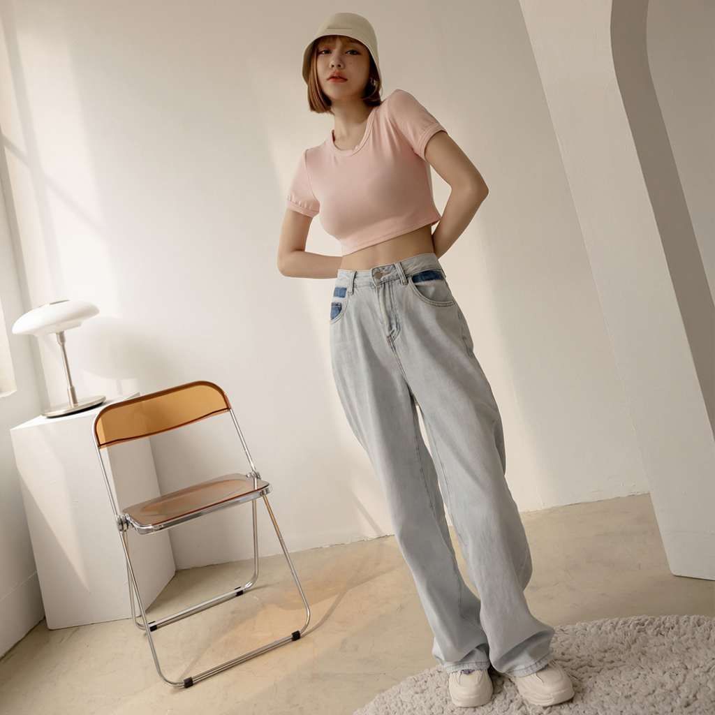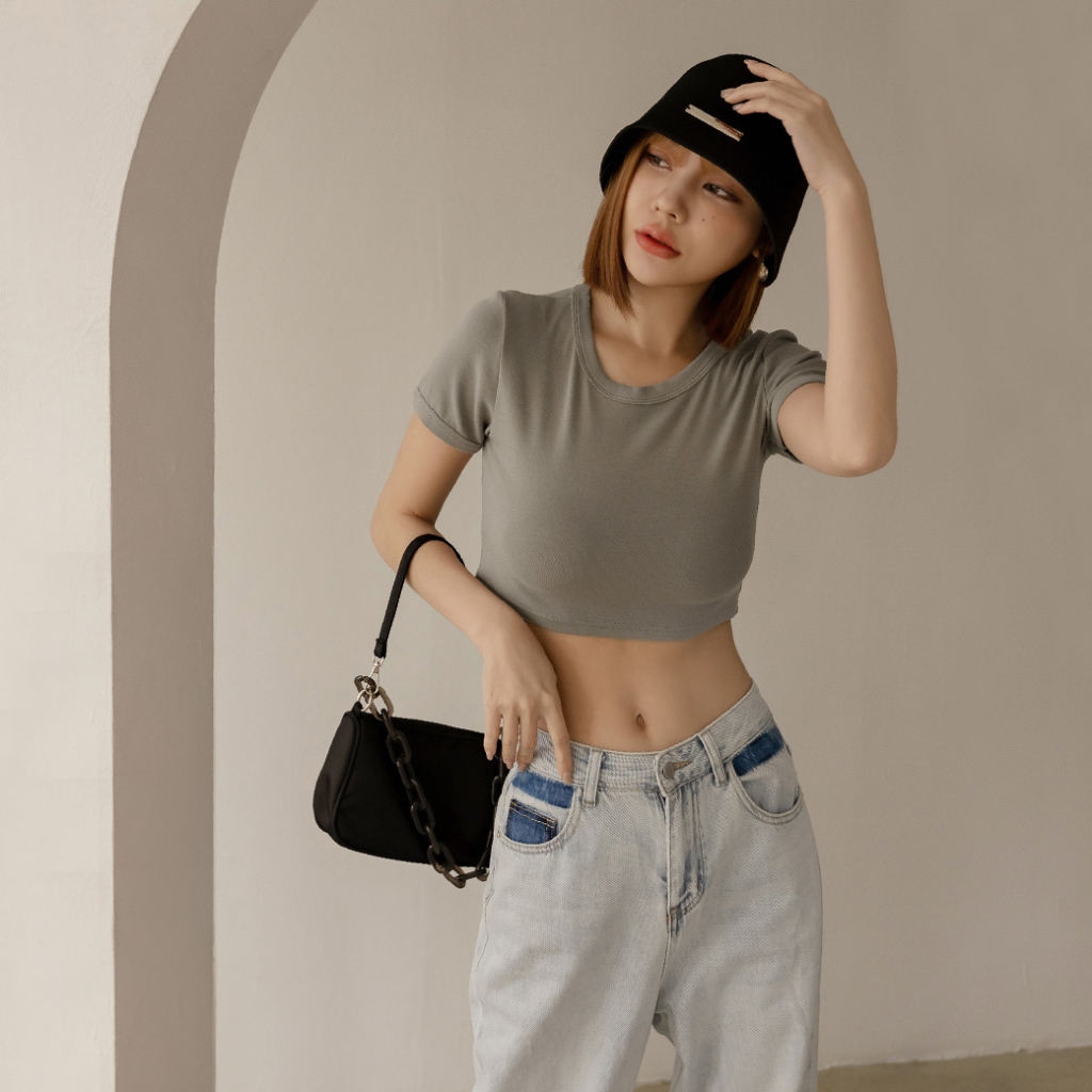 IN SHOP 圓領彈性短版T恤-共5色【KY19169】煙灰|黑|白|杏|粉T-shirtsIN’ SHOP 旗艦店