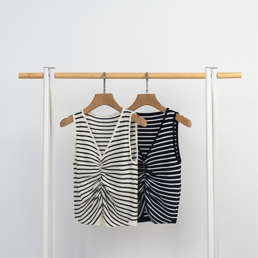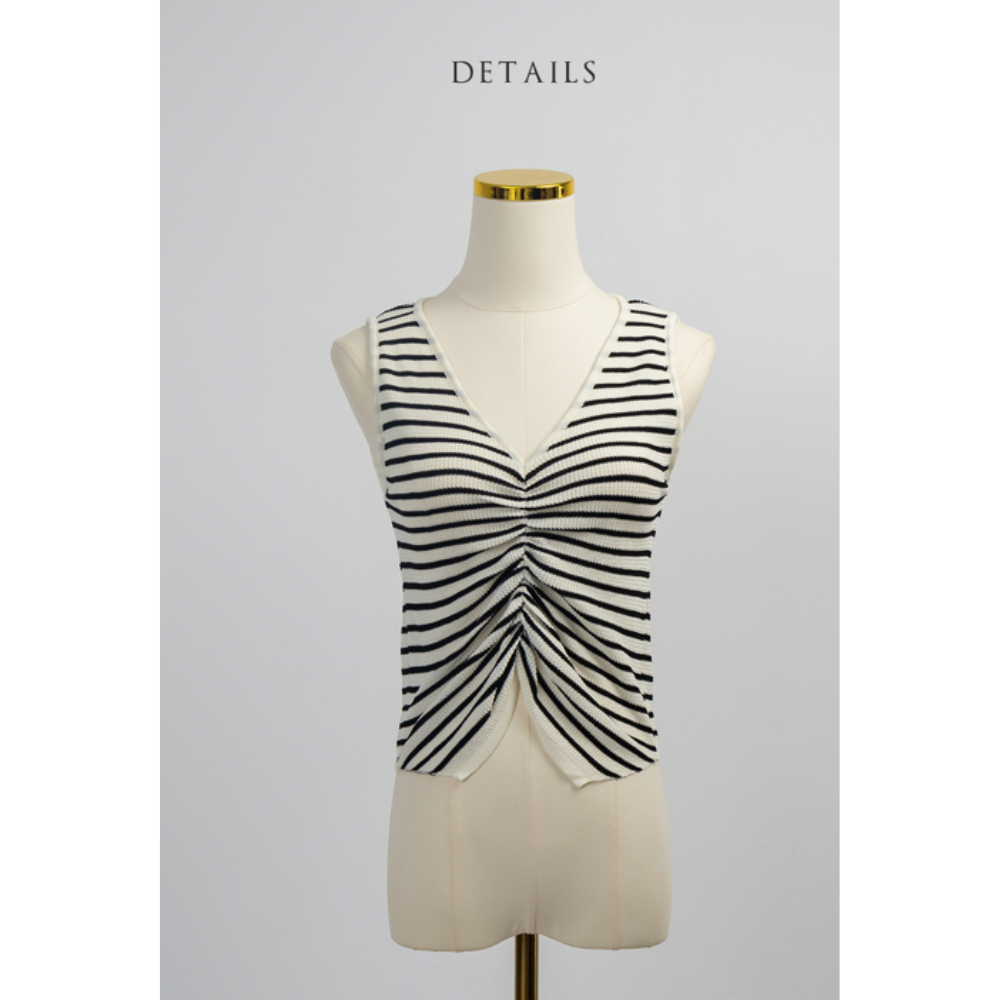 IN SHOP V領抓褶線條背心-共2色【KT223284】黑|白Tanks & CamisolesIN’ SHOP 旗艦店