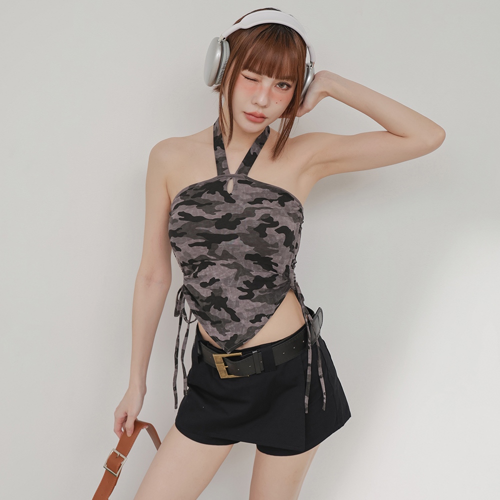 IN SHOP 側抽繩繞脖Bra背心-共3色【KT224591】黑|迷彩綠|迷彩灰Tanks & CamisolesIN’ SHOP 旗艦店