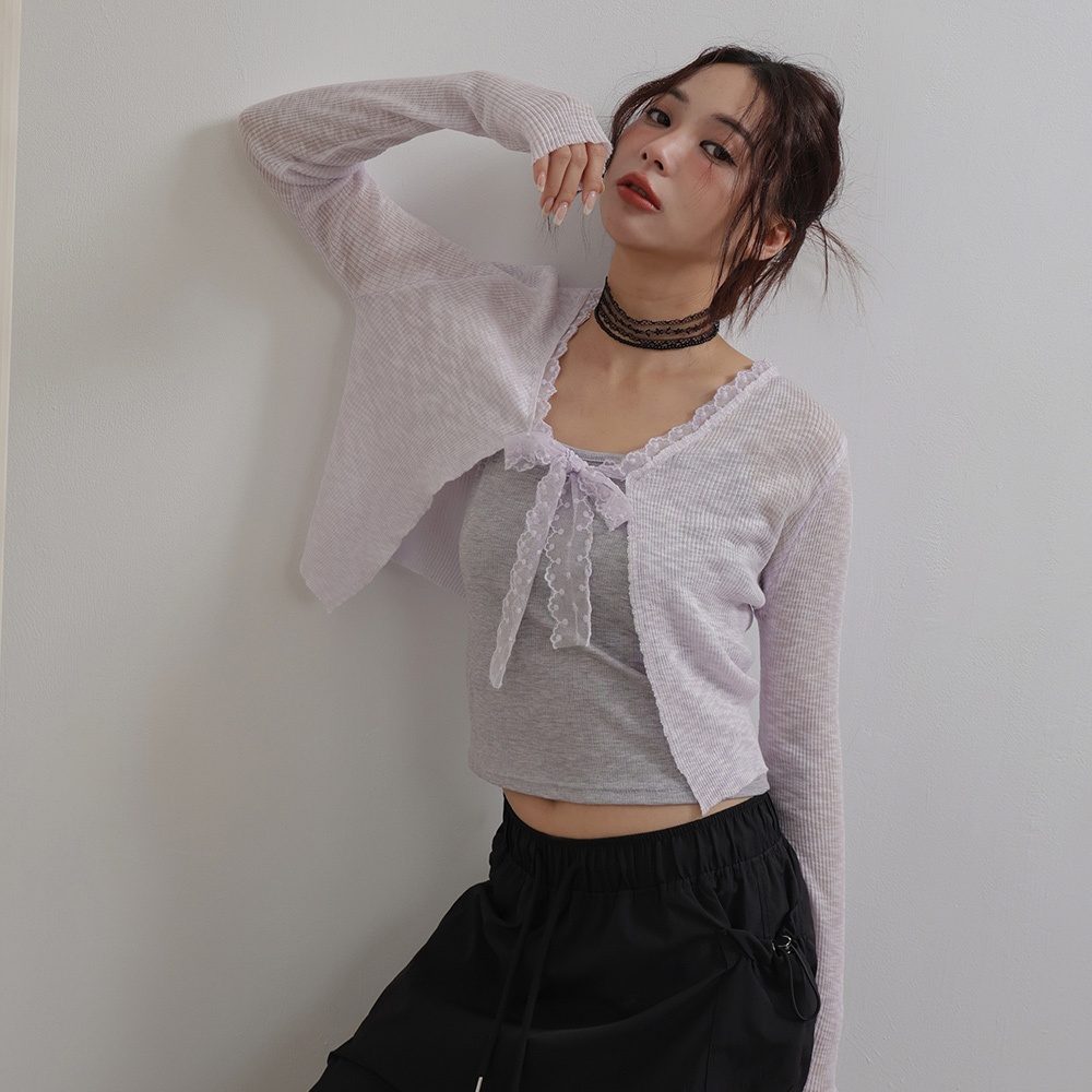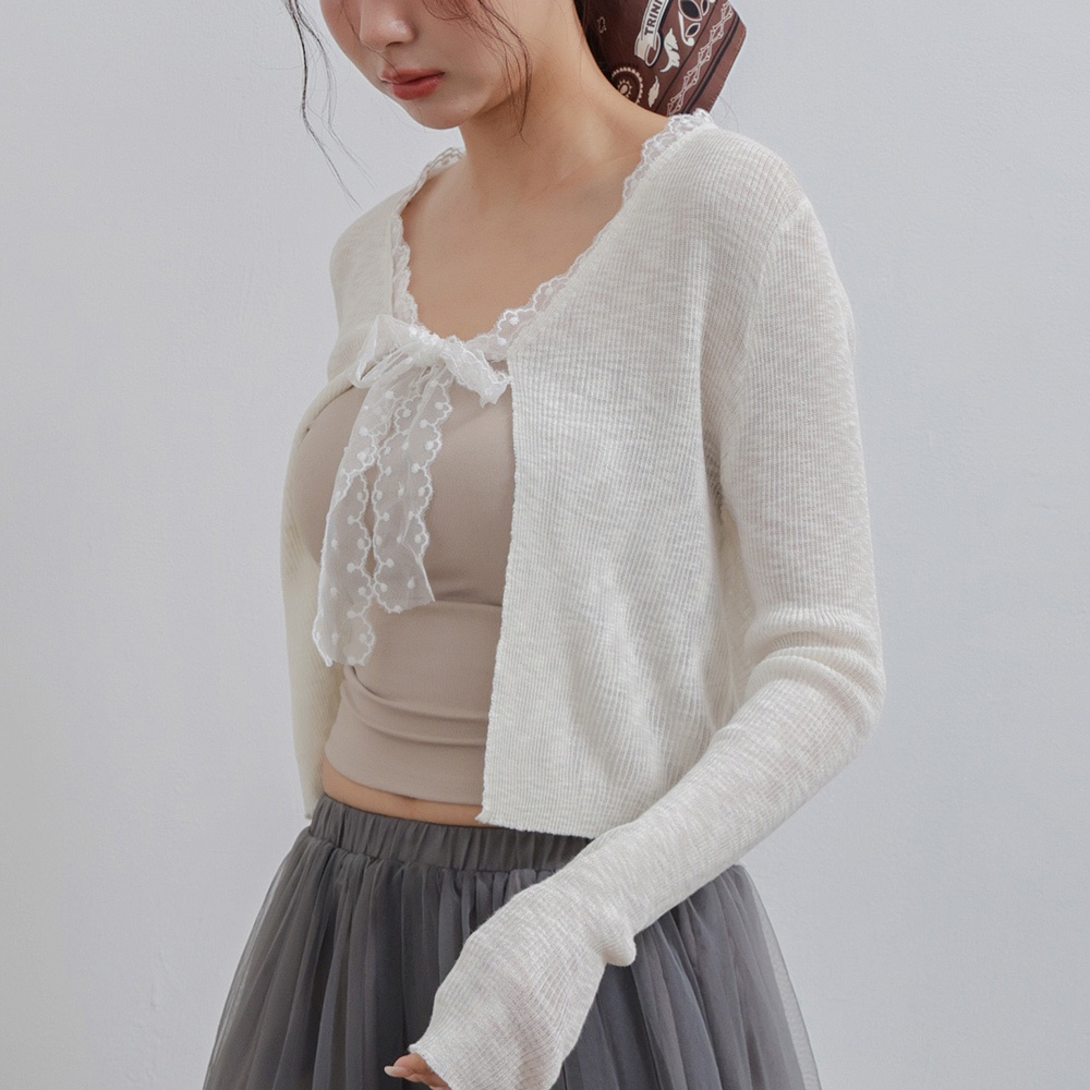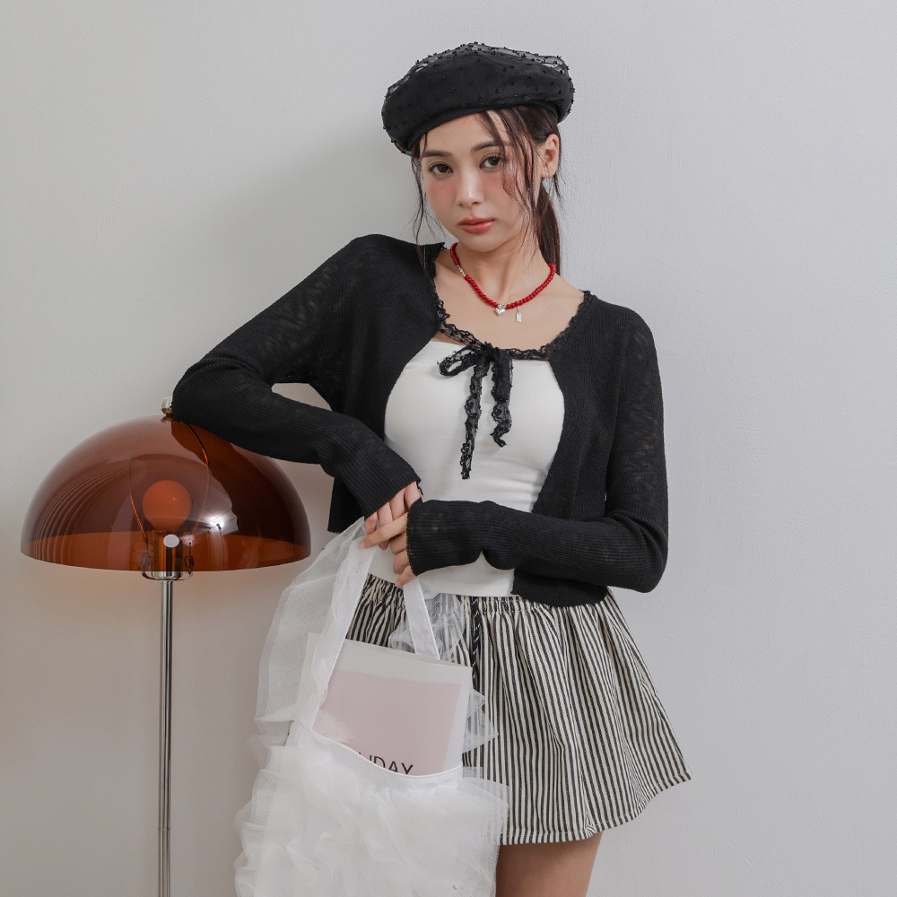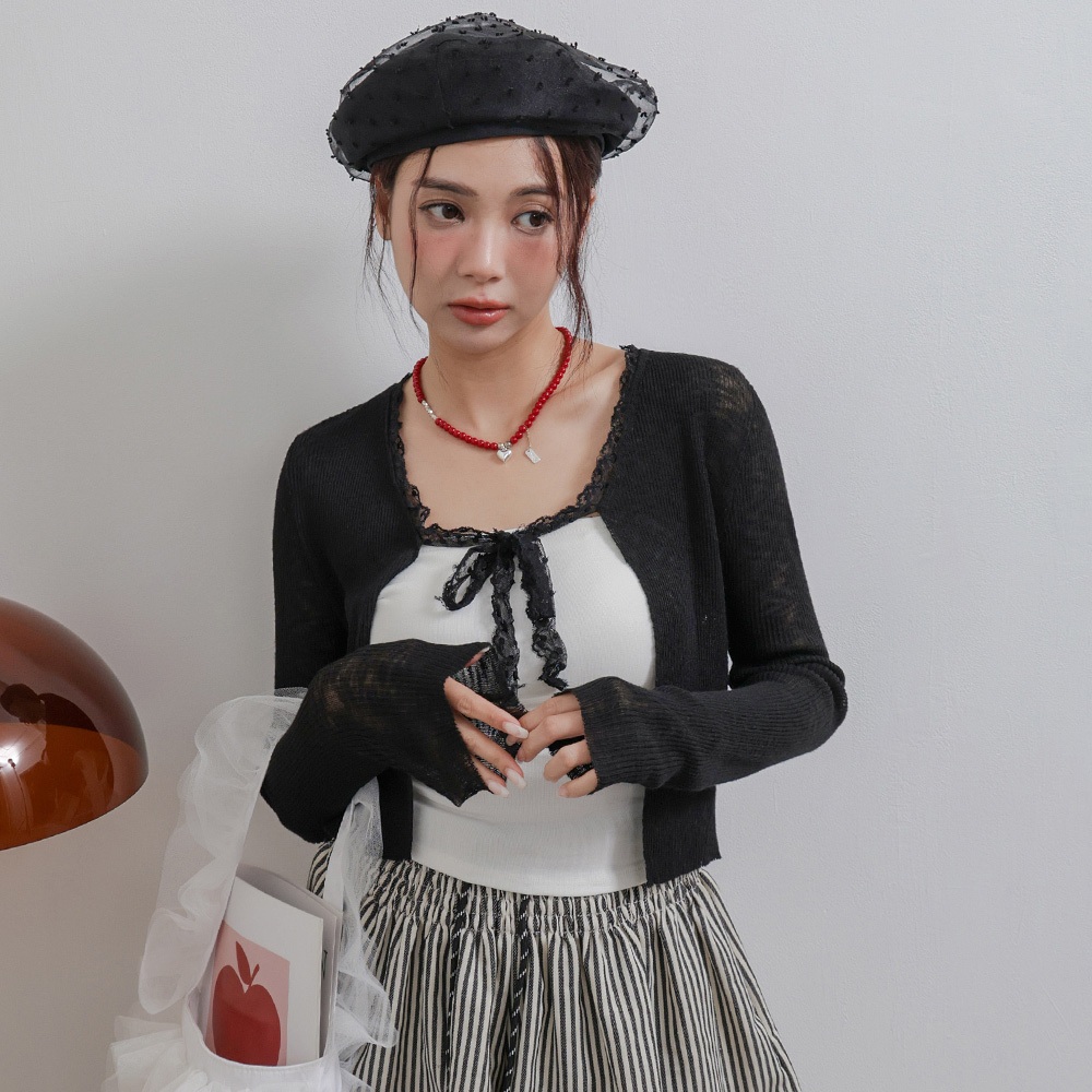 IN SHOP 綁帶蕾絲邊針織罩衫-共4色【KT281042】