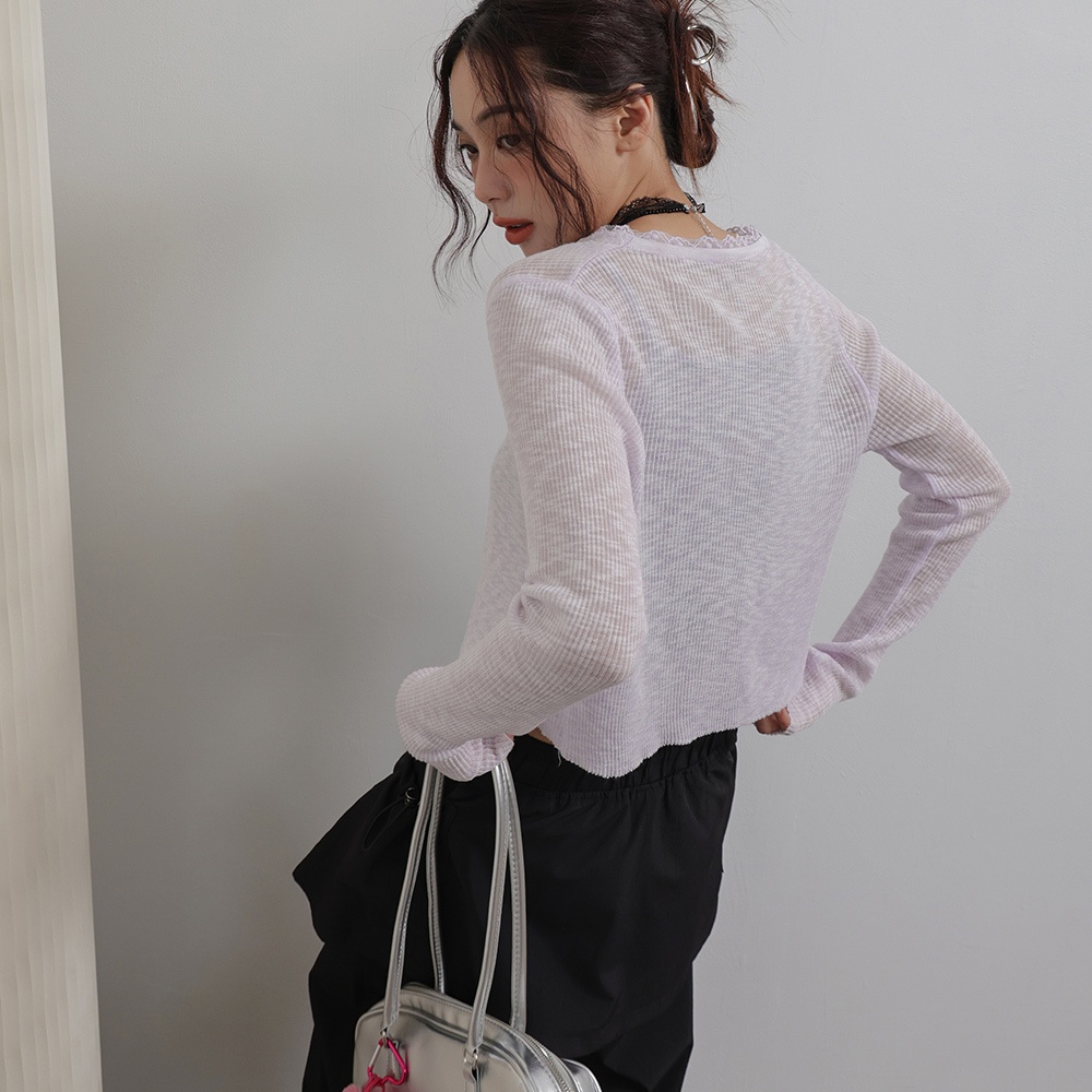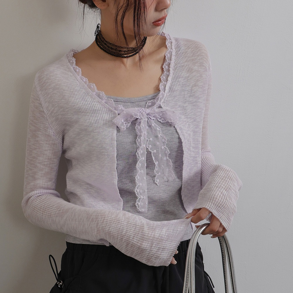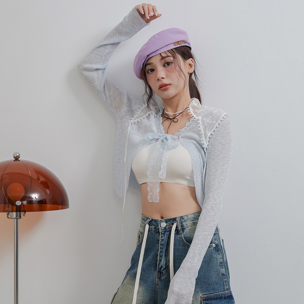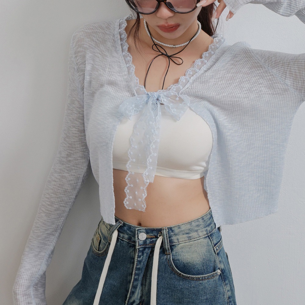 IN SHOP 綁帶蕾絲邊針織罩衫-共4色【KT281042】