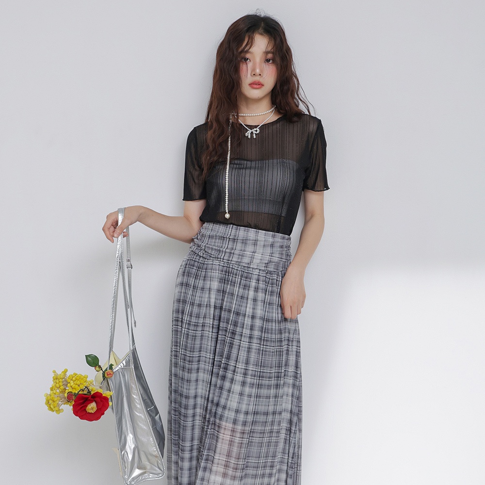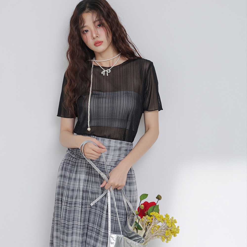 IN SHOP 微光直紋短袖網紗衣-共2色【KT224436】白|黑T-shirtsIN’ SHOP 旗艦店