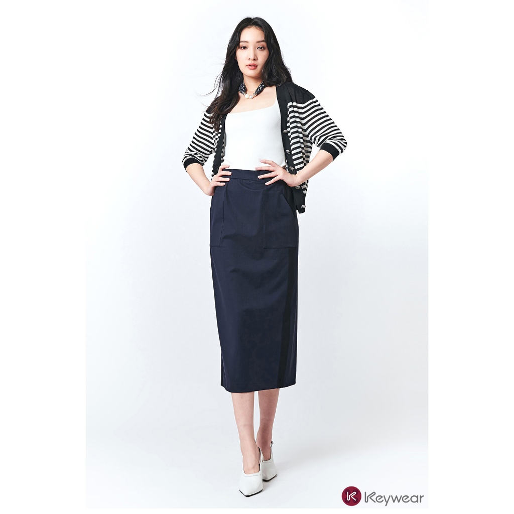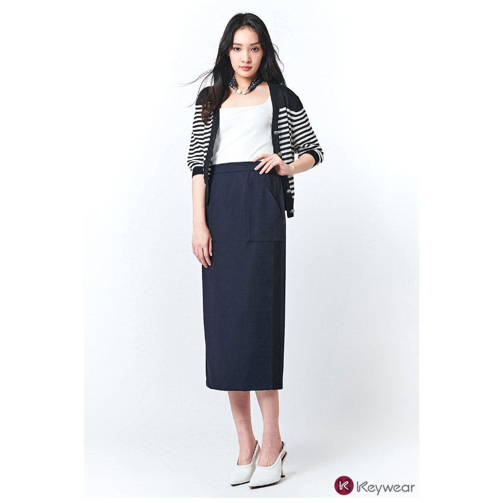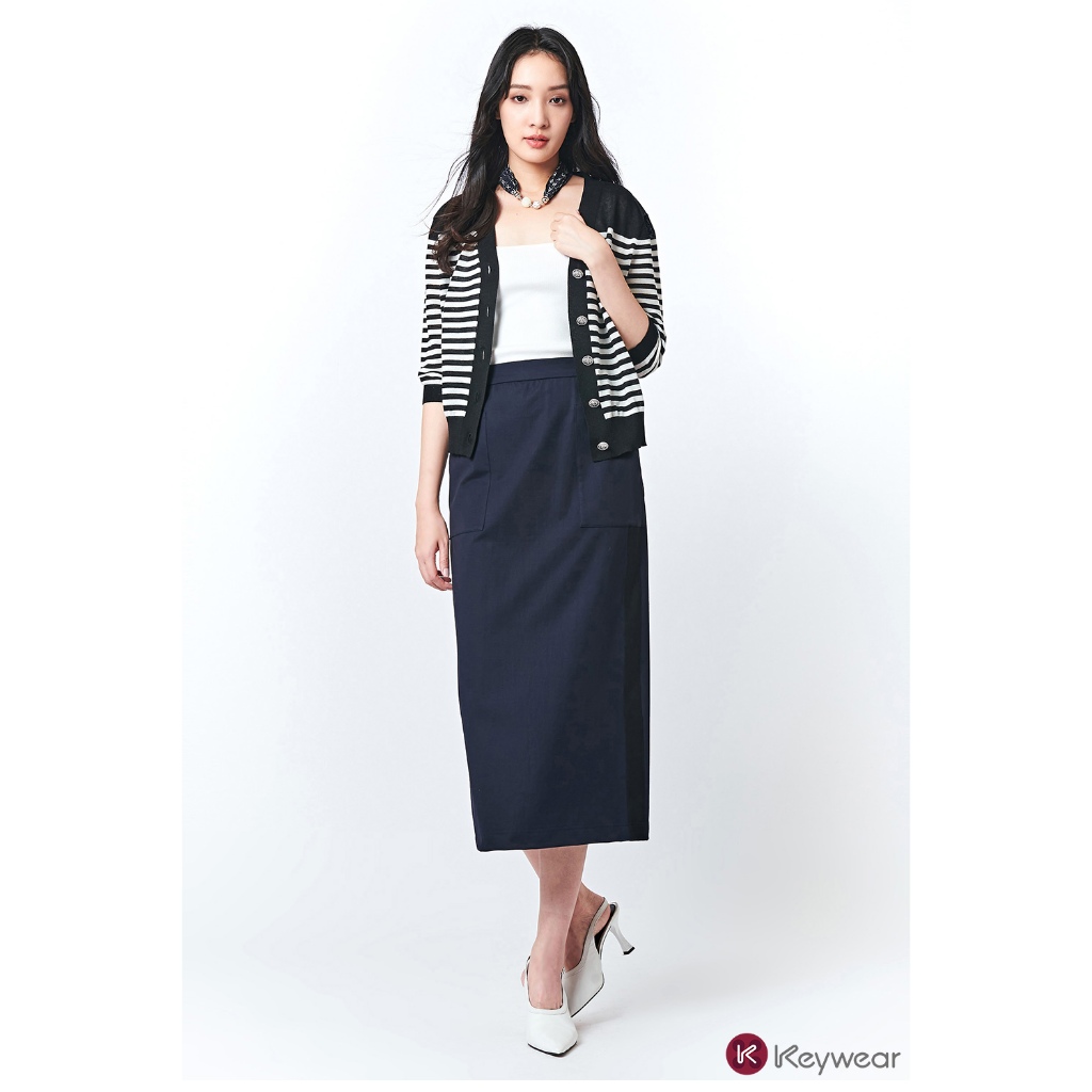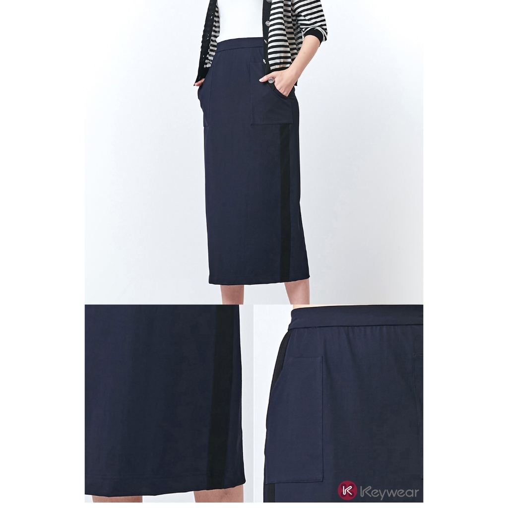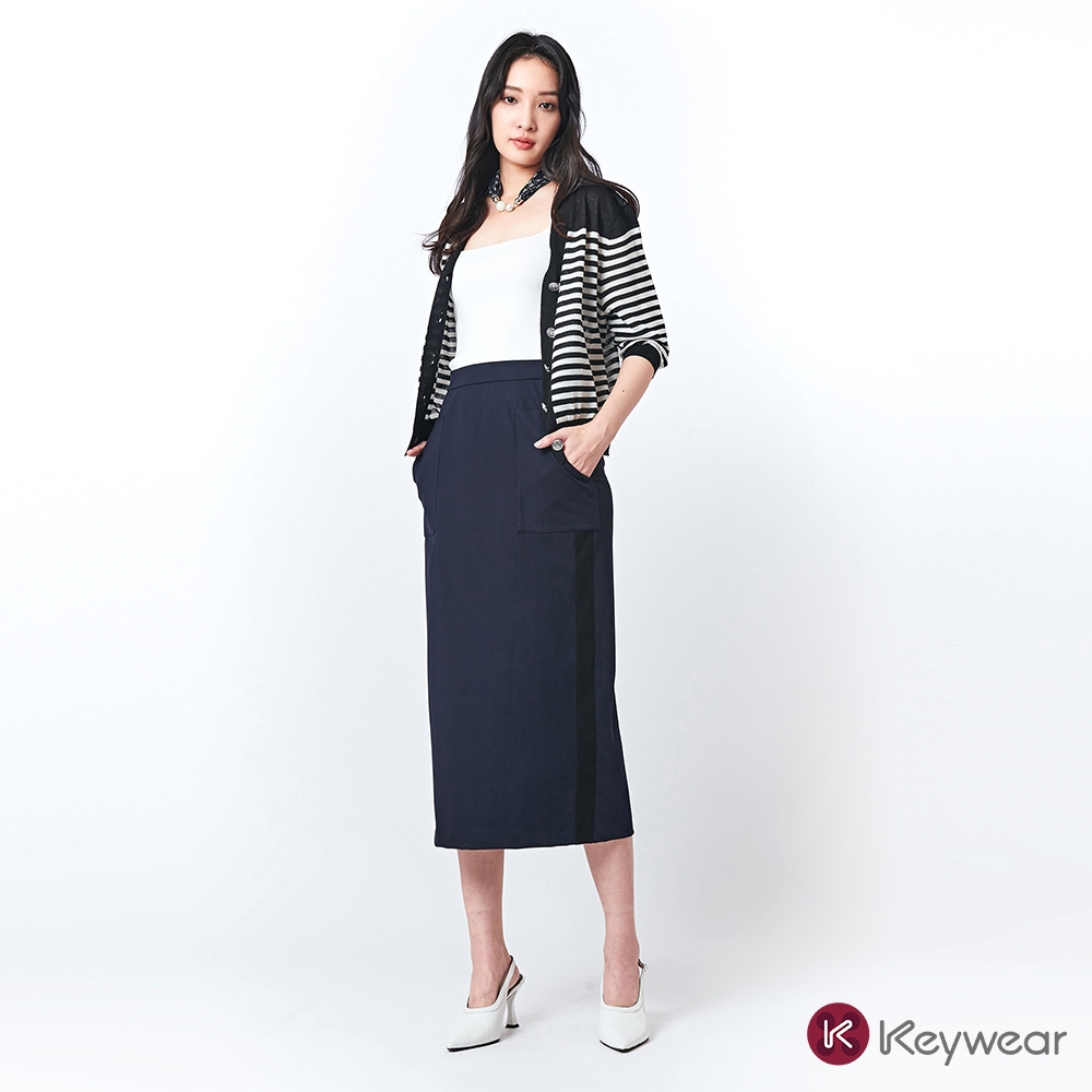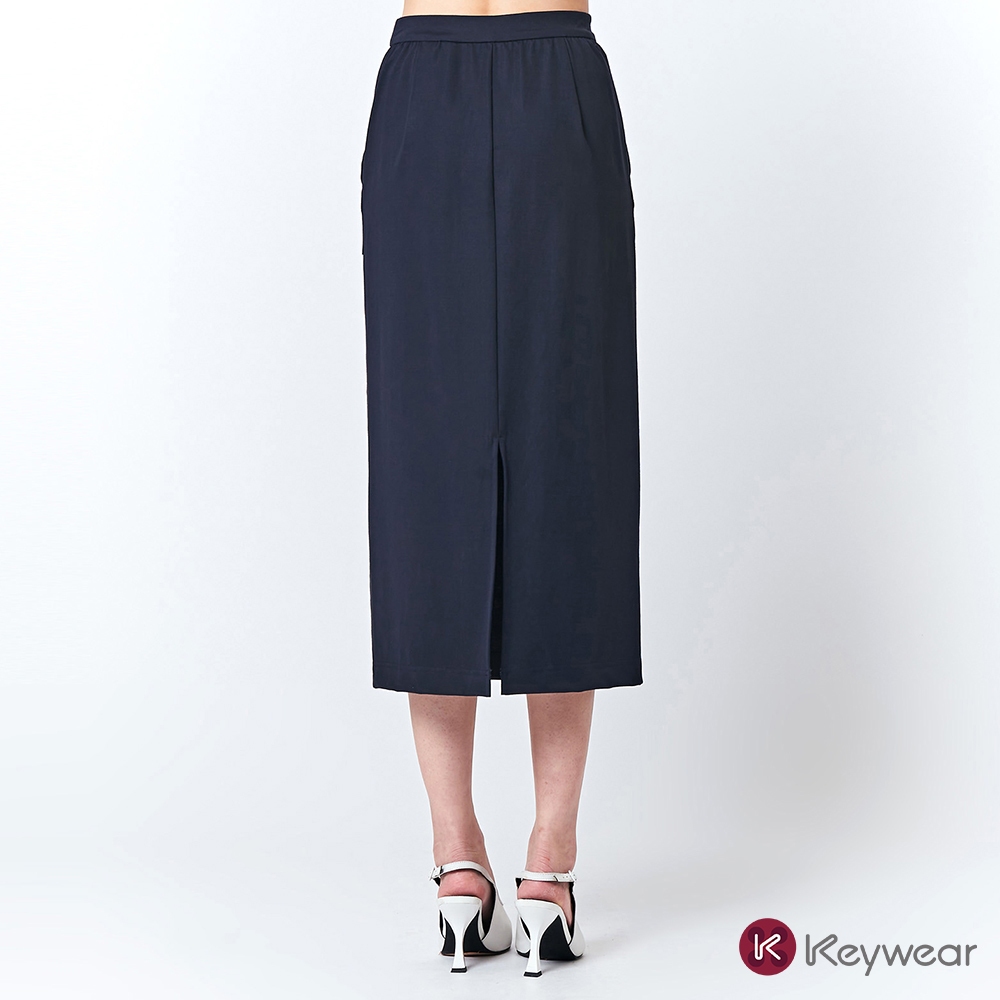 【KeyWear 奇威名品】側邊分割直筒休閒中長裙 深藍色S|M|L|XLKeywear奇威官方旗艦店