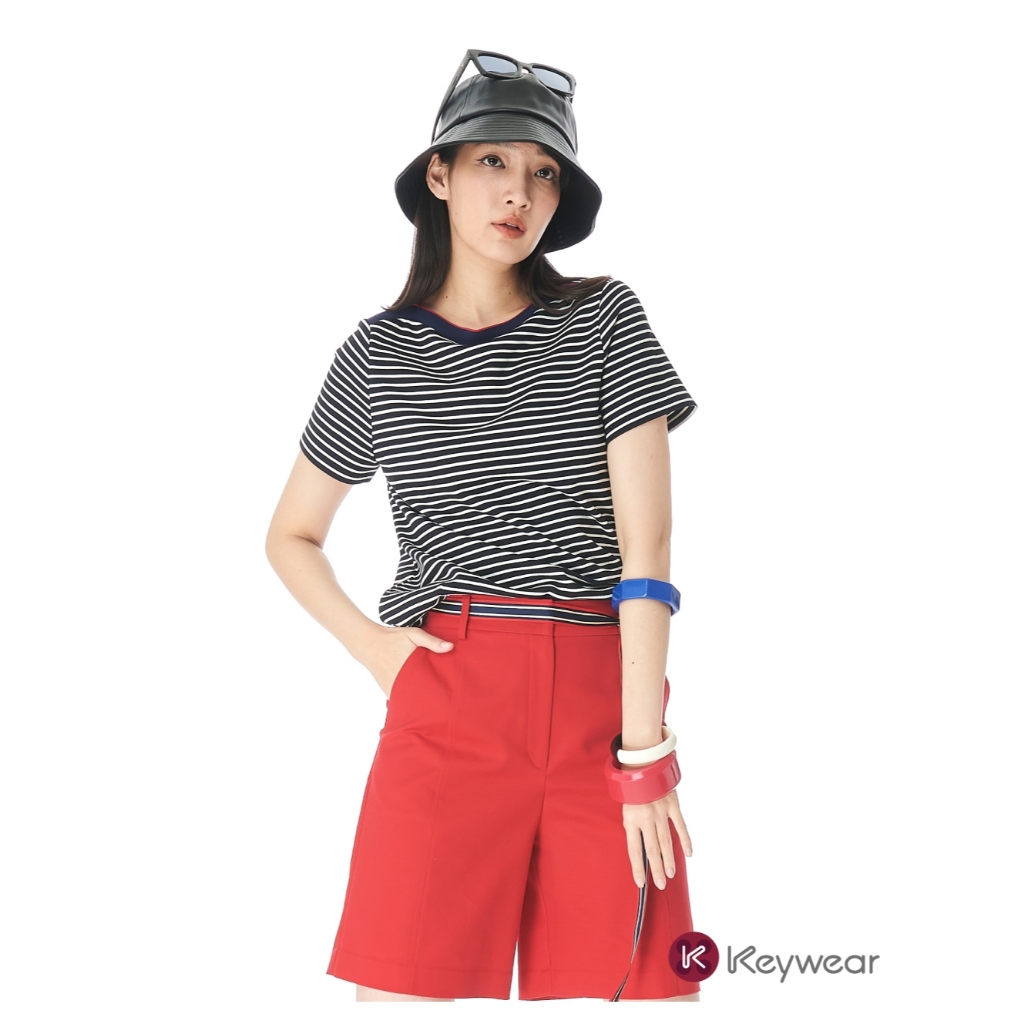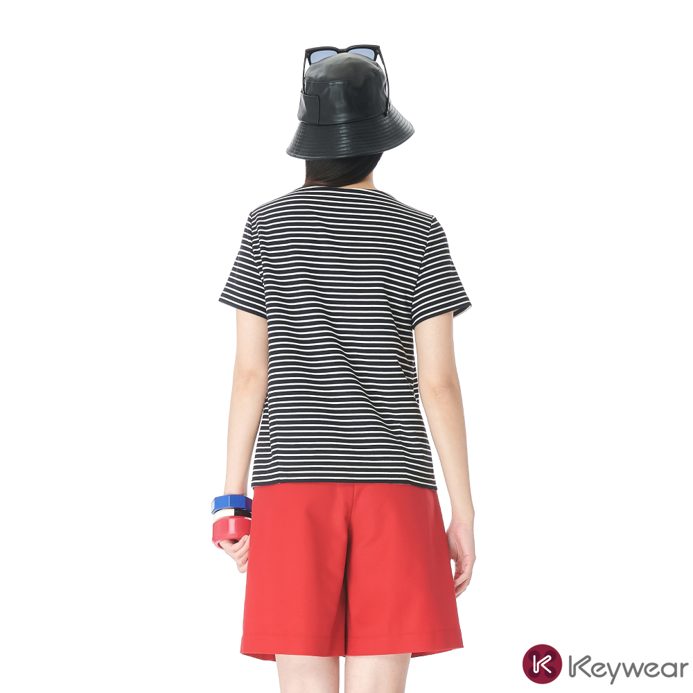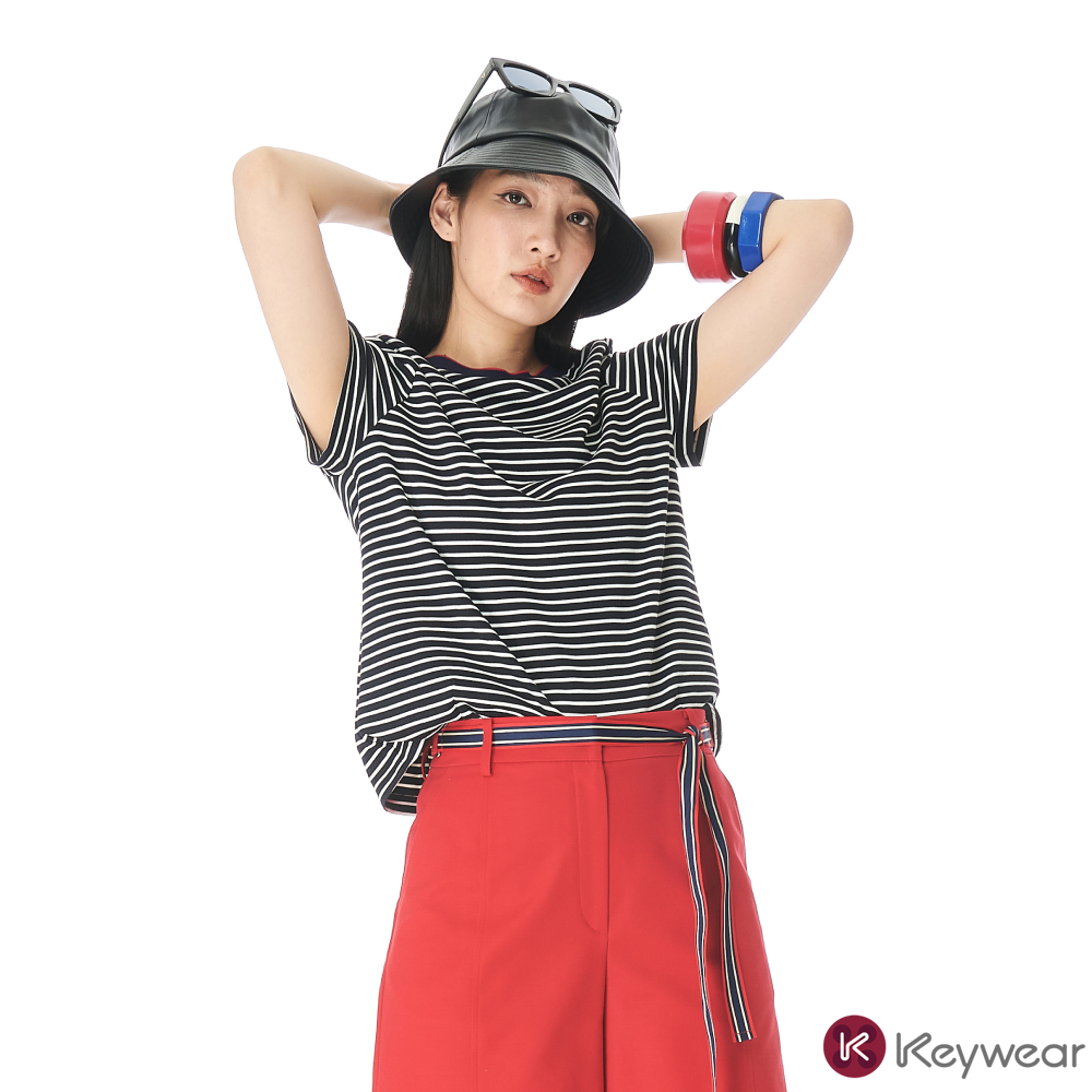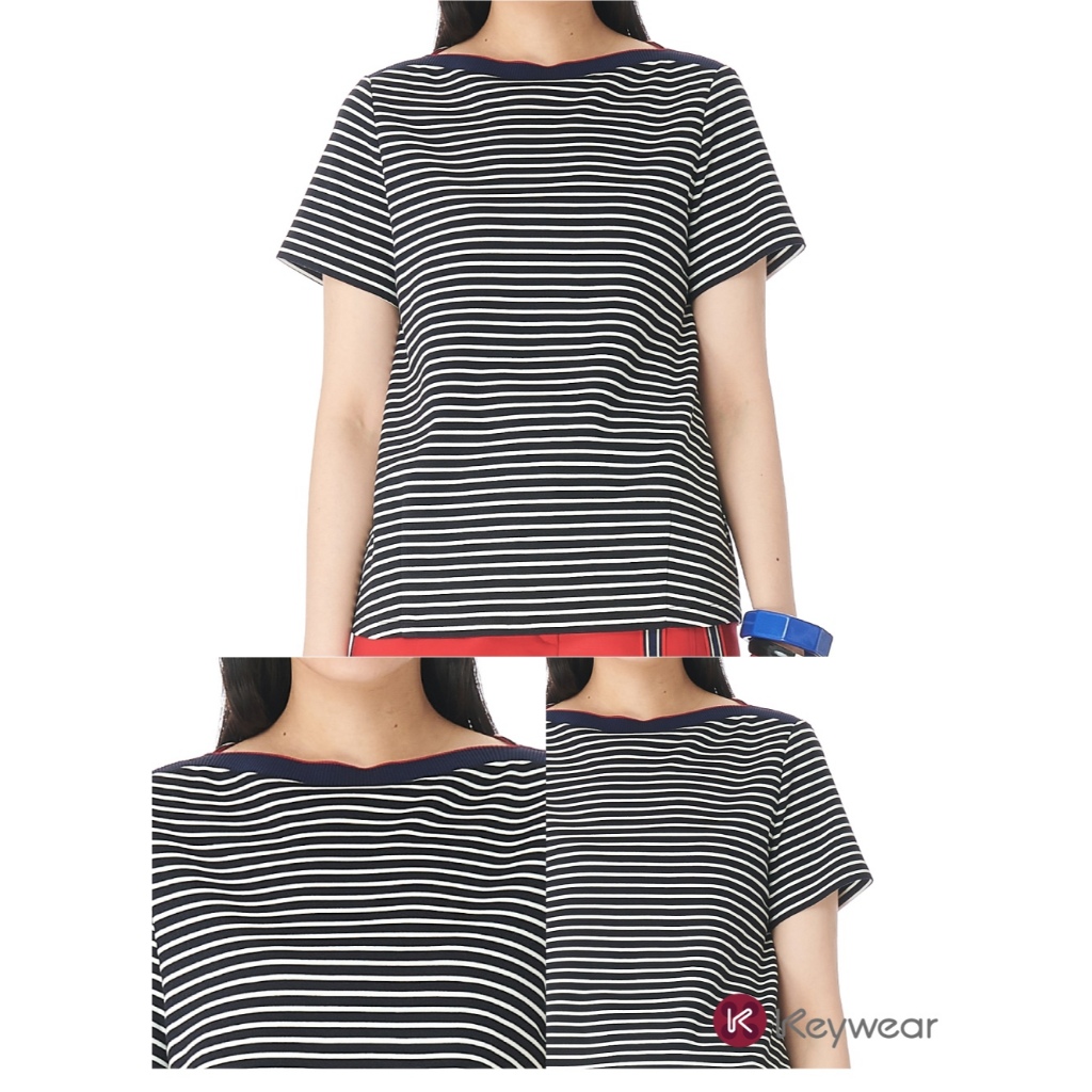【KeyWear 奇威名品】船型領條紋棉質短袖上衣 深藍色S|M|L|XL|ELT-shirtsKeywear奇威官方旗艦店