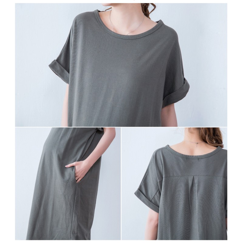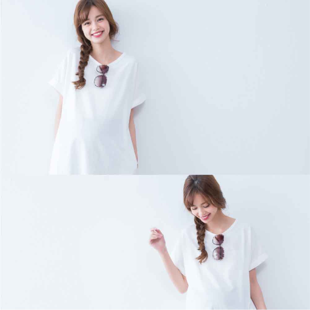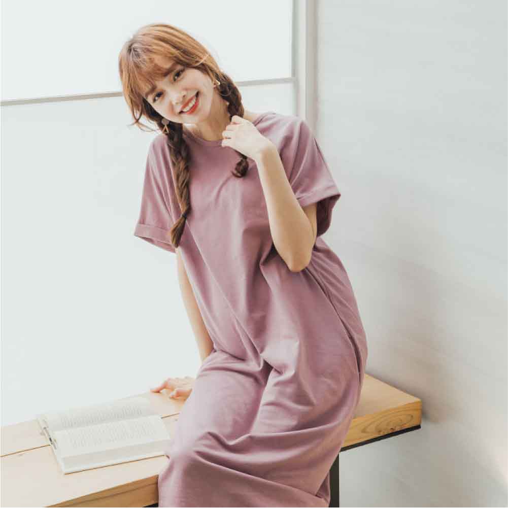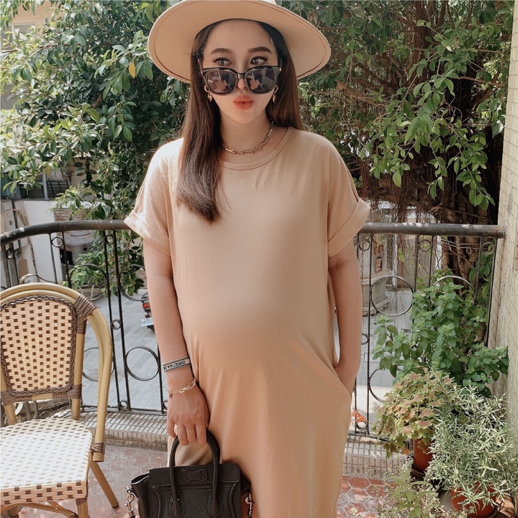 Mamamia孕婦裝 素面雙口袋反折袖孕婦洋裝 正韓製 顯瘦洋裝 連身裙 孕婦裝 連衣裙 短袖[D7040]白|灰|綠|黑|藍|紫|粉|紅|焦糖Maternity DressesMamamia孕婦裝