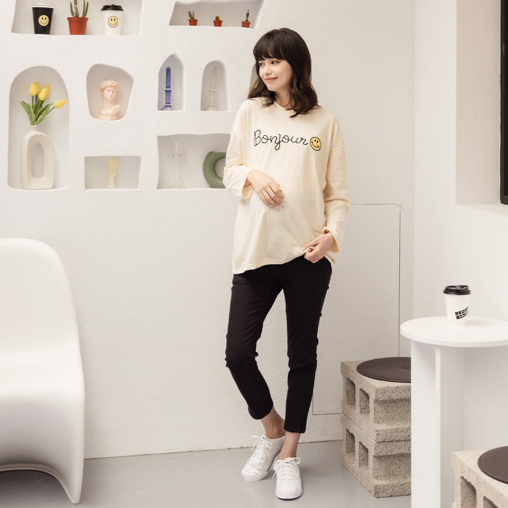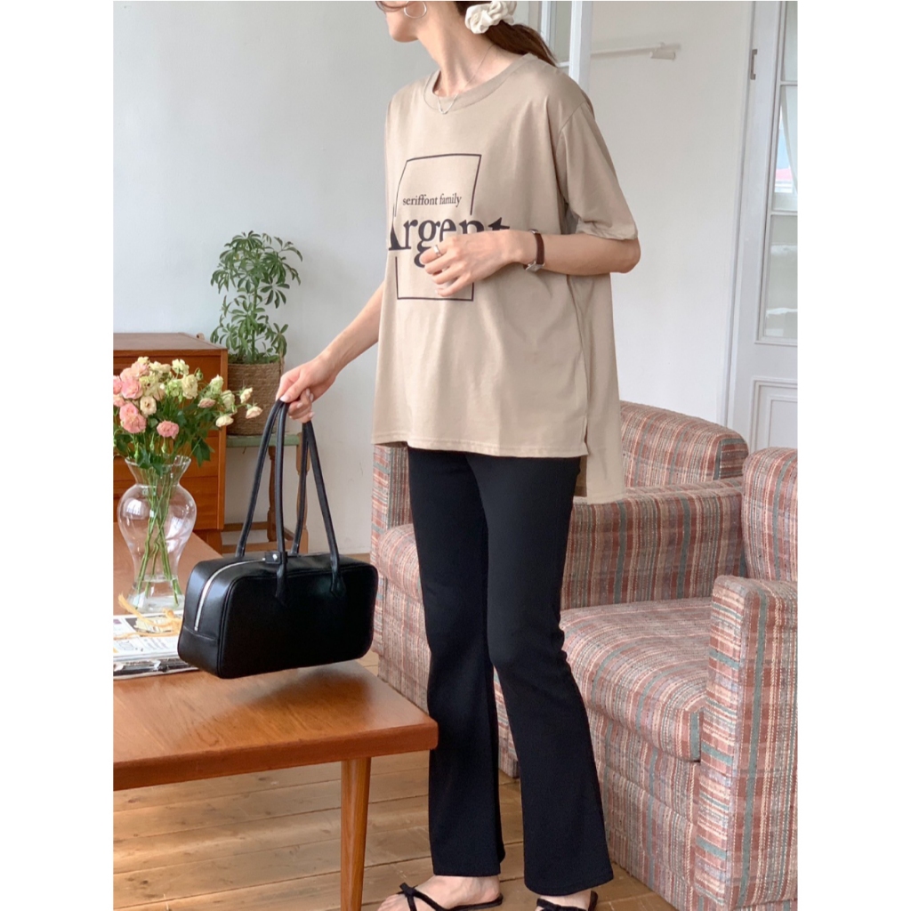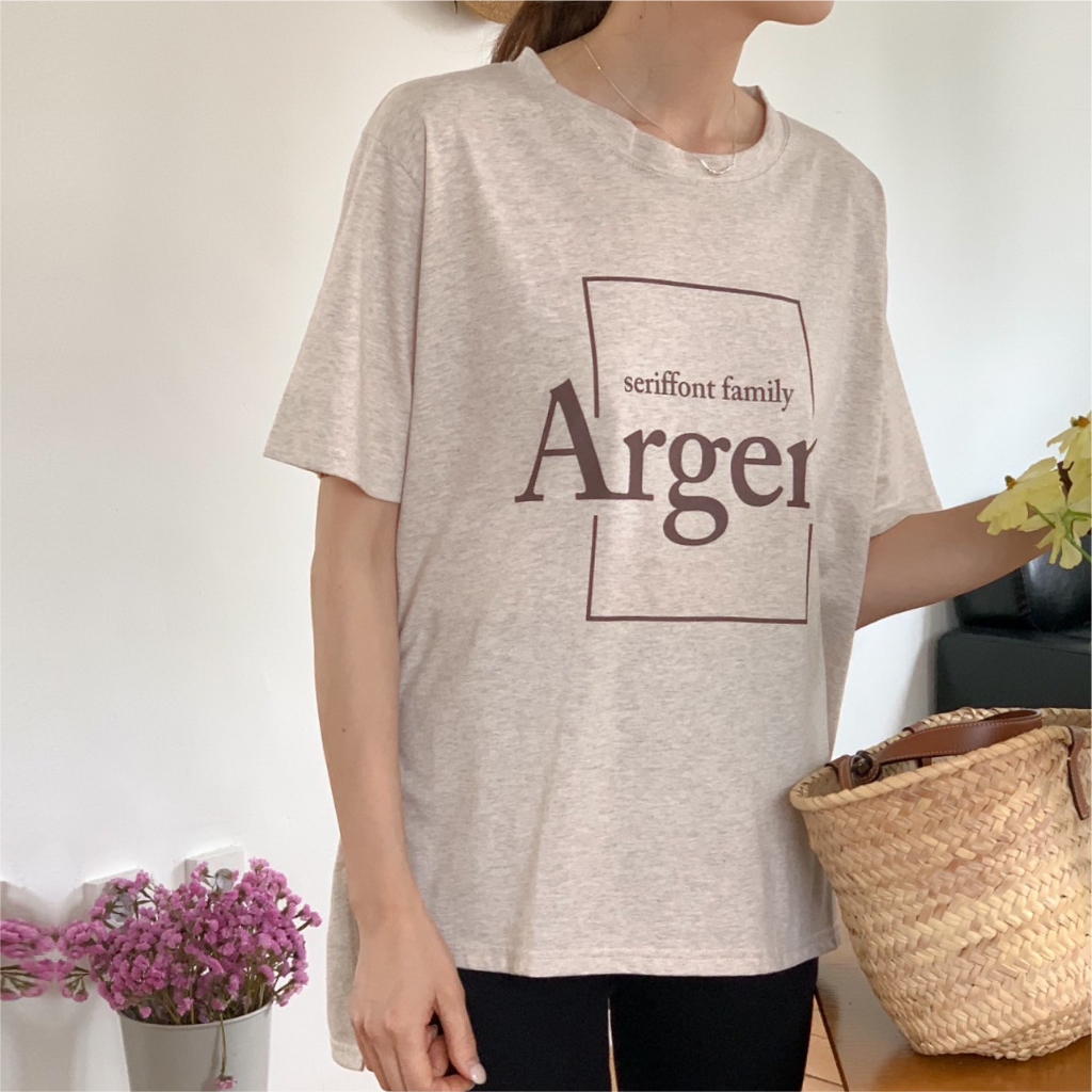 Mamamia孕婦裝 Argent簡約字母印花上衣 正韓製 孕婦裝 短袖 寬T 長版上衣 [C3264]黑|奶茶|米杏Maternity TopsMamamia孕婦裝