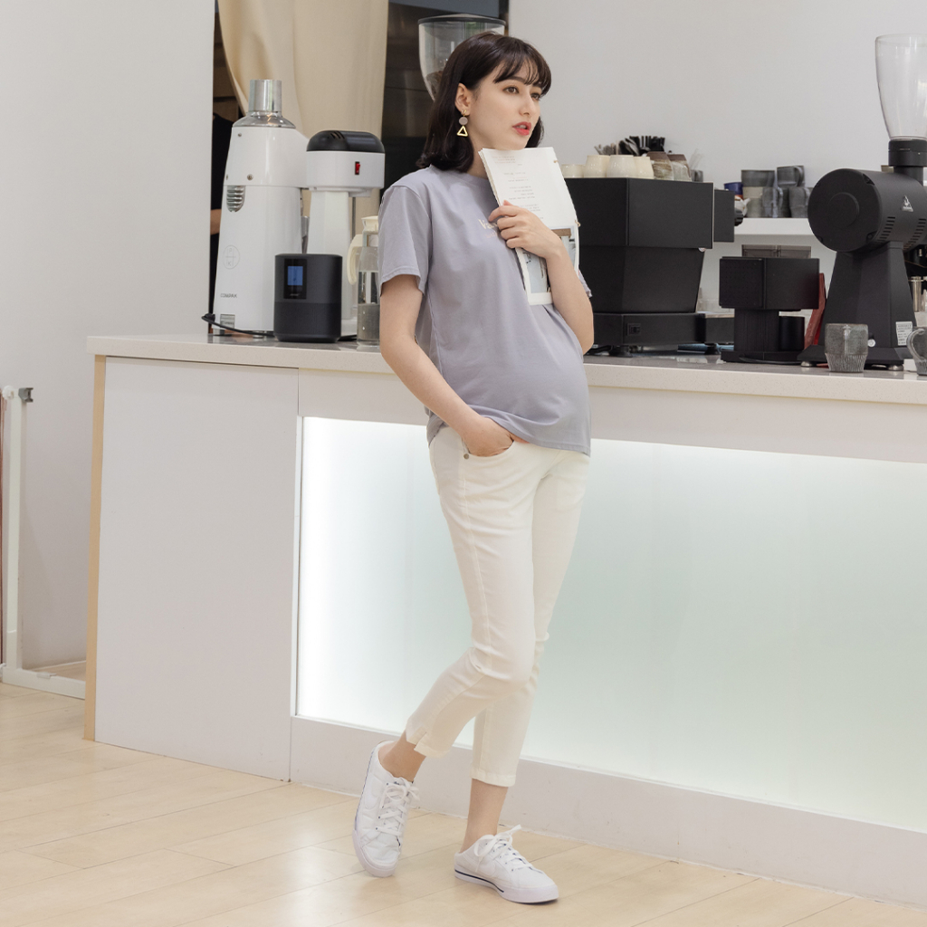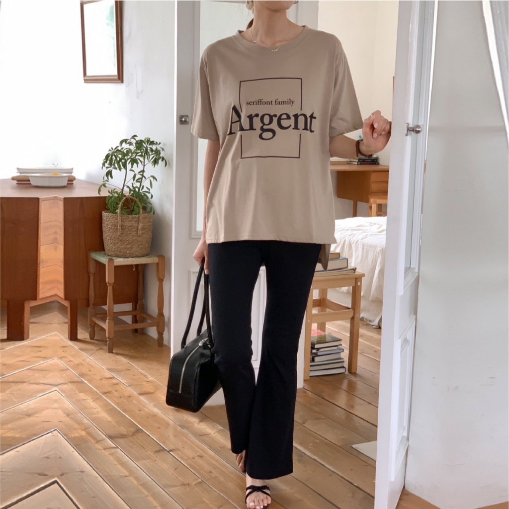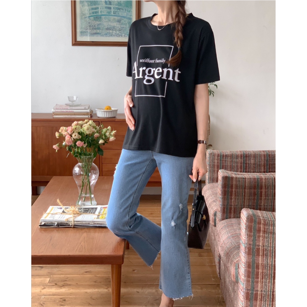 Mamamia孕婦裝 Argent簡約字母印花上衣 正韓製 孕婦裝 短袖 寬T 長版上衣 [C3264]黑|奶茶|米杏Maternity TopsMamamia孕婦裝