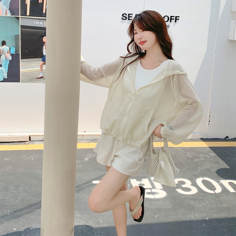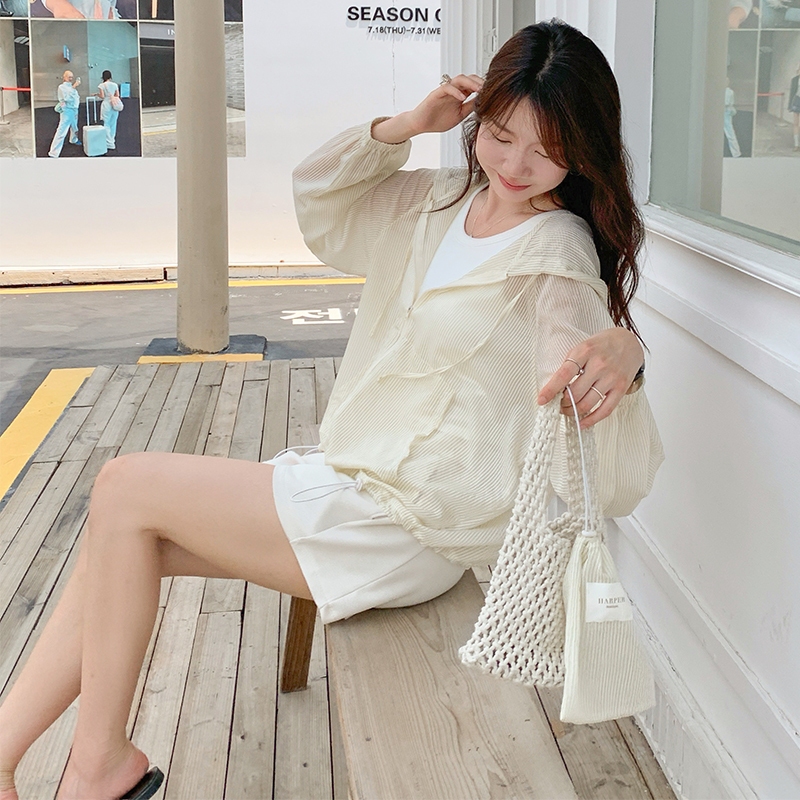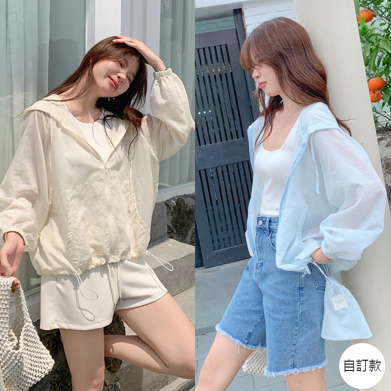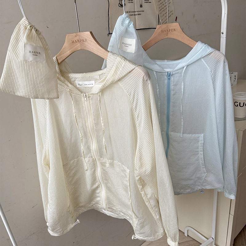 【HARPER】品牌自訂時尚感連帽條紋外套 附收納袋 | 現貨 連帽外套 薄外套 防曬【JTB43726J】奶杏,S~M|奶杏,L~XL|藍,S~M|藍,L~XLJacketsHARPER