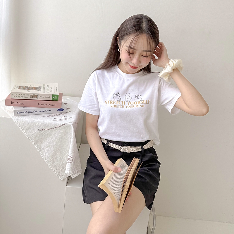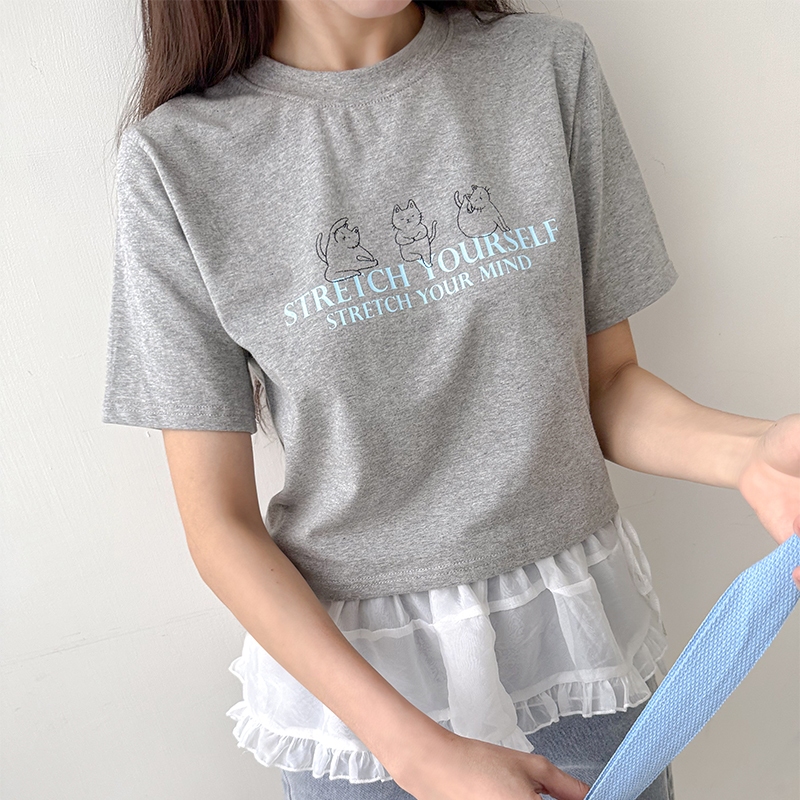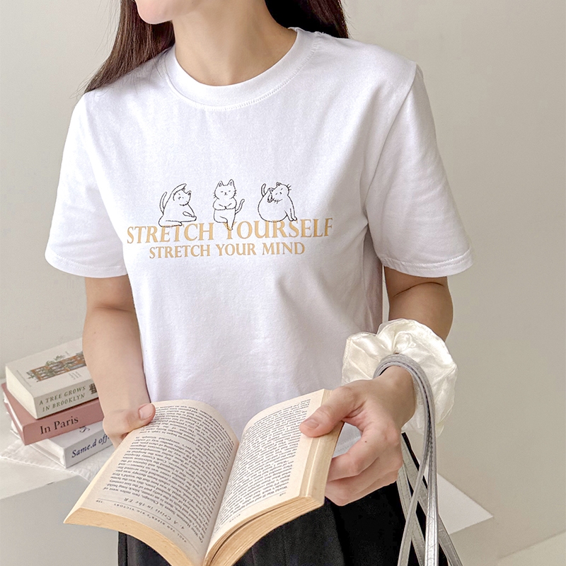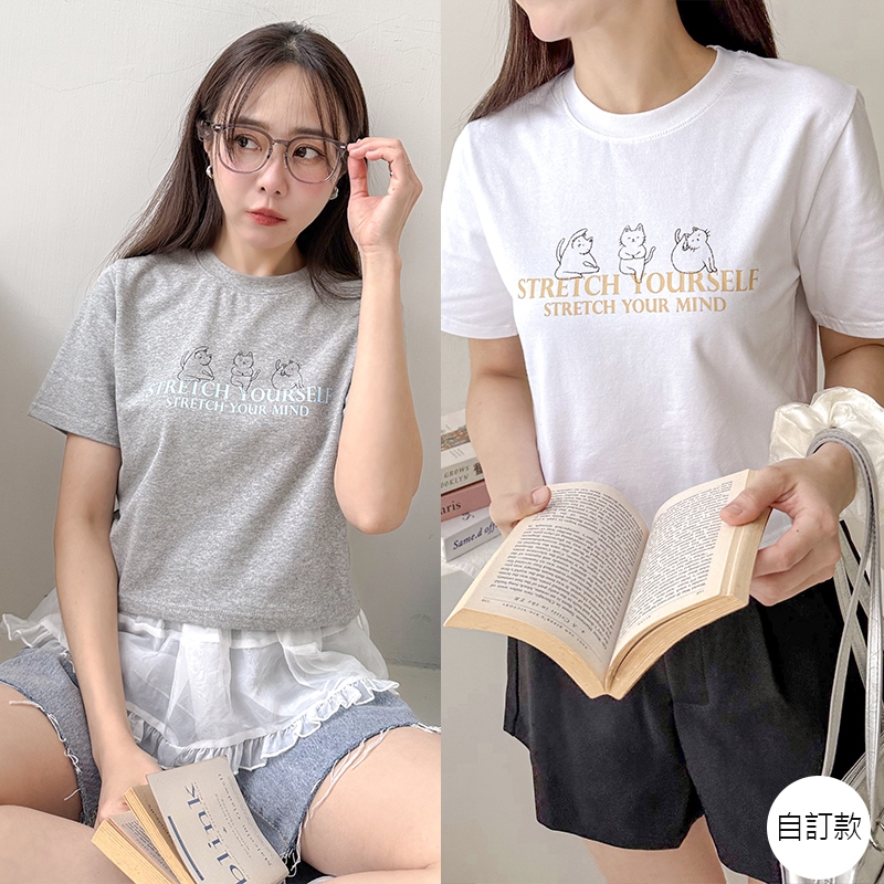 【HARPER】品牌自訂Yoga Cat T恤 |現貨 短袖上衣 字母T 圖案T T恤【CLE97427J】白,S~M|白,L~XL|灰,S~M|灰,L~XLT-shirtsHARPER