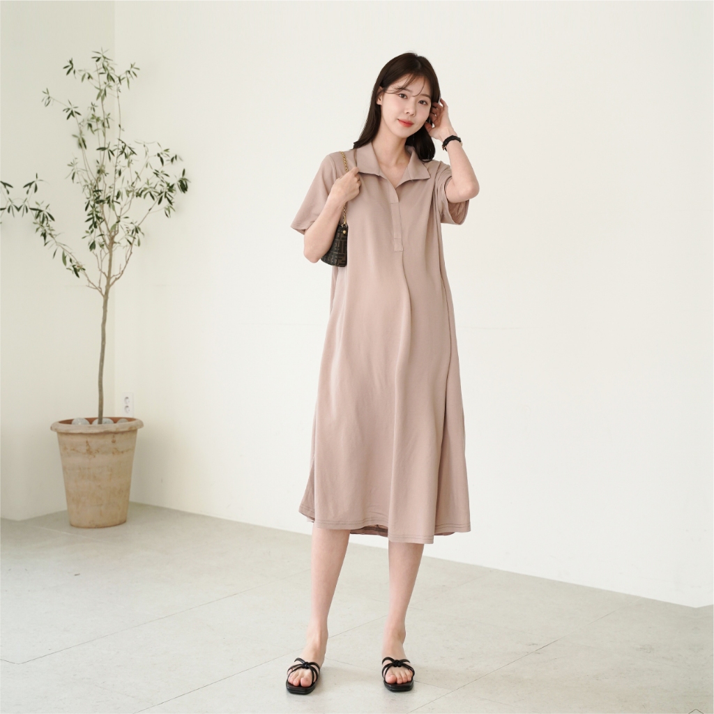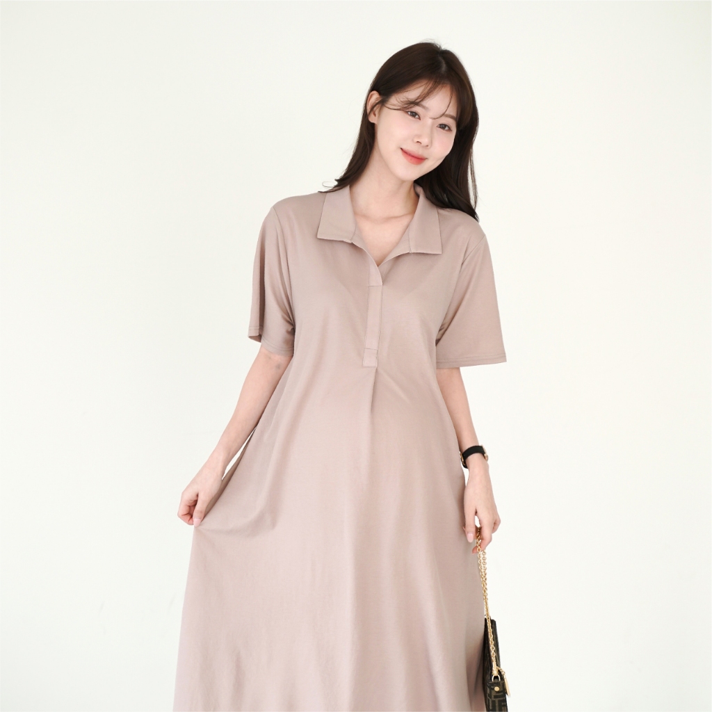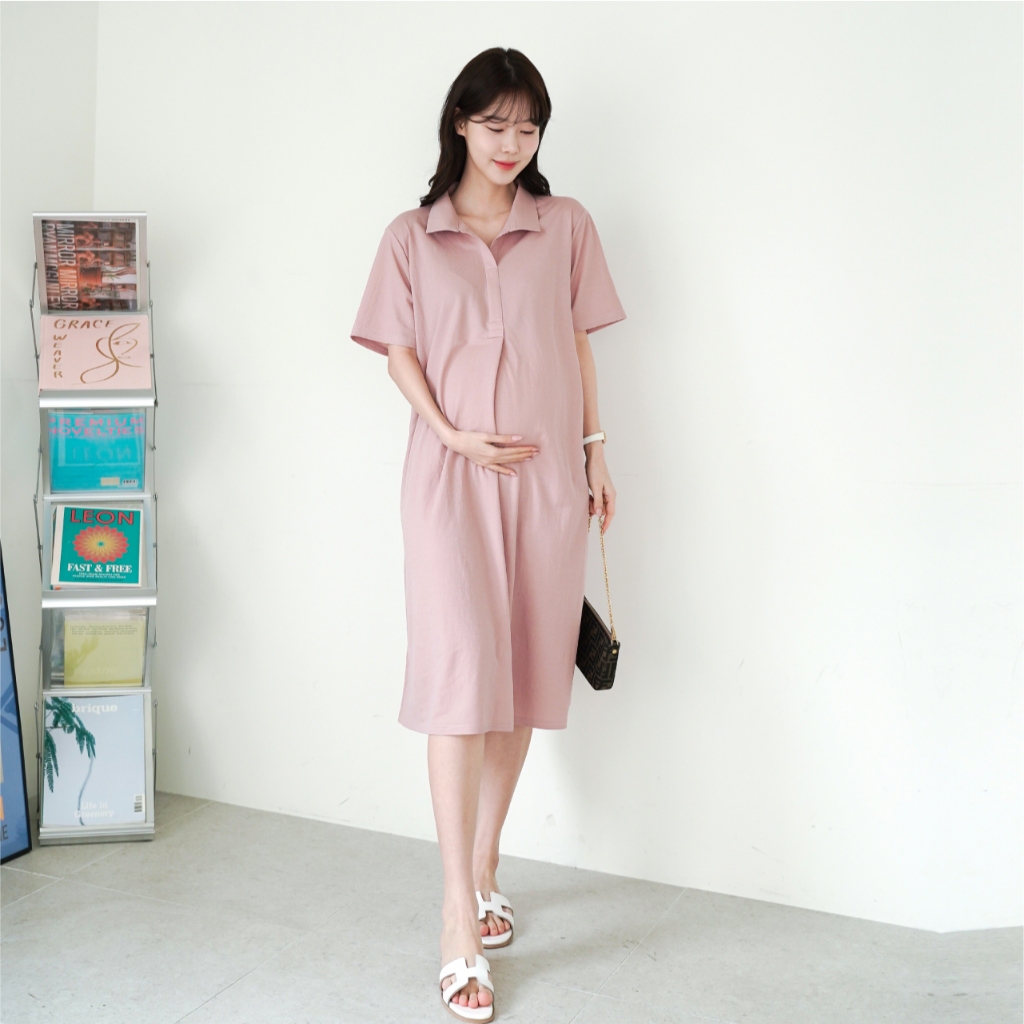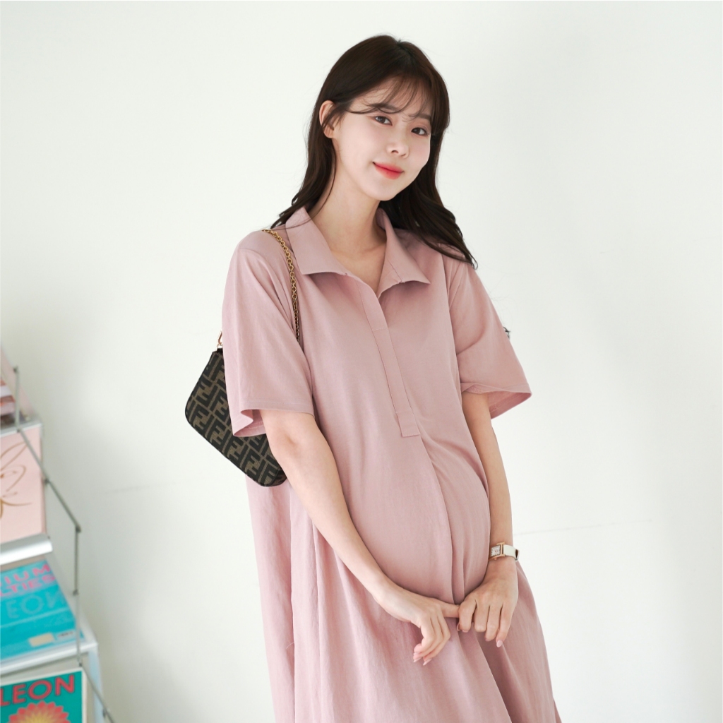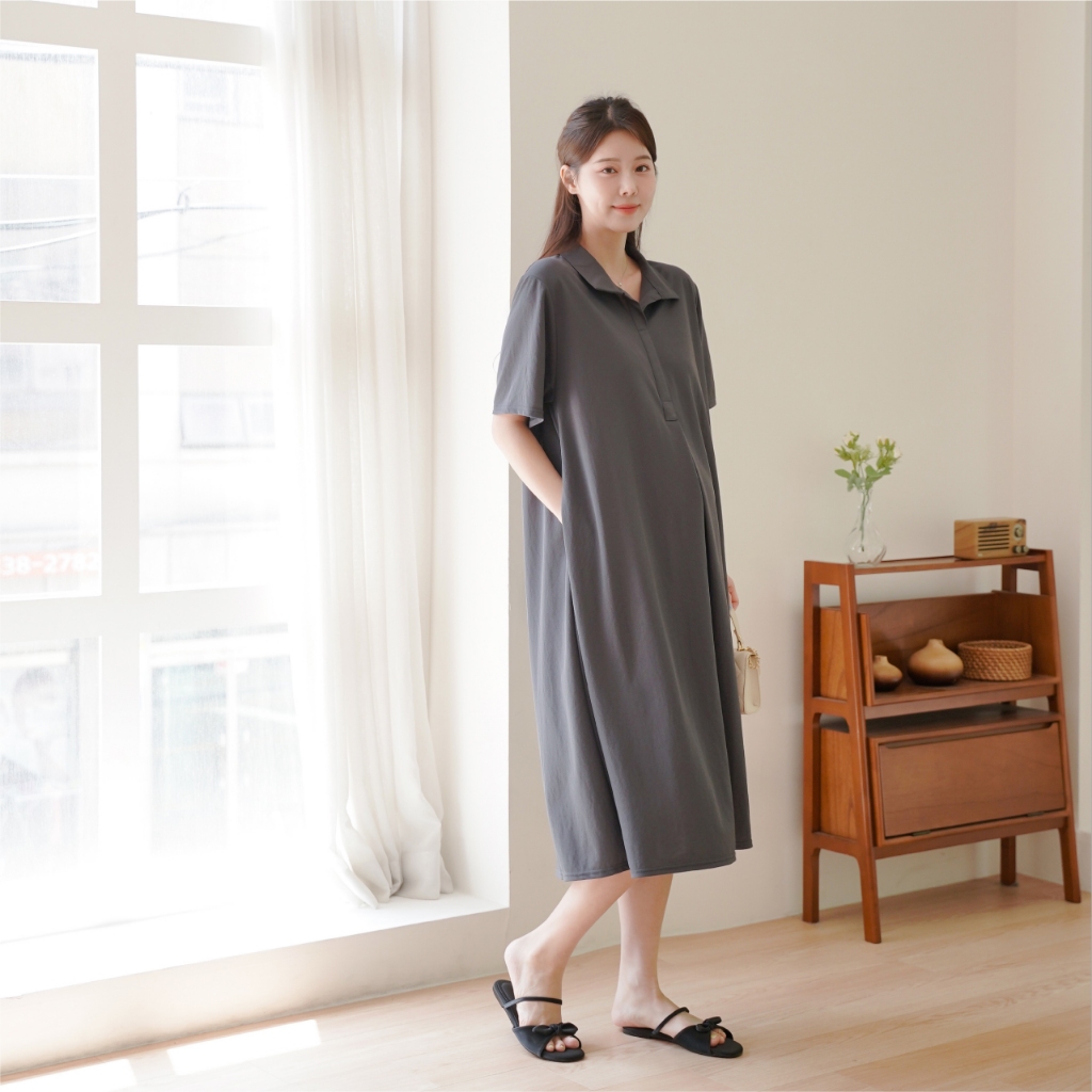 Mamamia孕婦裝 氣質感絲棉立領孕婦洋 正韓製 孕婦裝 孕婦裙 洋裝 連身洋裝 孕婦洋裝 [D7573]粉|卡其|深灰|黑Maternity DressesMamamia孕婦裝
