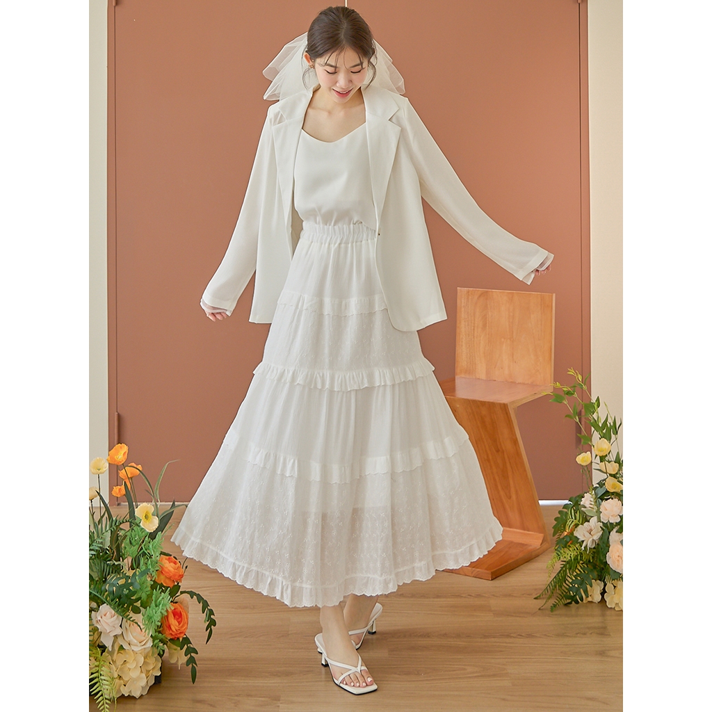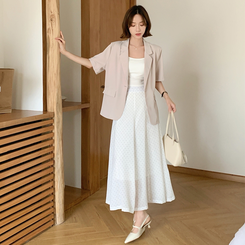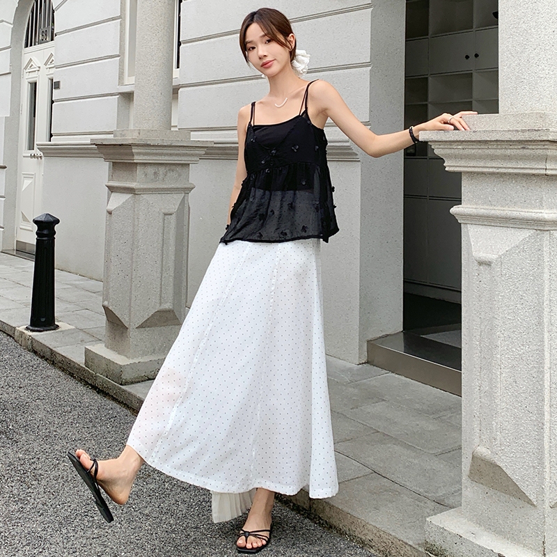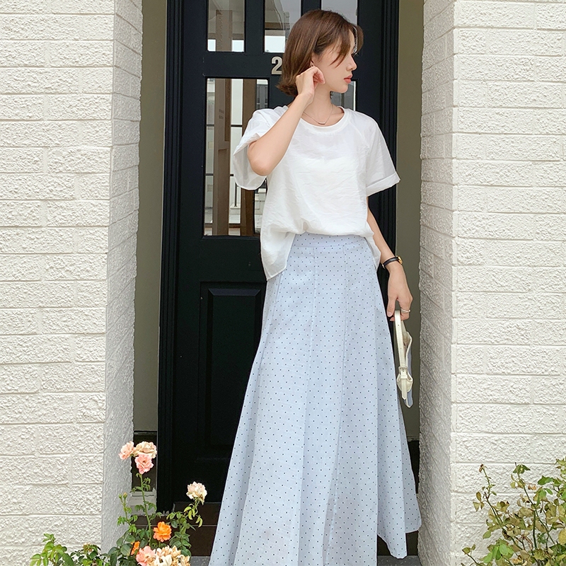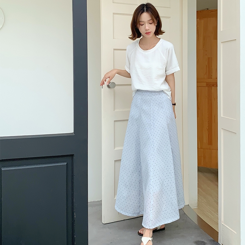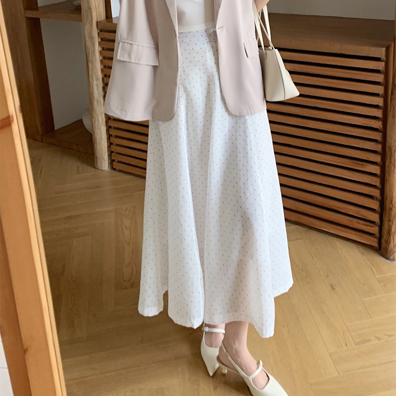 【HARPER】品牌自訂法式小波點長裙 有內裏 | 現貨 中長裙 裙子【SKB48624J】白,F|灰藍,FHARPER