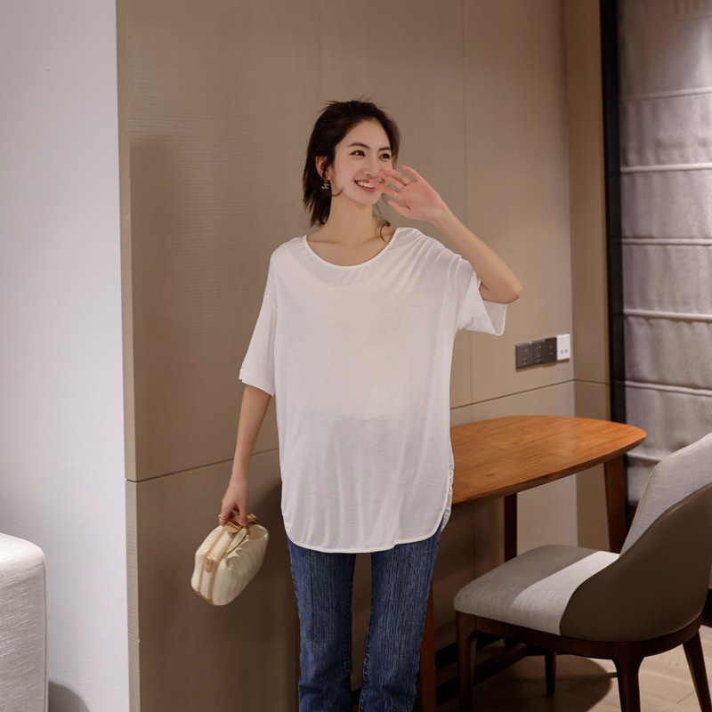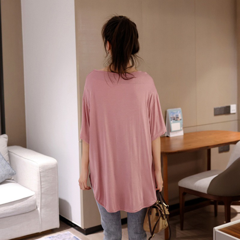 莫代爾短袖T恤 落肩圓領T 居家服 母親節睡衣 中大尺碼 涼感寬鬆長版T 021077