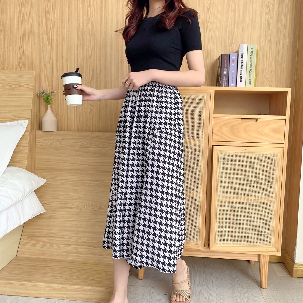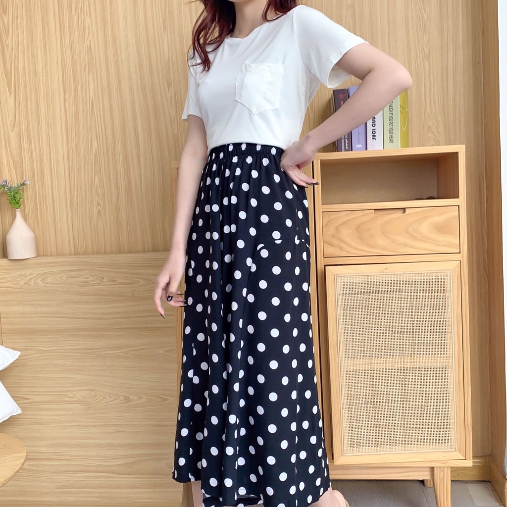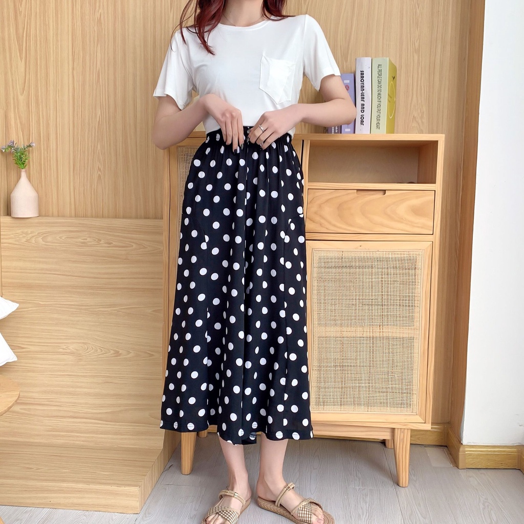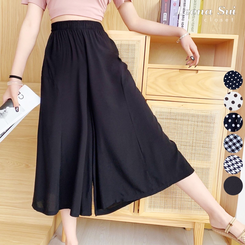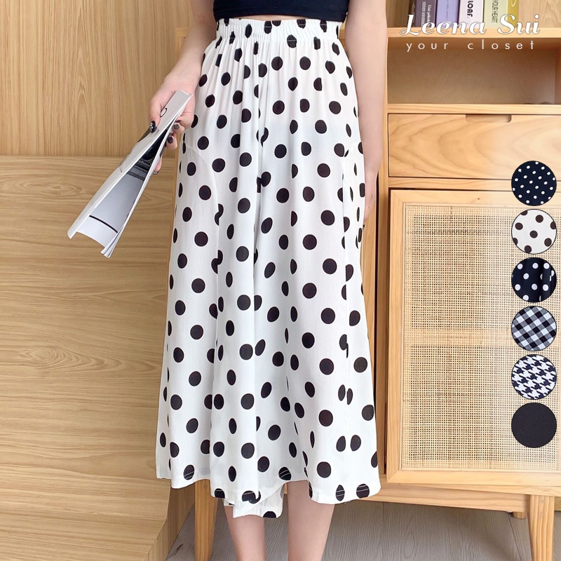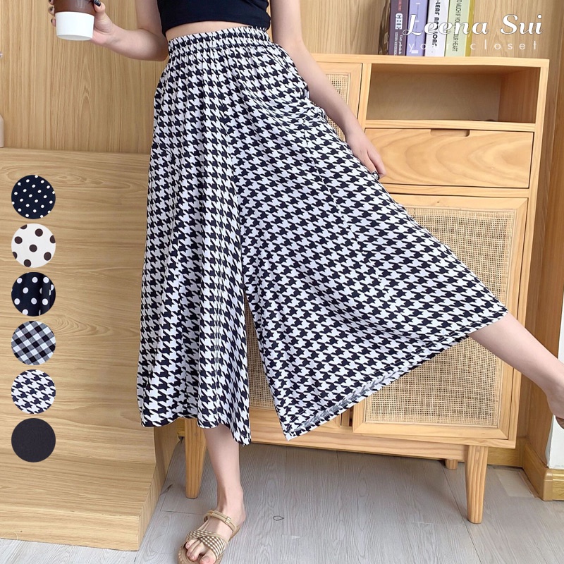 涼感寬褲 闊腿長褲 褲裙 時尚裙褲印花簡約寬褲 綿綢氣質八分褲裙 052128千鳥格|黑底小波點|格子|黑色|白底波点|黑底中波点OthersLeenaSui ~台灣賣家 隔日到貨