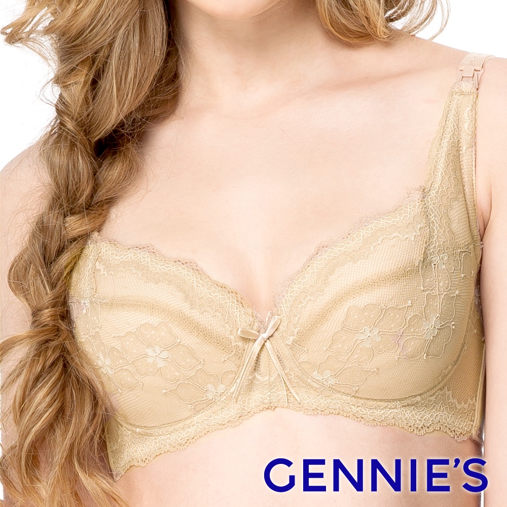• 【Gennies 奇妮】戀戀蕾絲全彈性哺乳內衣-粉/綠/膚/黑(GA24)