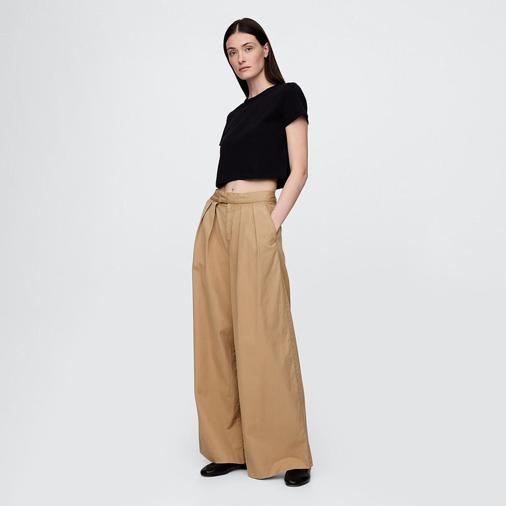 Gap 女裝 純棉休閒寬褲-卡其色(745876)4/27|6/28|8/29|00/24|0/25|2/26PantsGap官方旗艦店