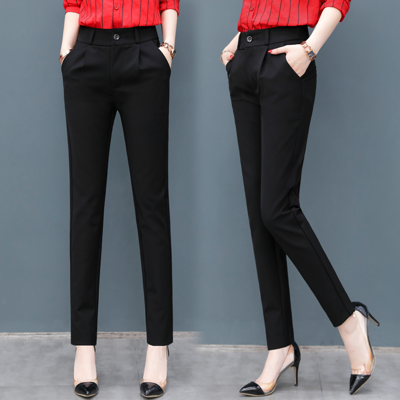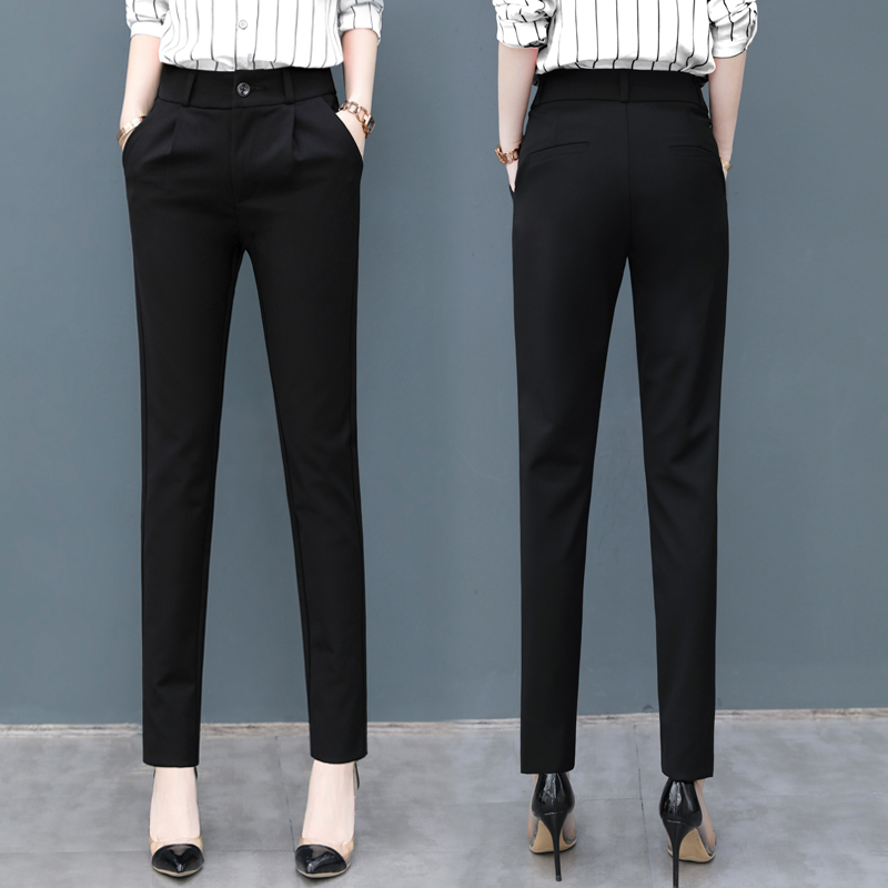 • 顯瘦西裝褲 大尺碼長褲 寬鬆高腰休閒長褲 小腳九分褲黑色職業西裝長褲050816