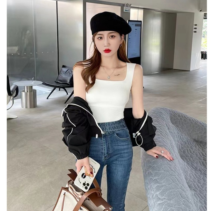 冰絲美背寬肩方領無痕背心 罩杯式小可愛 短版上衣 附胸墊內搭外穿無痕吊帶背心023182