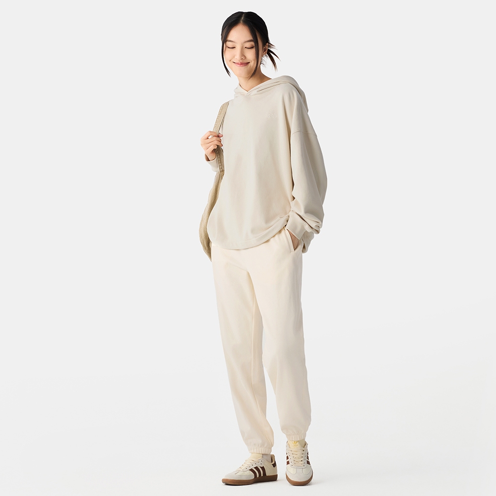 Gap 女裝 束口鬆緊運動褲 碳素軟磨法式圈織系列-象牙白(728889)XS|S|M|L|XLPantsGap官方旗艦店