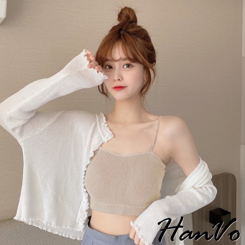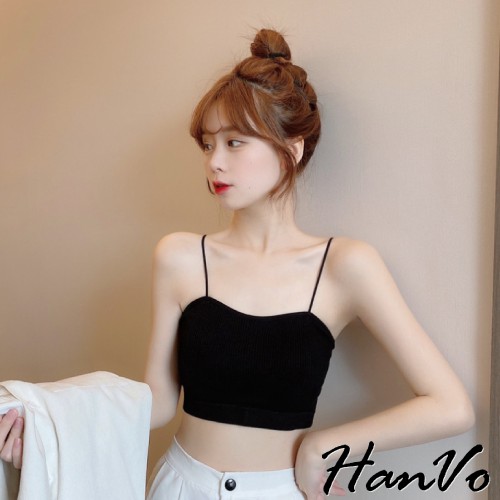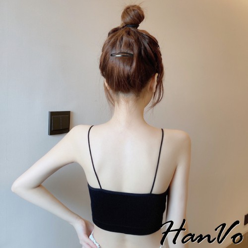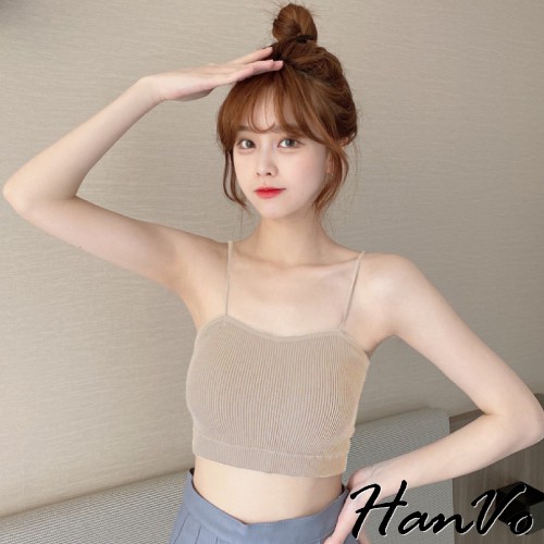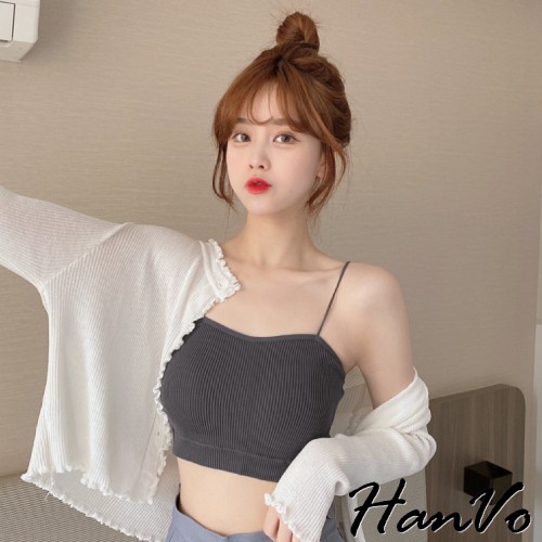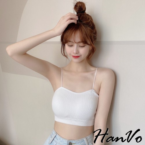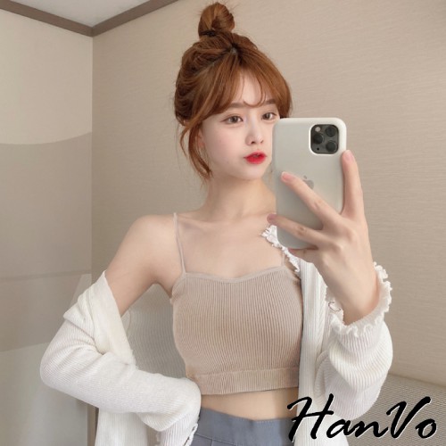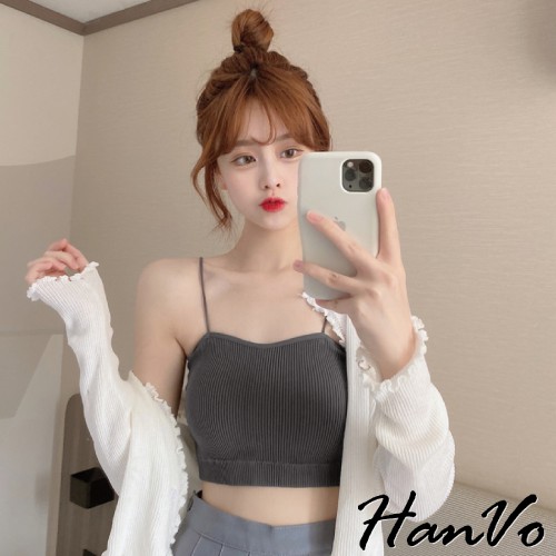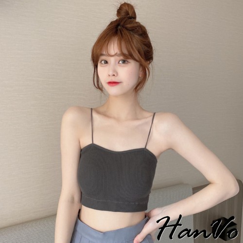 【HanVo】神百搭細肩帶短版小可愛 附胸墊可拆 舒適彈性 居家內搭打底衣 女生上衣韓系女裝 女生衣著 A09-5048NG福利品(不退貨 不挑色)|黑色|白色|深灰|杏色Tanks & CamisolesHanVo Wear Collection