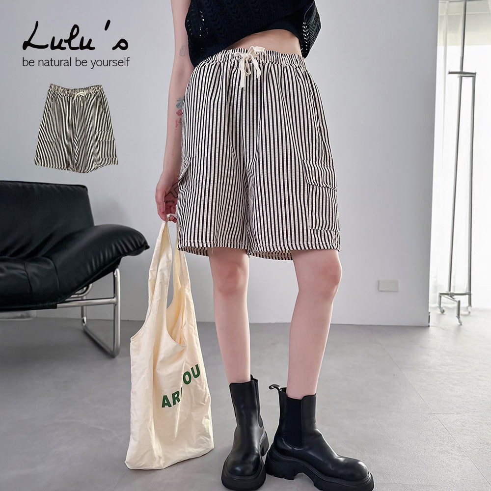 LULUS/棉麻側口袋直紋短褲黑【A04250141】250716黑ShortsLULUS