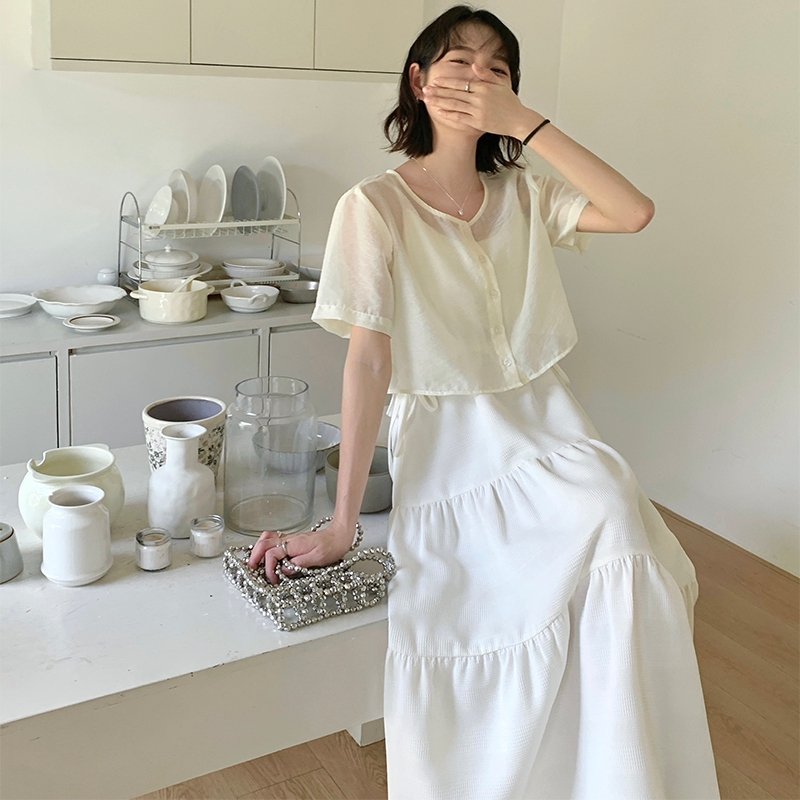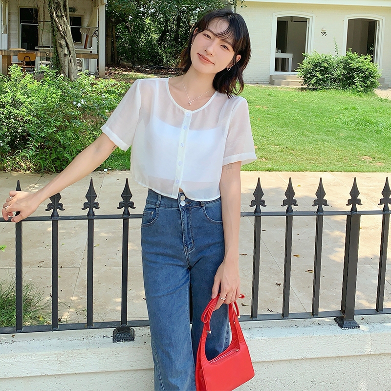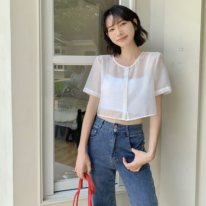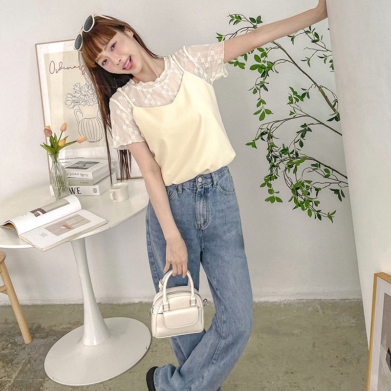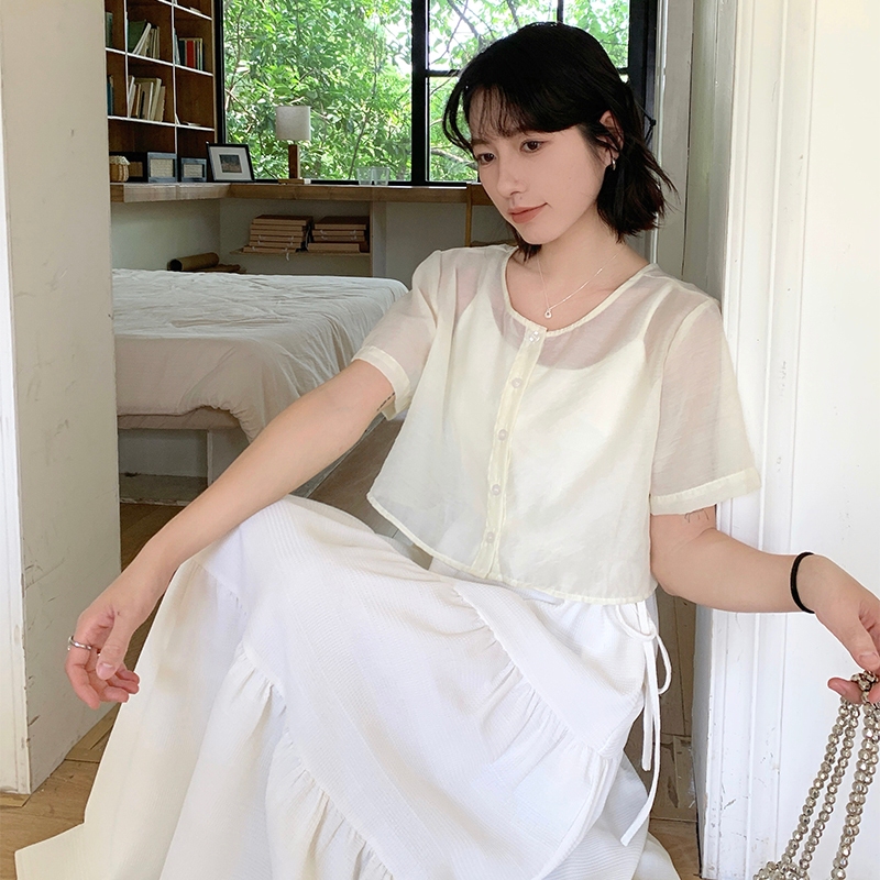 【HARPER】品牌自訂微甜透視感上衣 | 現貨 短袖 透膚 婚禮 上衣【CLB42022J】米白,F|柔霧黃,FT-shirtsHARPER