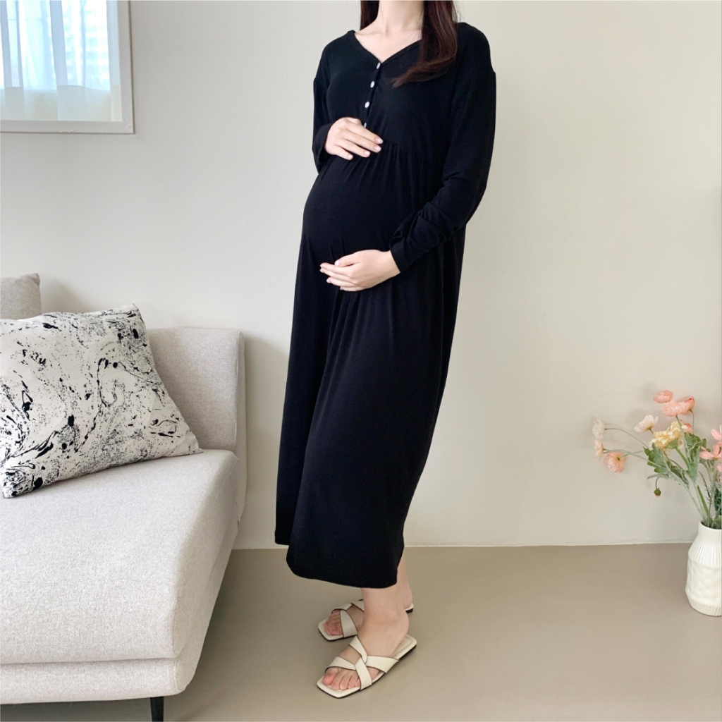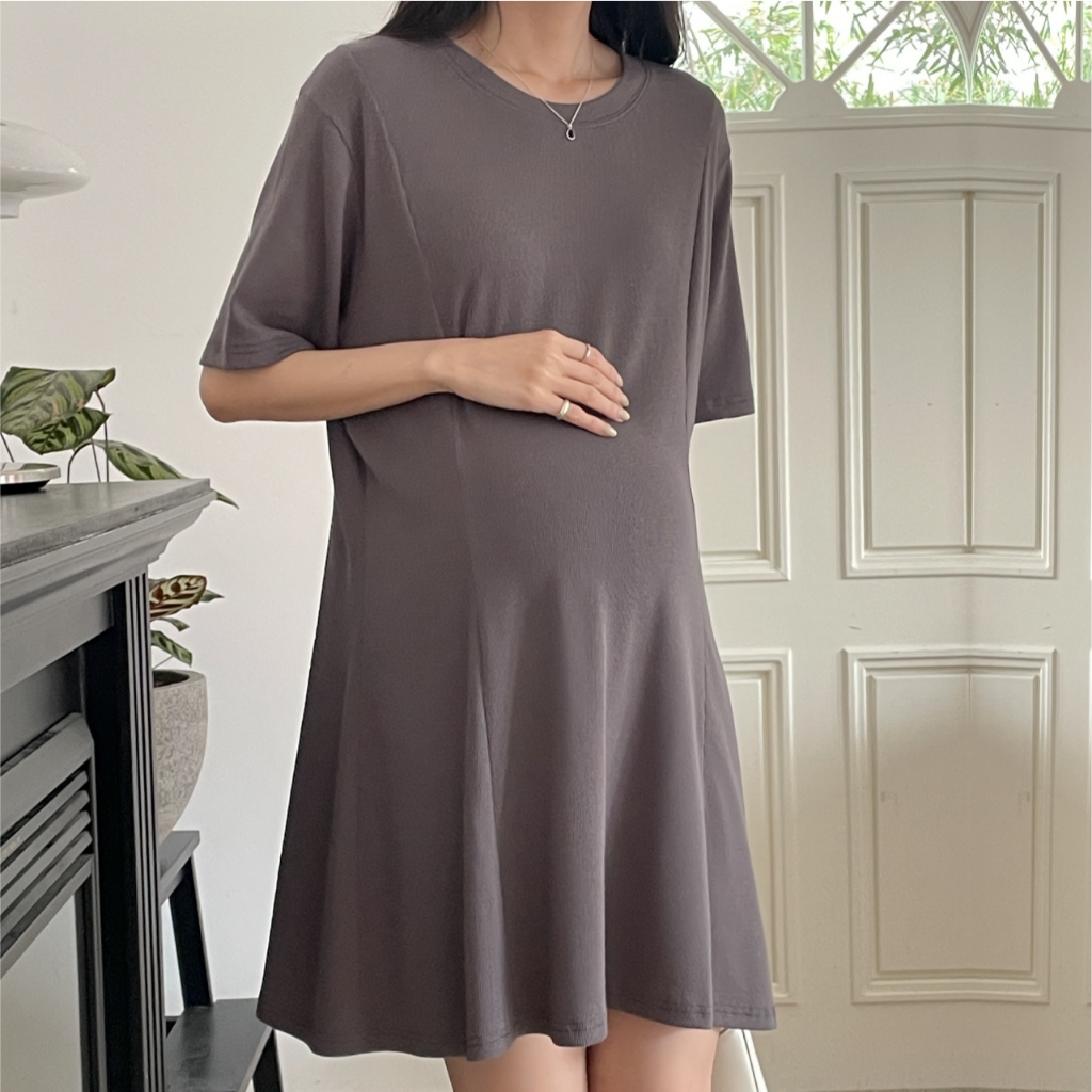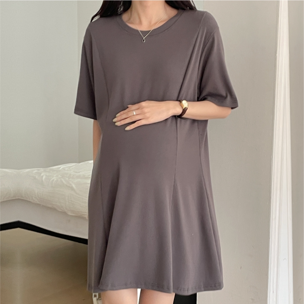 Mamamia孕婦裝 天生麗質曲線剪裁孕婦洋裝 正韓製 孕婦裝 孕婦裙 洋裝 連身洋裝 孕婦洋裝 [D7619]黑|深灰|可可Maternity DressesMamamia孕婦裝