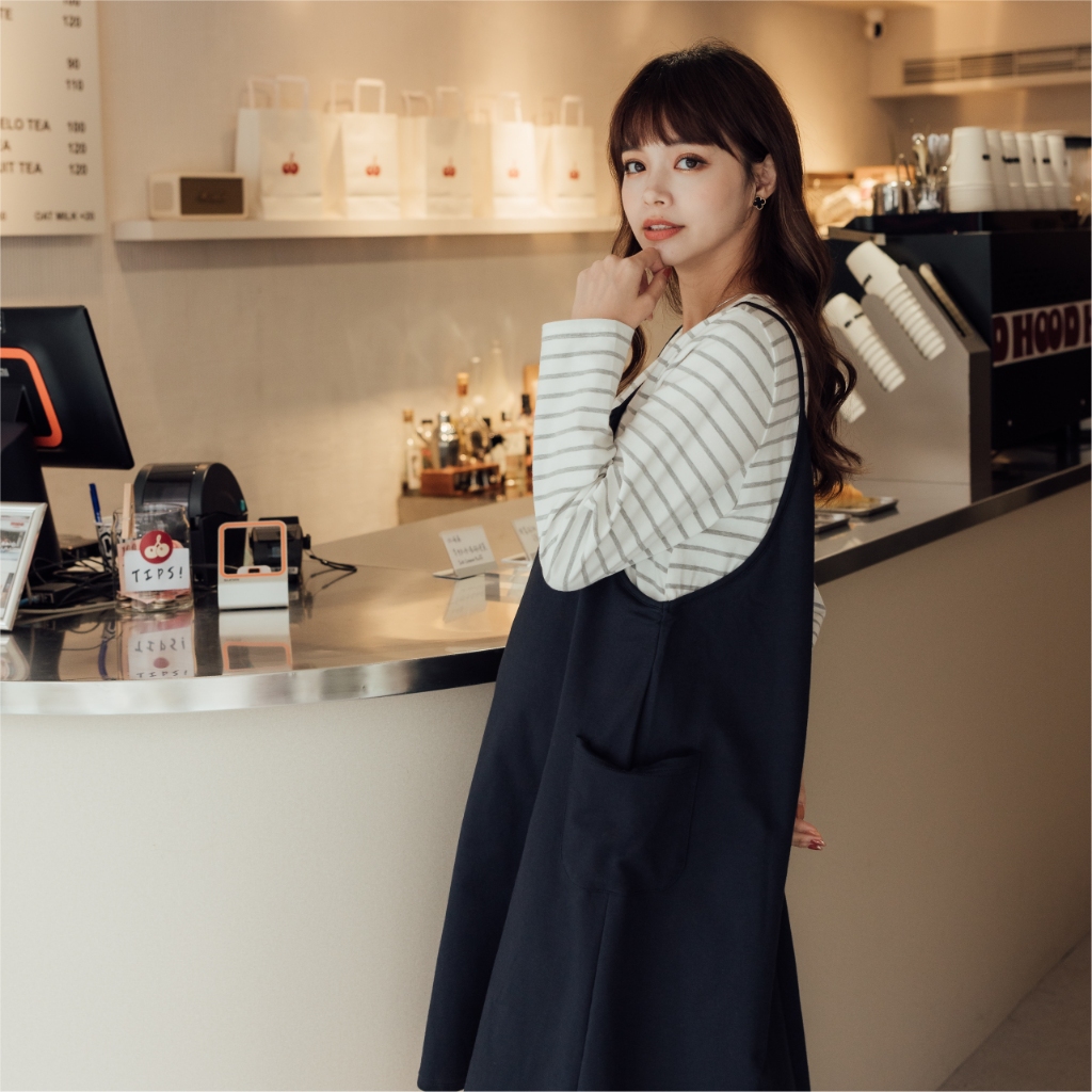 Mamamia孕婦裝 不費力出門假兩件哺乳吊帶洋裝 M~L 哺乳衣 孕婦裝 孕婦洋裝 長袖 連身裙 洋裝 [A1693]深藍,M|深藍,L|咖啡,M|咖啡,LBreastfeeding WearMamamia孕婦裝