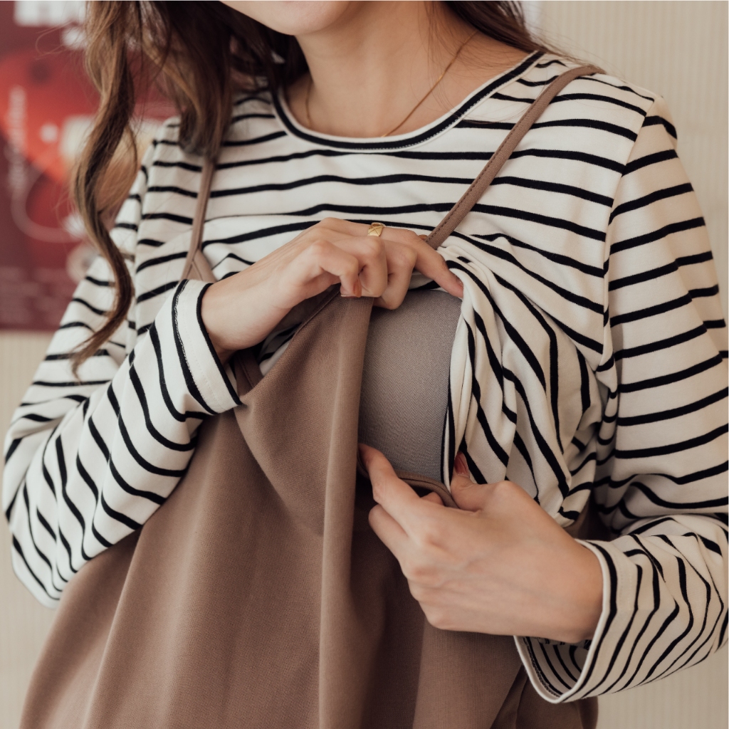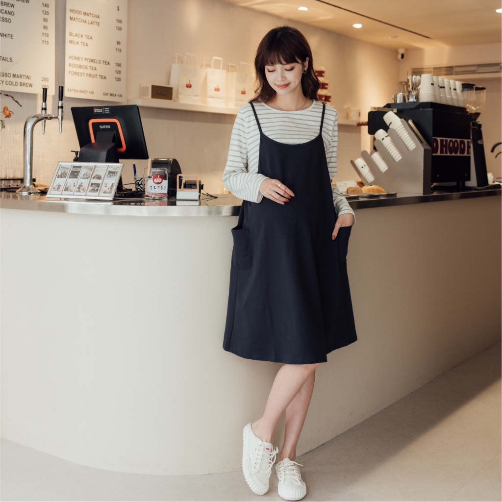 Mamamia孕婦裝 不費力出門假兩件哺乳吊帶洋裝 M~L 哺乳衣 孕婦裝 孕婦洋裝 長袖 連身裙 洋裝 [A1693]