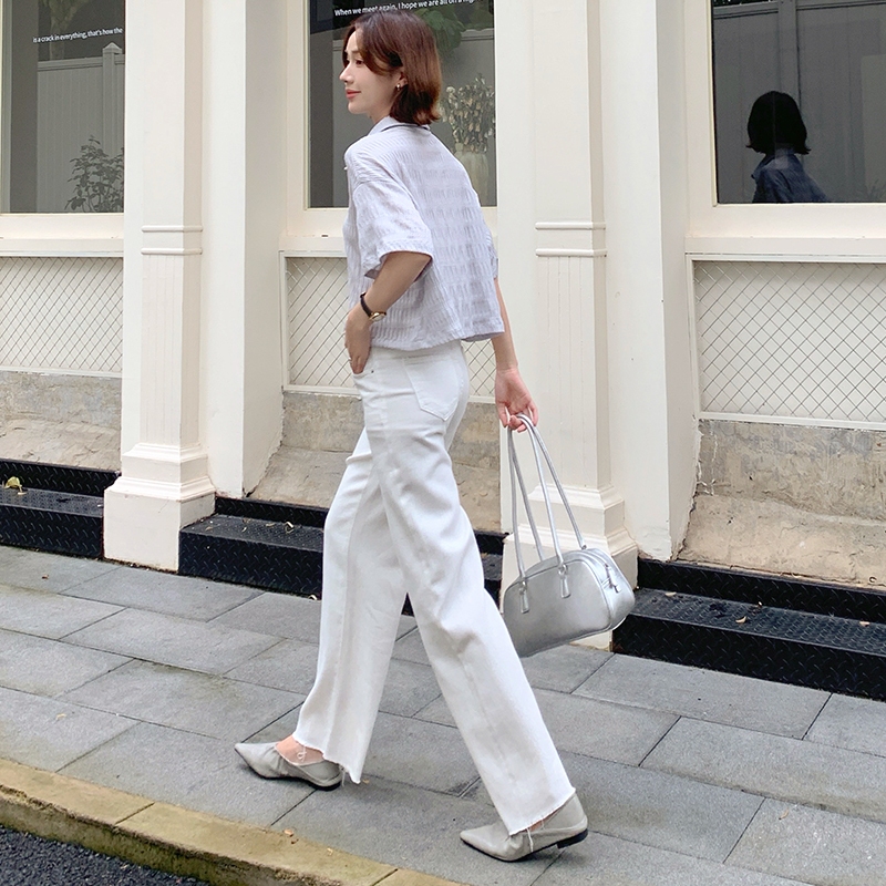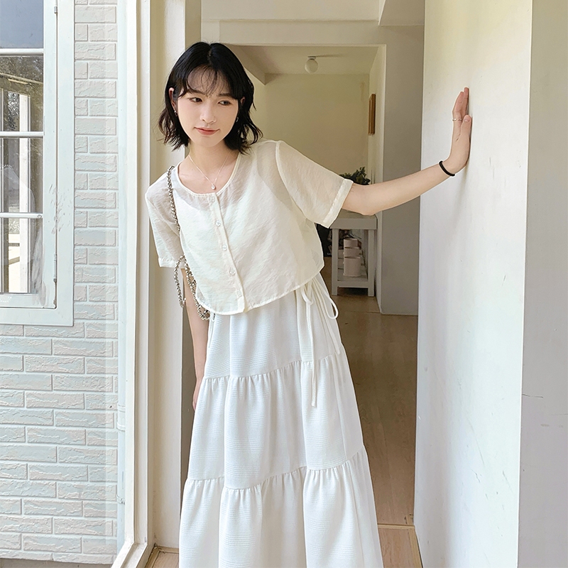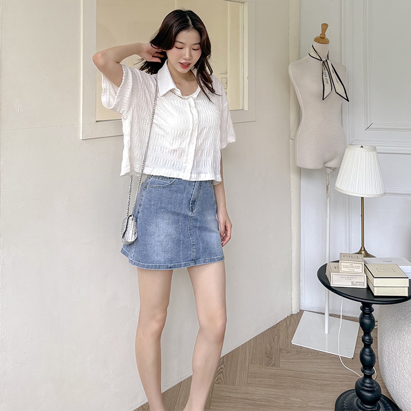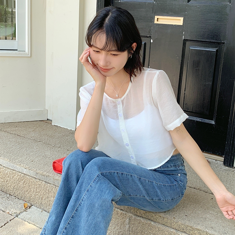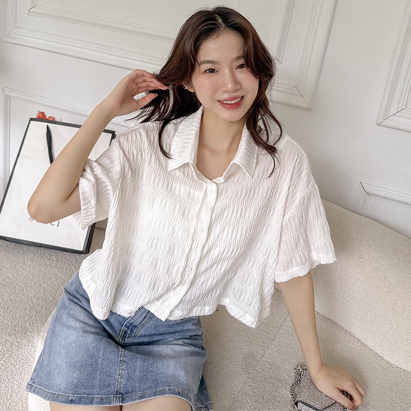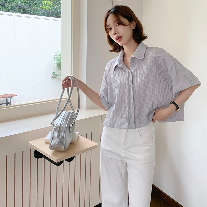 【HARPER】法式溫柔織紋襯衫 | 現貨 短袖上衣 襯衫 婚禮 短版【CLC42125J】米杏,F|灰藍,FShirts & BlousesHARPER
