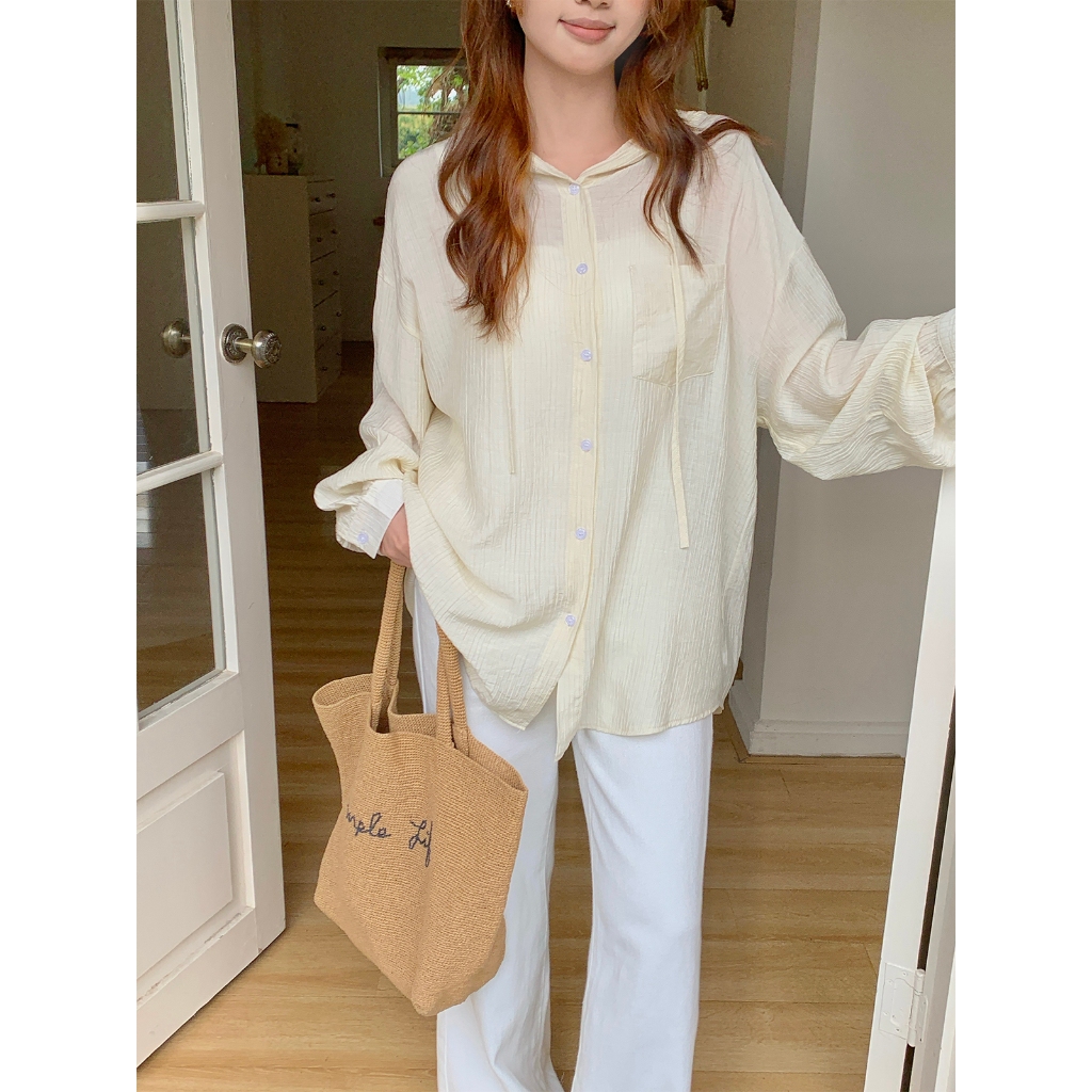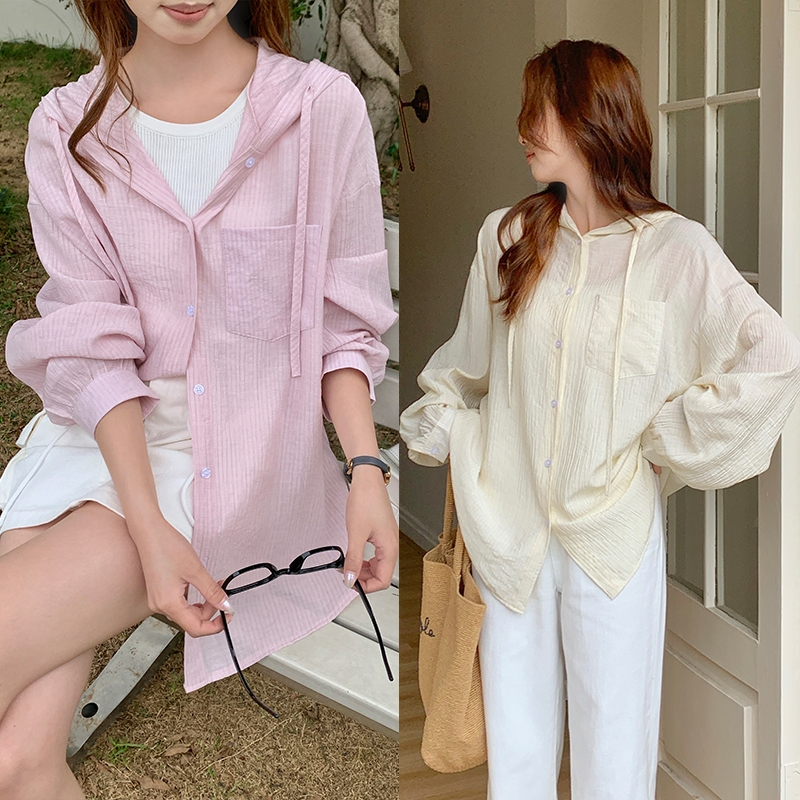 【HARPER】直紋連帽抽繩襯衫 | 現貨 長袖上衣 連帽襯衫 條紋【CLA30114J】白,F|奶油黃,F|粉,FShirts & BlousesHARPER