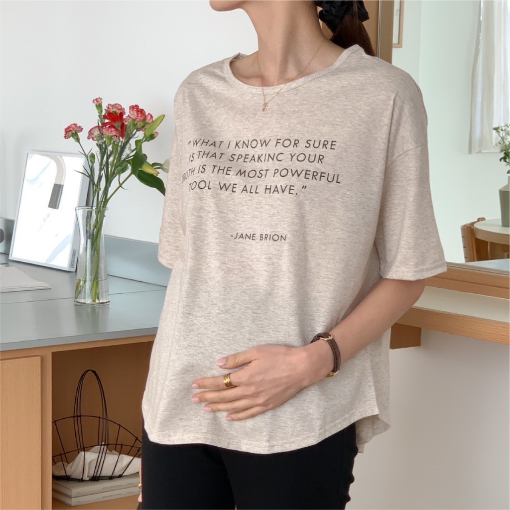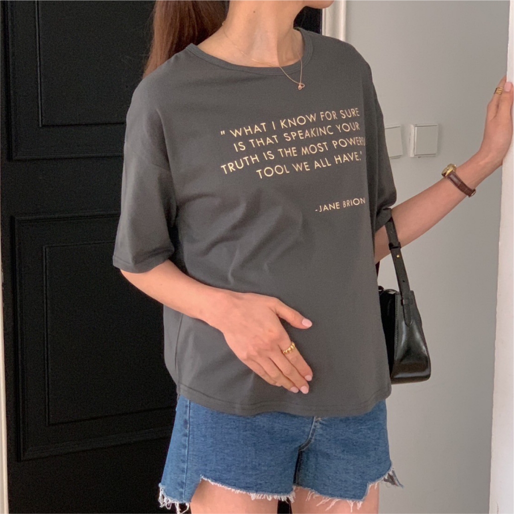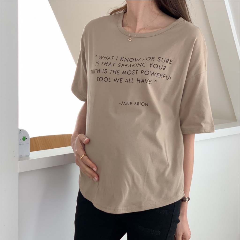 Mamamia孕婦裝 韓系簡約字母休閒孕婦上衣 正韓製 孕婦裝 短袖 寬T 百搭T 孕婦上衣 [C3199]米杏|奶茶|深灰Maternity TopsMamamia孕婦裝