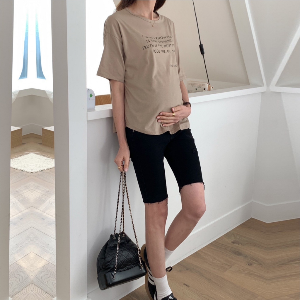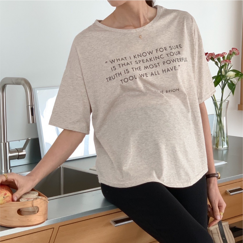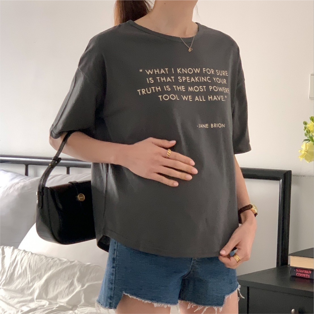 Mamamia孕婦裝 韓系簡約字母休閒孕婦上衣 正韓製 孕婦裝 短袖 寬T 百搭T 孕婦上衣 [C3199]米杏|奶茶|深灰Maternity TopsMamamia孕婦裝
