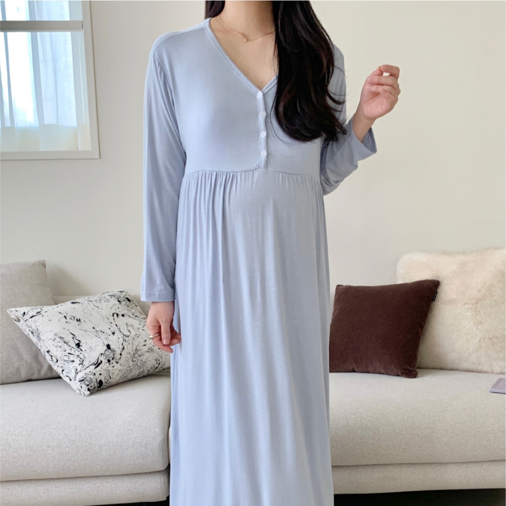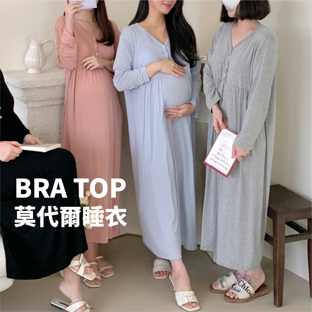 Mamamia孕婦裝 舒柔感抓皺Bra top薄杯居家服 哺乳睡衣 孕婦裝 連衣裙 居家服 哺乳裝 正韓製 [D7675粉|藍|淺灰|黑Breastfeeding WearMamamia孕婦裝