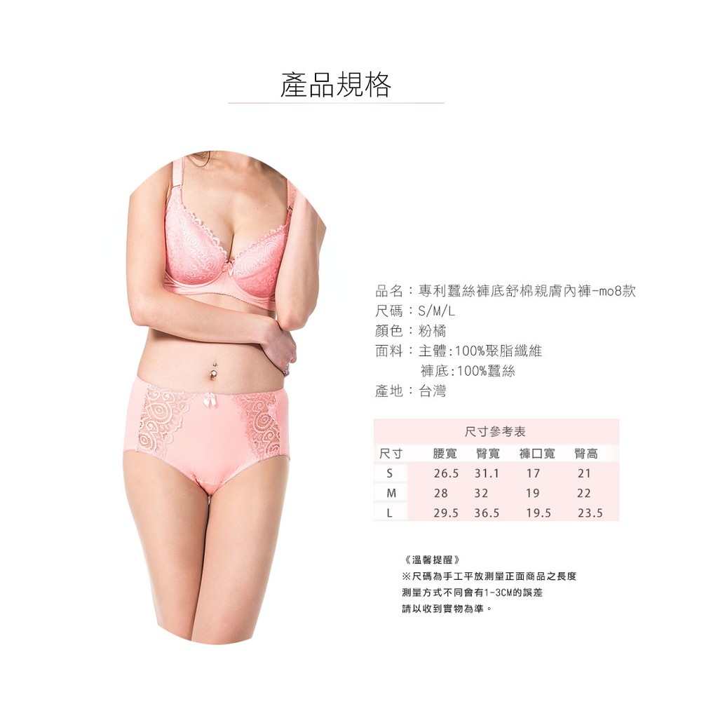 【K’s凱恩絲】MIT超柔感側邊蕾絲專利蠶絲內褲(蠶絲褲底)-粉橘S|M|LVelvet, Silk & SatinKS凱恩絲蠶絲塑身內衣