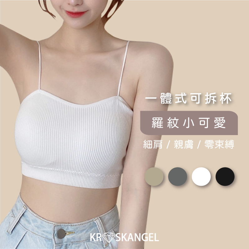 【小可愛 小背心 短版背心】 背心內衣 罩杯背心 胸墊背心 羅紋小可愛 可拆罩杯 細肩帶背心 台灣出貨 14135白色|灰色|黑色|杏色Tanks & CamisolesKR.SKANGEL 內衣、內褲、小可愛、無鋼圈內衣、涼感內衣、冰絲內褲、生理褲