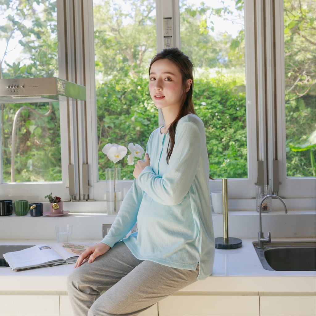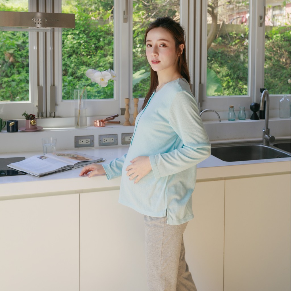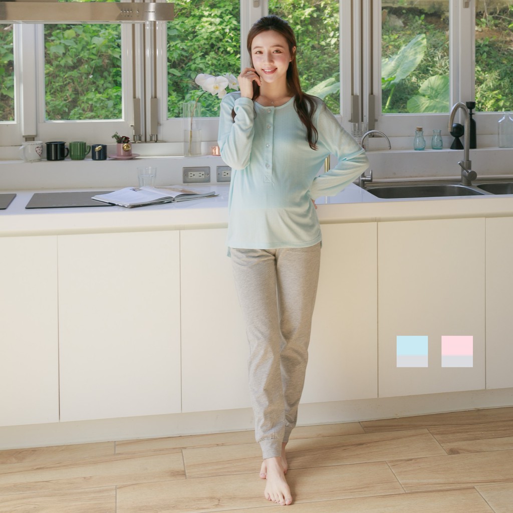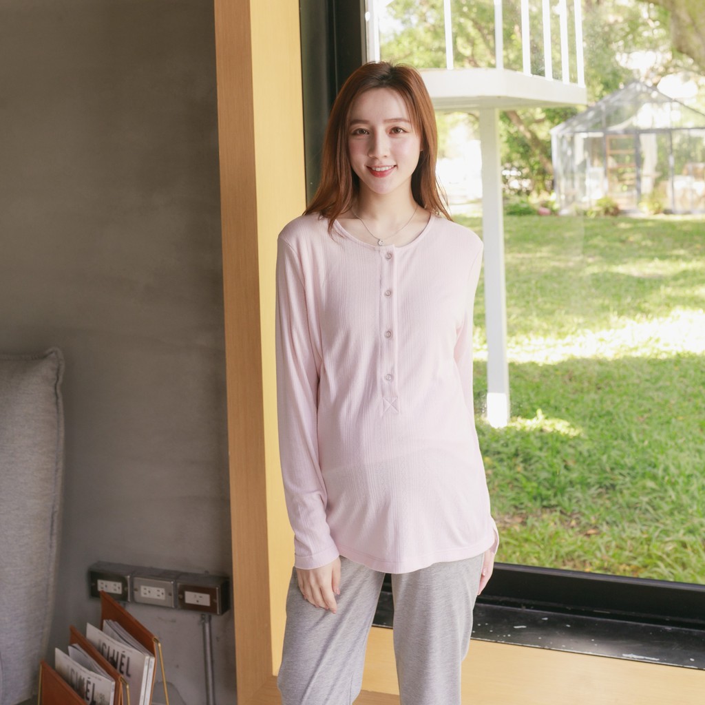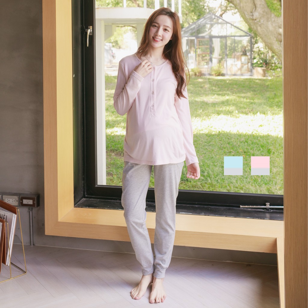 Mamamia孕婦裝 優雅氣質哺乳睡衣 M~L 台灣製 哺乳套裝 喂奶衣 長袖 哺乳衣 月子服 孕婦裝[A1705]粉,M|粉,L|藍,M|藍,LMaternity DressesMamamia孕婦裝