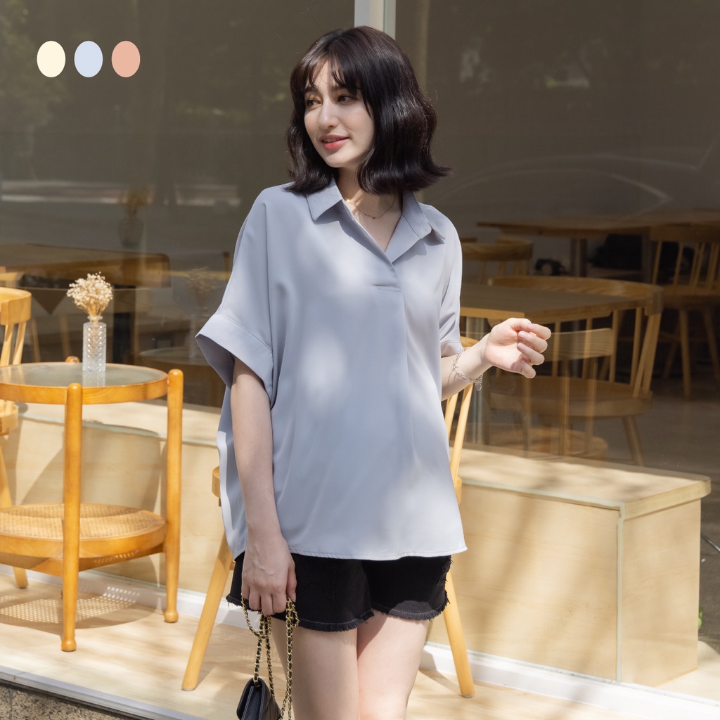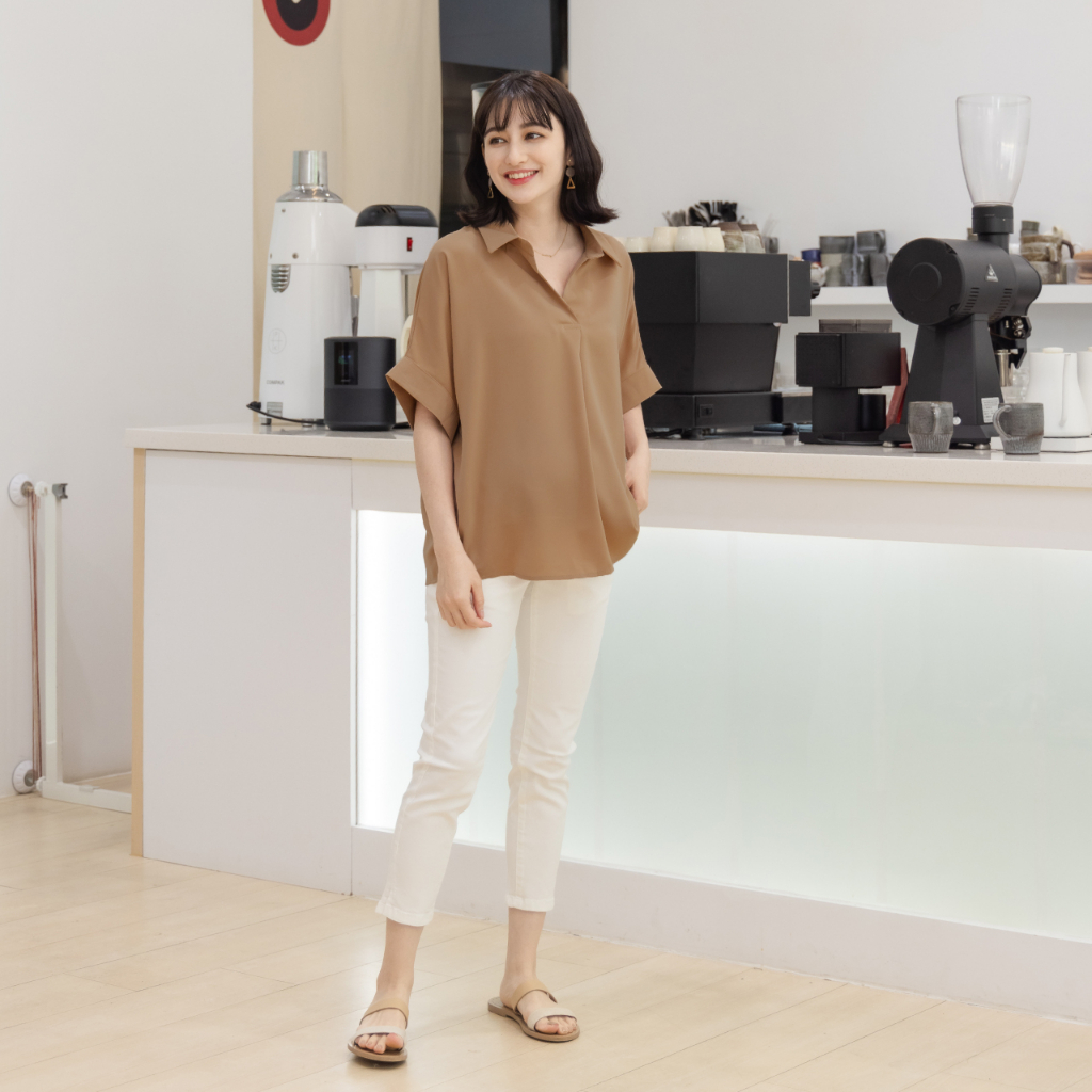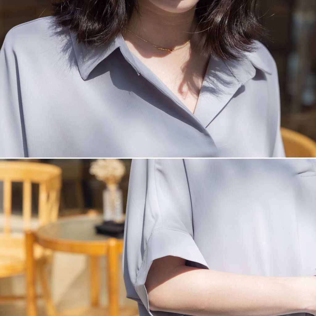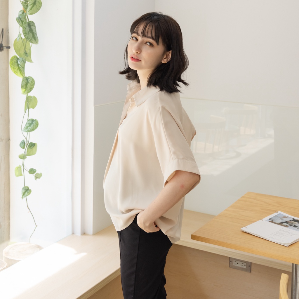 Mamamia孕婦裝 韓系絲滑素面襯衫 正韓製 短袖 孕婦上衣 孕婦裝 上班服 雪紡 [D7264]咖啡|藍|杏Maternity TopsMamamia孕婦裝