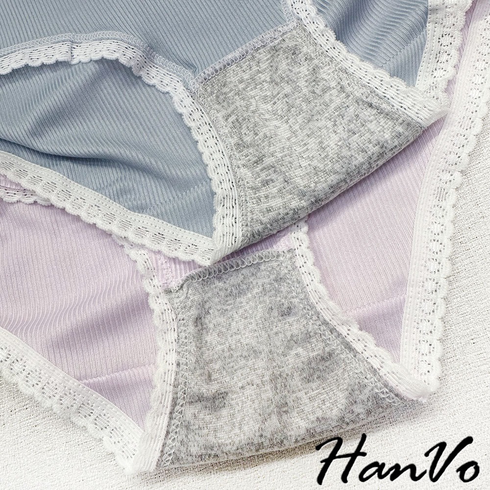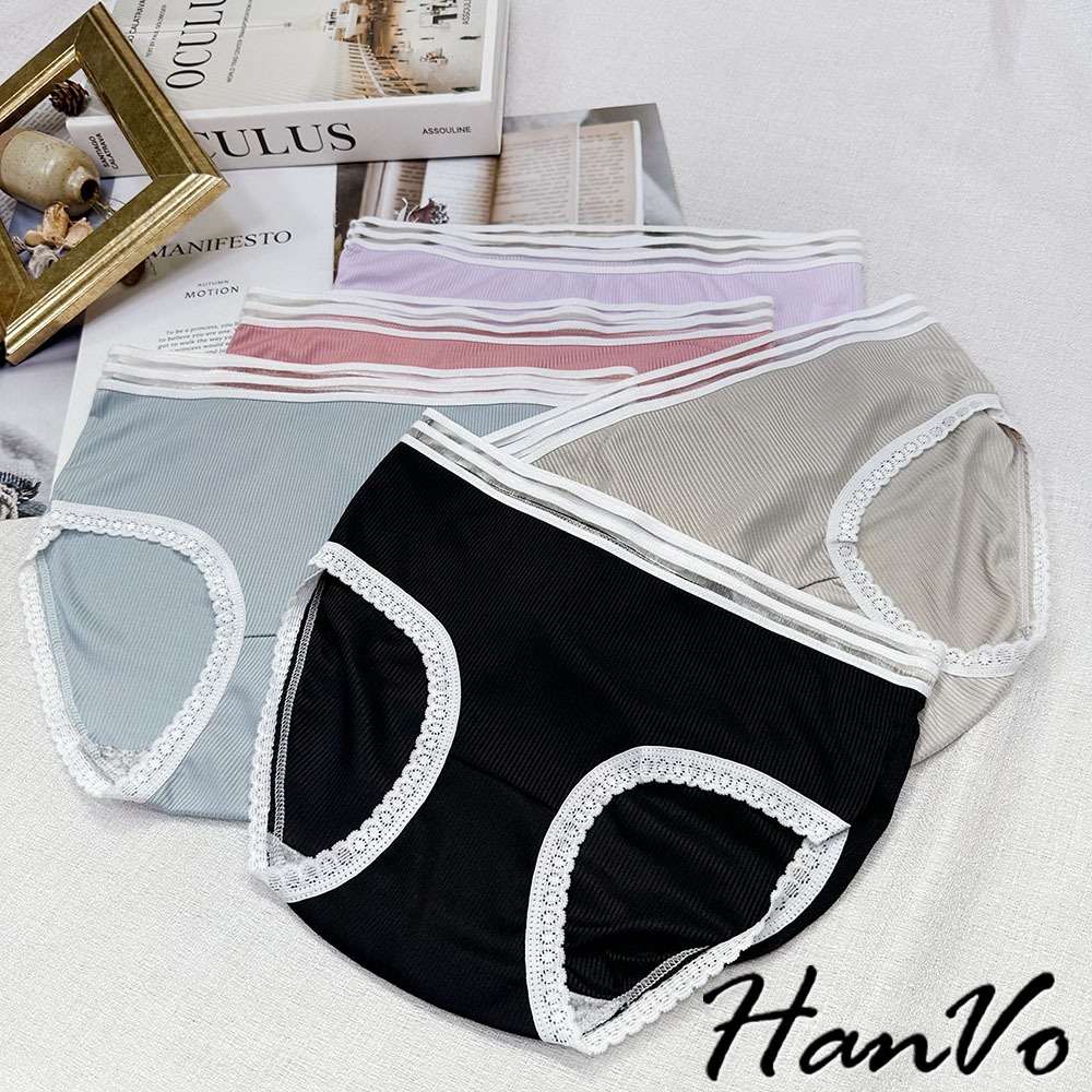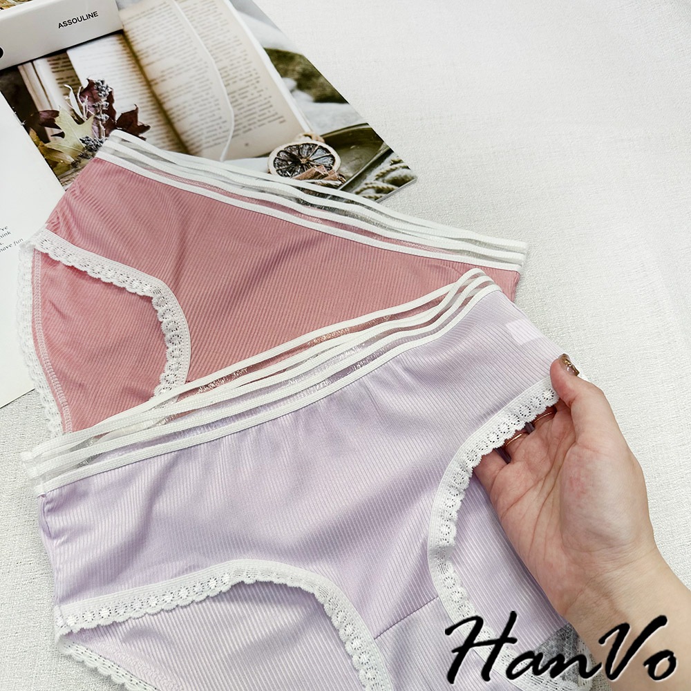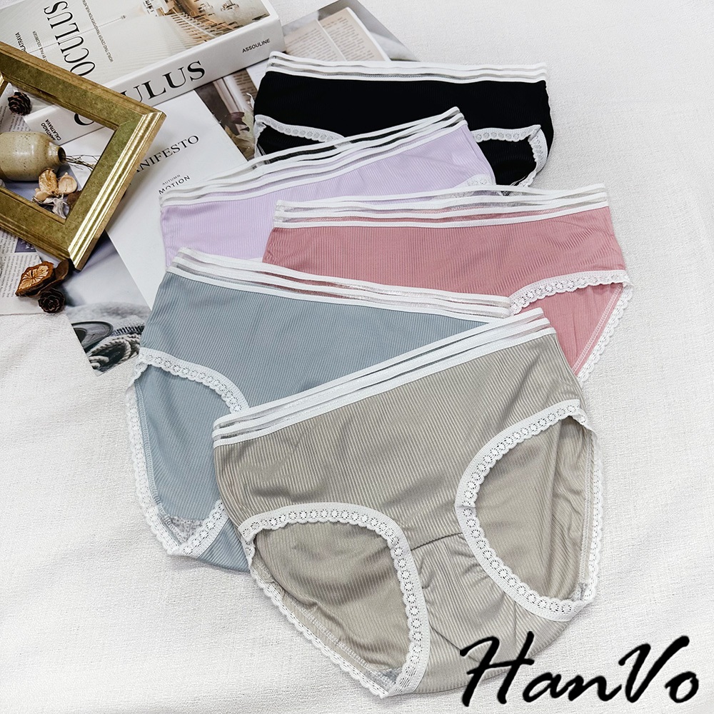 【HanVo】日系螺紋別緻鏤空中腰內褲 獨立包裝 親膚柔軟透氣包覆 女生內褲 內著 A11-5803冷調灰|丁香紫|森林黑|莓果粉|柔霧藍PantiesHanVo Wear Collection