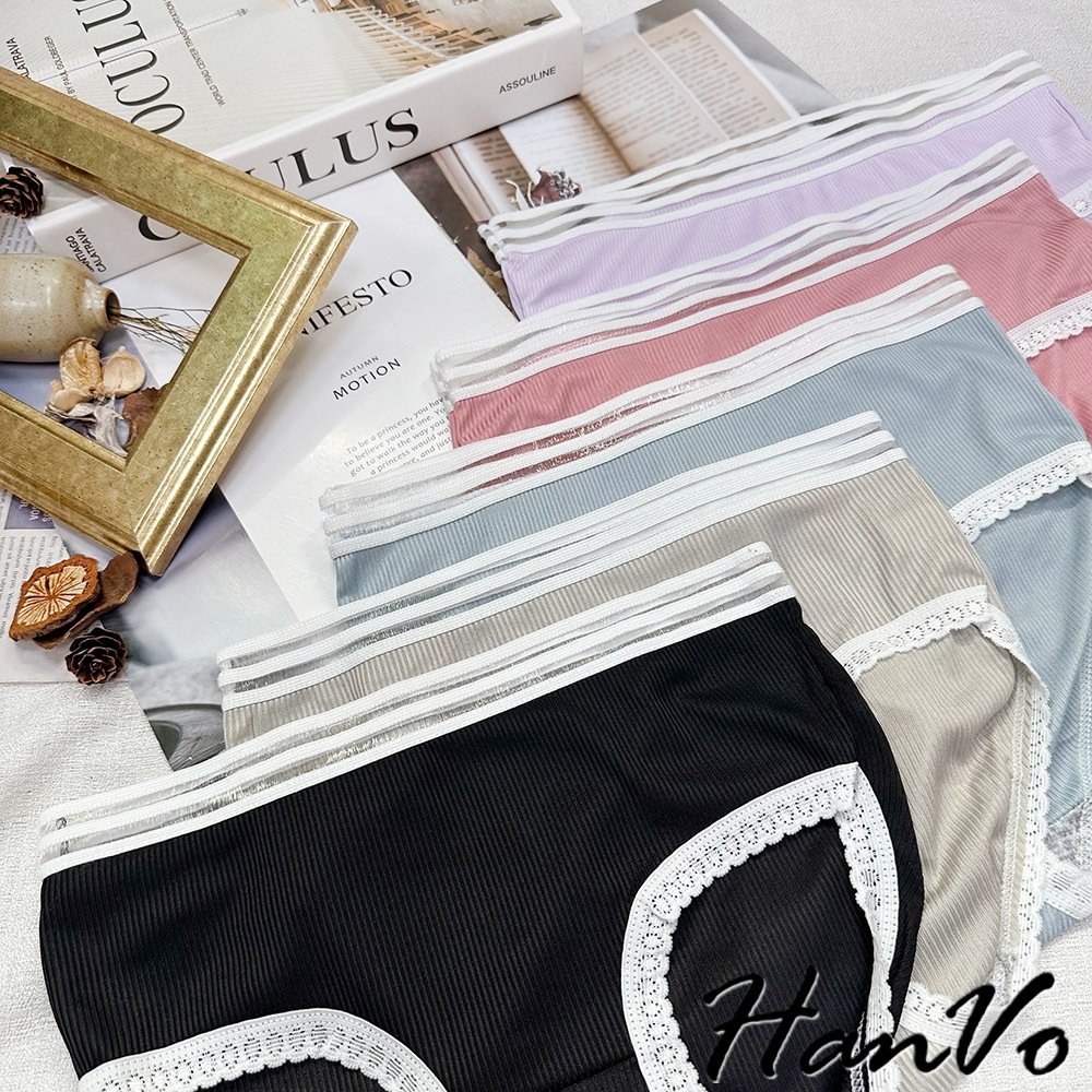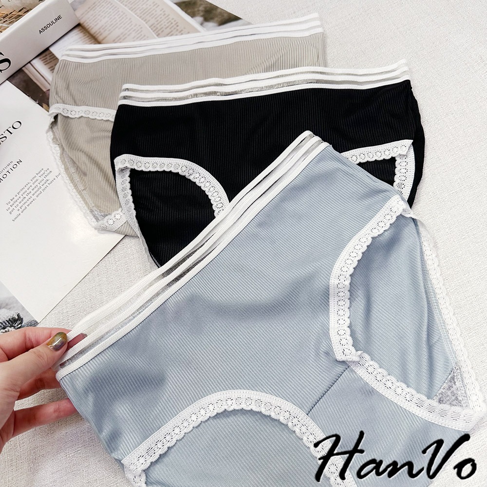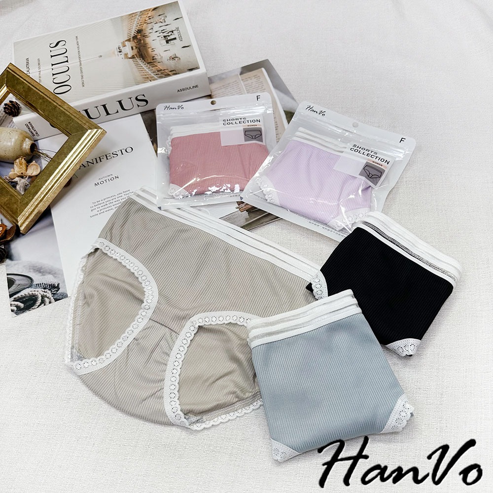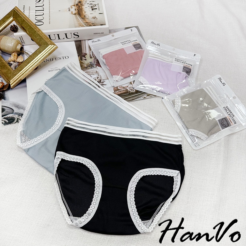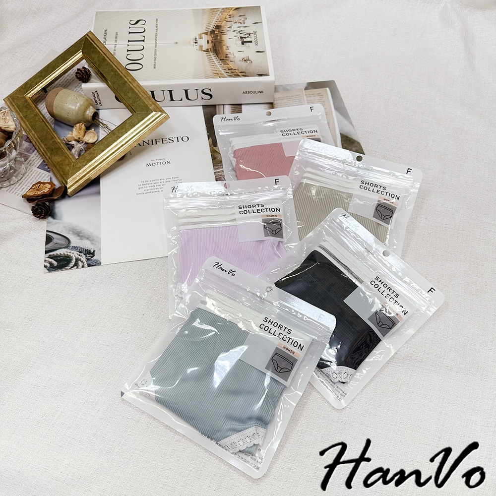 【HanVo】日系螺紋別緻鏤空中腰內褲 獨立包裝 親膚柔軟透氣包覆 女生內褲 內著 A11-5803冷調灰|丁香紫|森林黑|莓果粉|柔霧藍PantiesHanVo Wear Collection