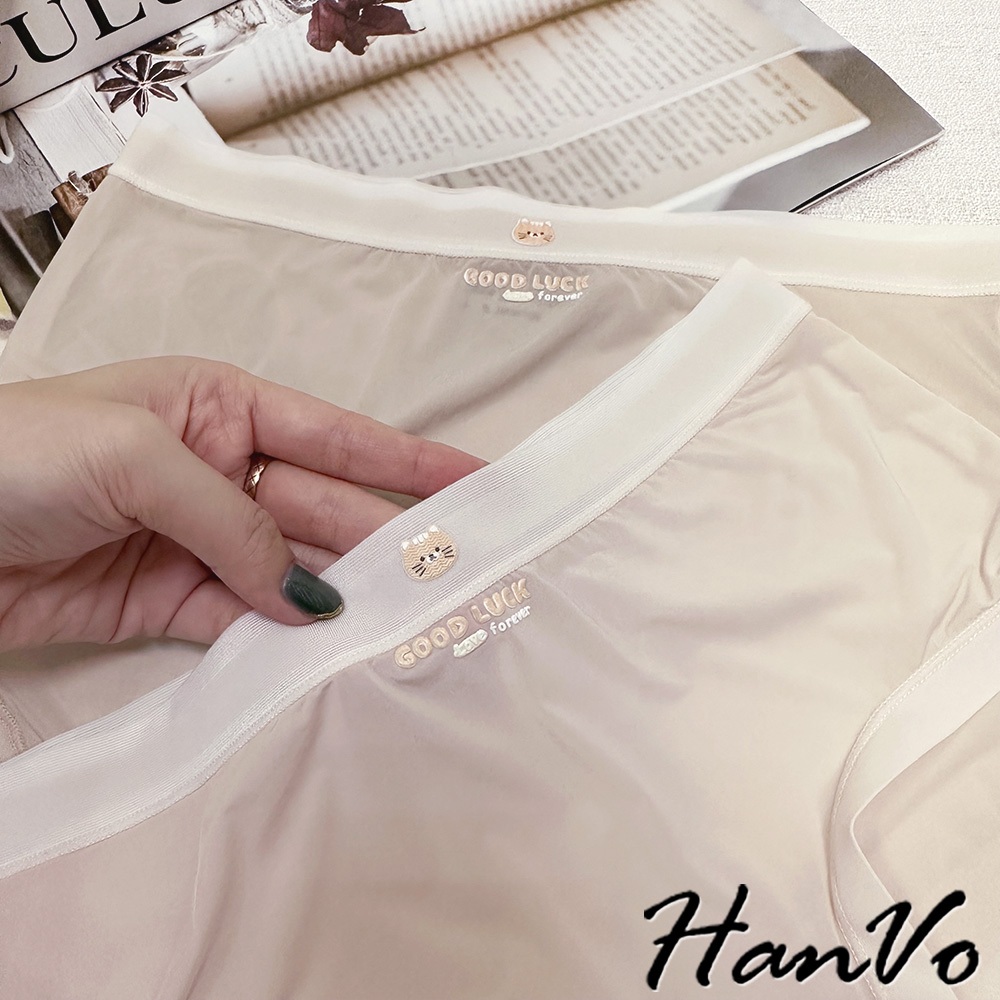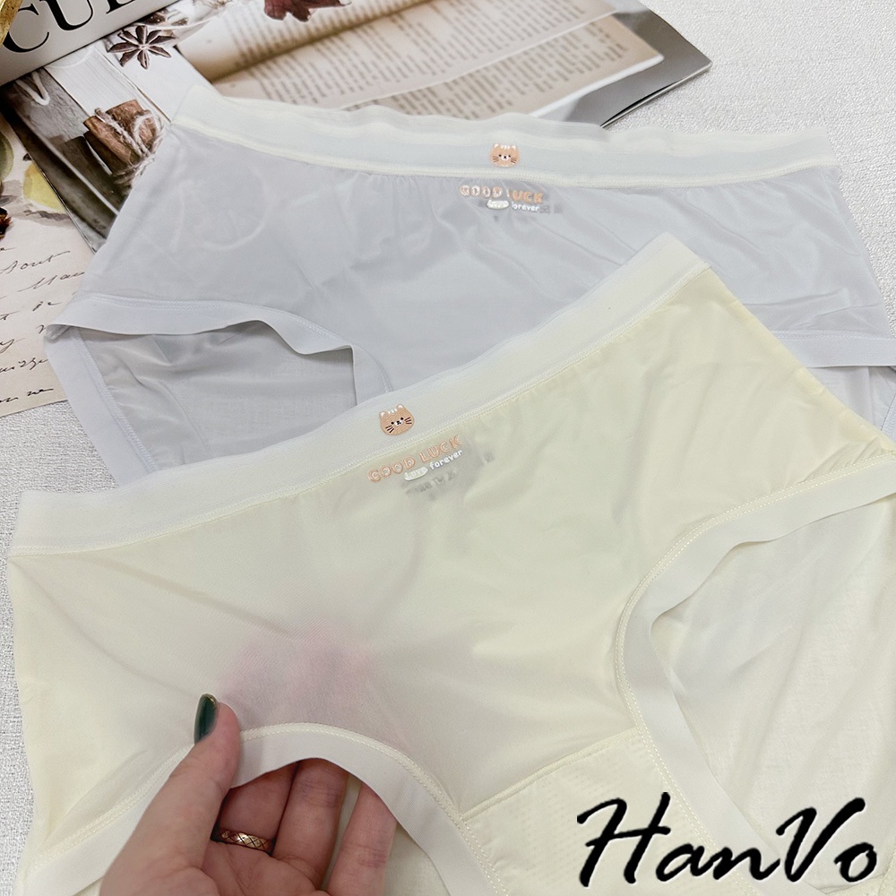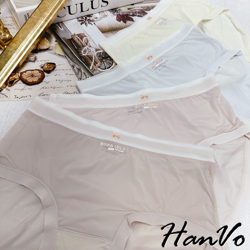 【HanVo】可愛貓咪冰絲輕薄內褲 裸感涼感舒適速乾三角褲 中腰 獨立包裝 流行少女內褲 內著 A11-5262天空藍|香檸黃|櫻花粉|蜜茶咖PantiesHanVo Wear Collection