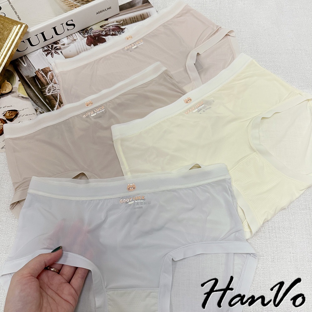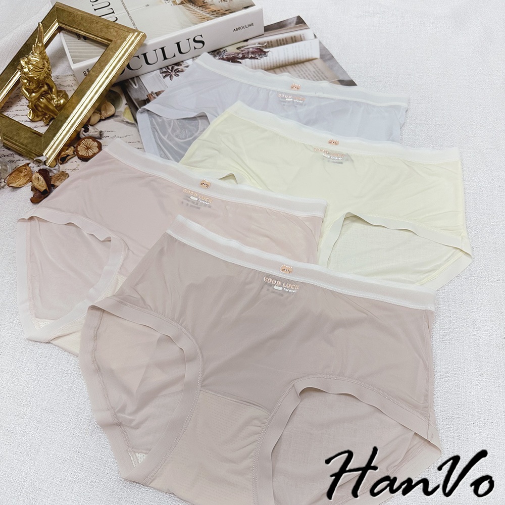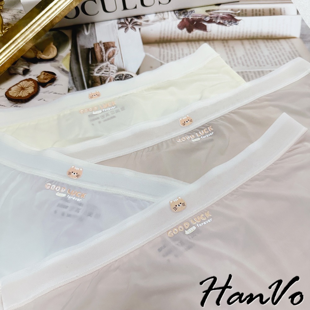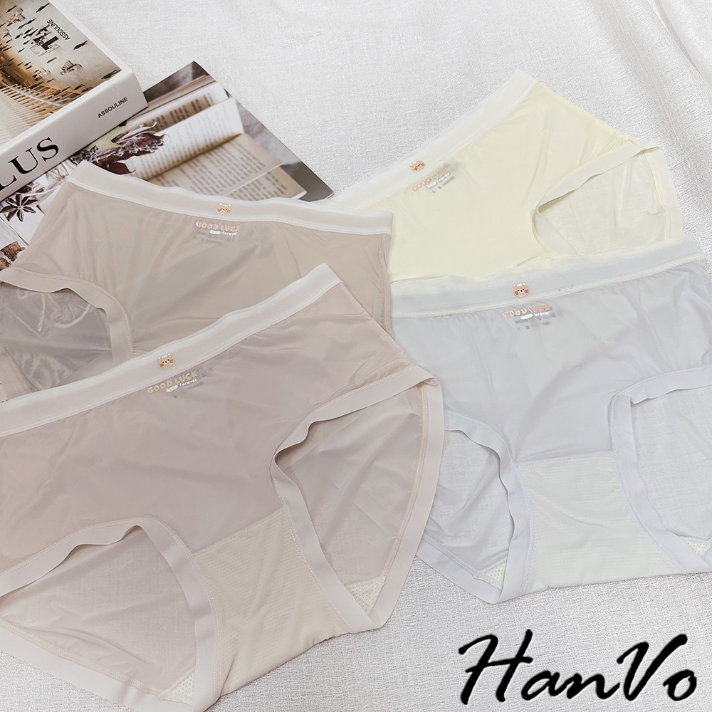 【HanVo】可愛貓咪冰絲輕薄內褲 裸感涼感舒適速乾三角褲 中腰 獨立包裝 流行少女內褲 內著 A11-5262天空藍|香檸黃|櫻花粉|蜜茶咖PantiesHanVo Wear Collection
