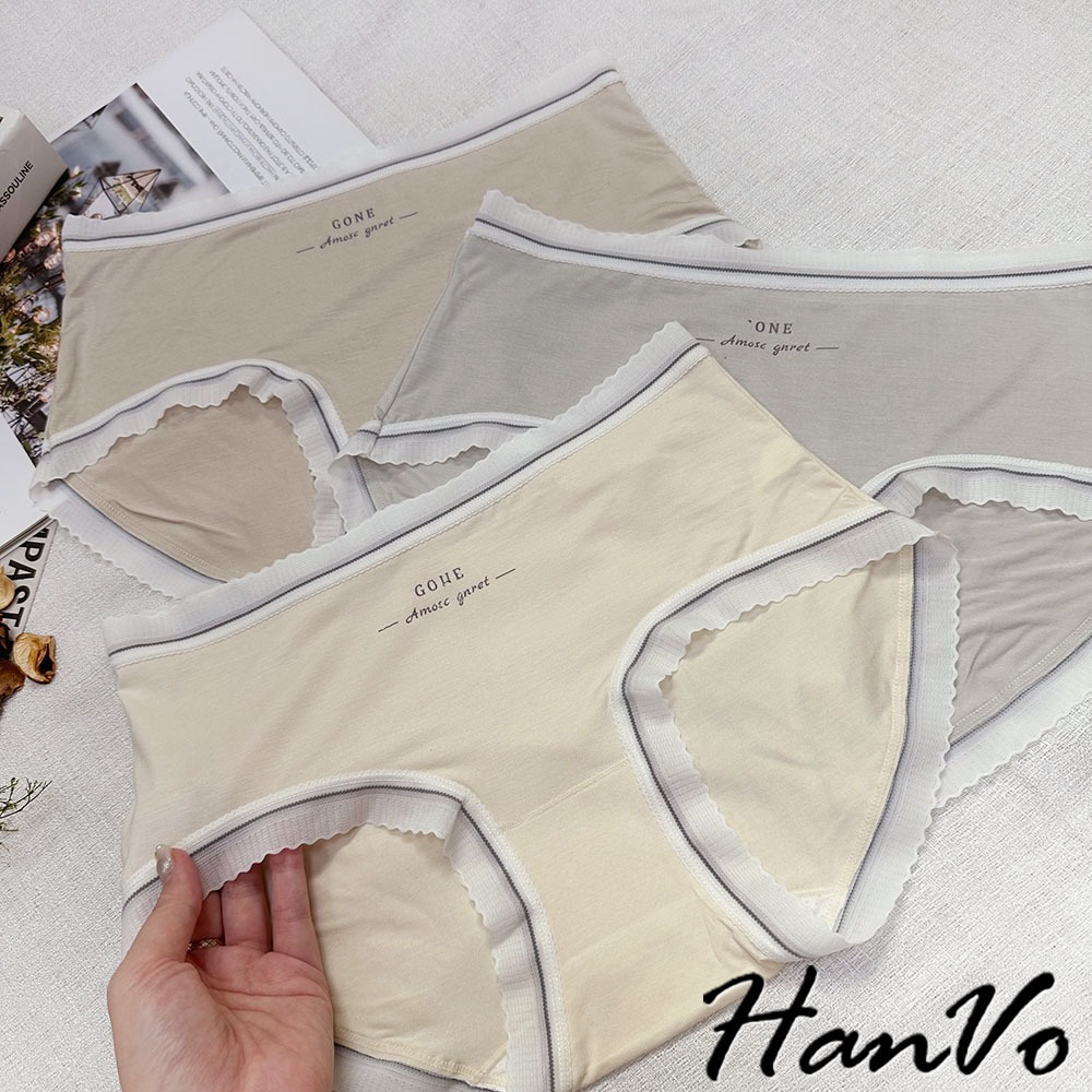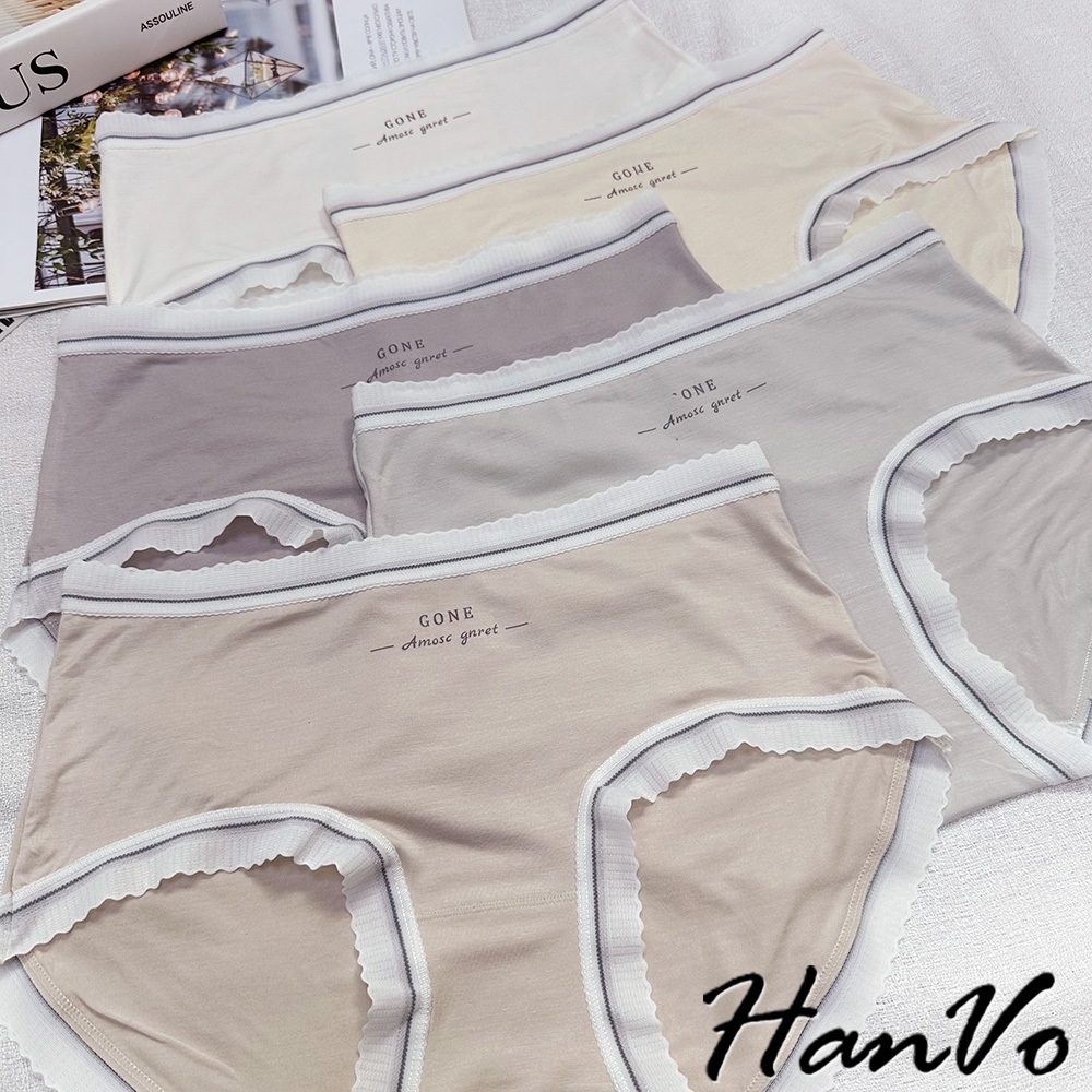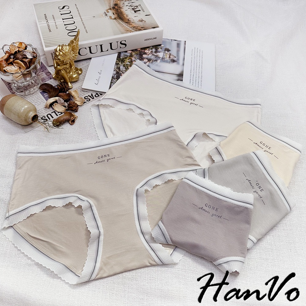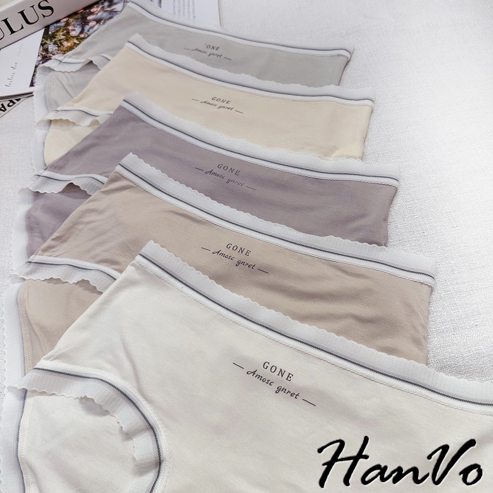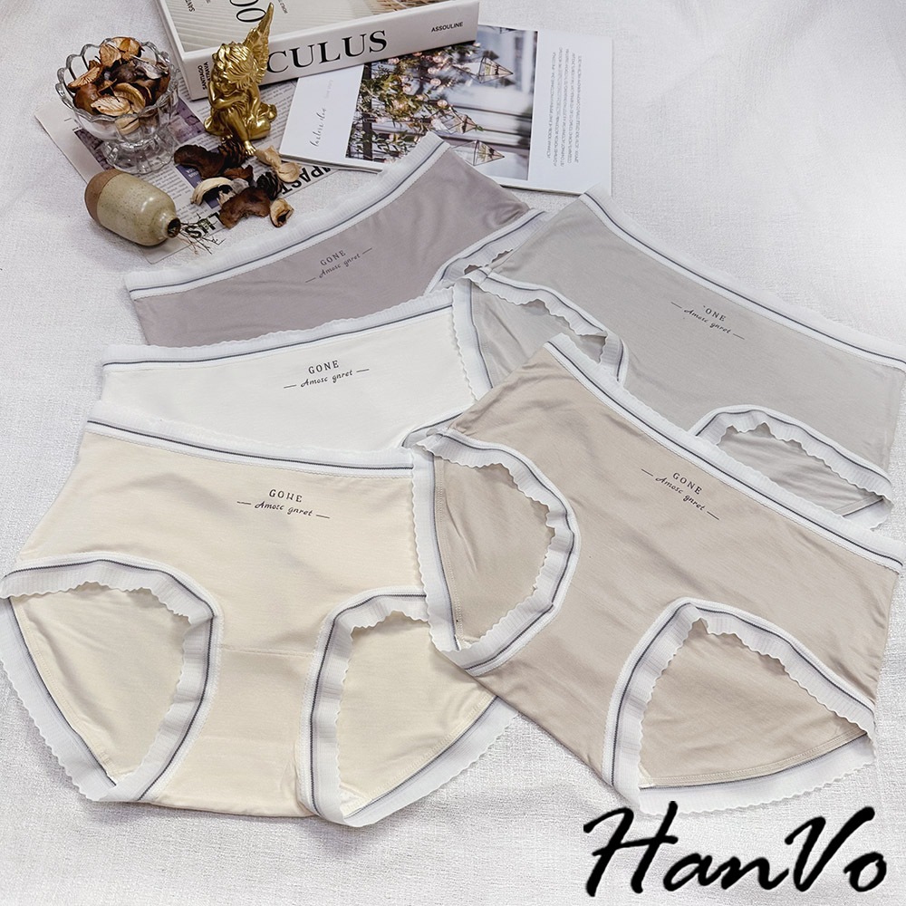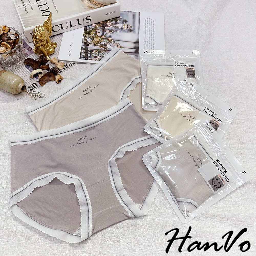 【HanVo】GONE字母柔感霧色內褲 獨立包裝 親膚細緻中腰三角褲 流行少女內褲 內著 A11-5218霧灰紫|綿羊白|柔亮膚|燕麥咖|貝殼灰PantiesHanVo Wear Collection