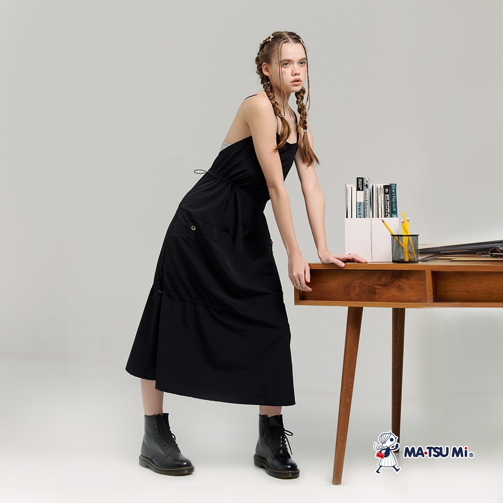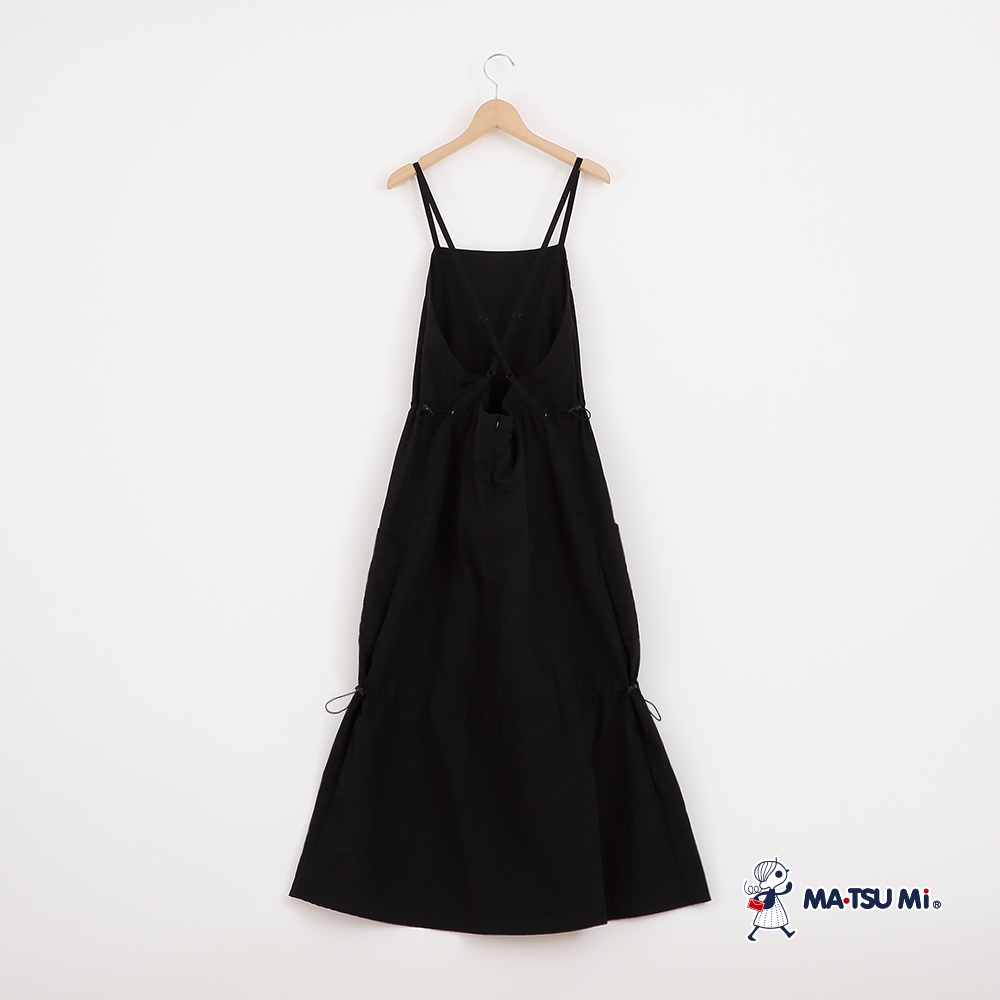 MA‧TSU Mi 工裝抽繩收腰大口袋細肩後交叉露背美型洋裝(黑)黑,Free SizeMA•TSU Mi瑪之蜜官方旗艦店