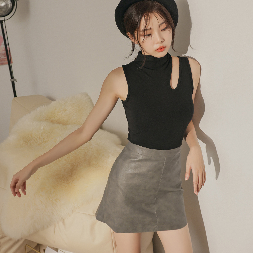 IN SHOP 美拉德擦色皮短裙-共3色【KT21726】卡,S|卡,M|灰,L|黑,S|黑,M|黑,L|卡,L|灰,S|灰,MIN’ SHOP 旗艦店