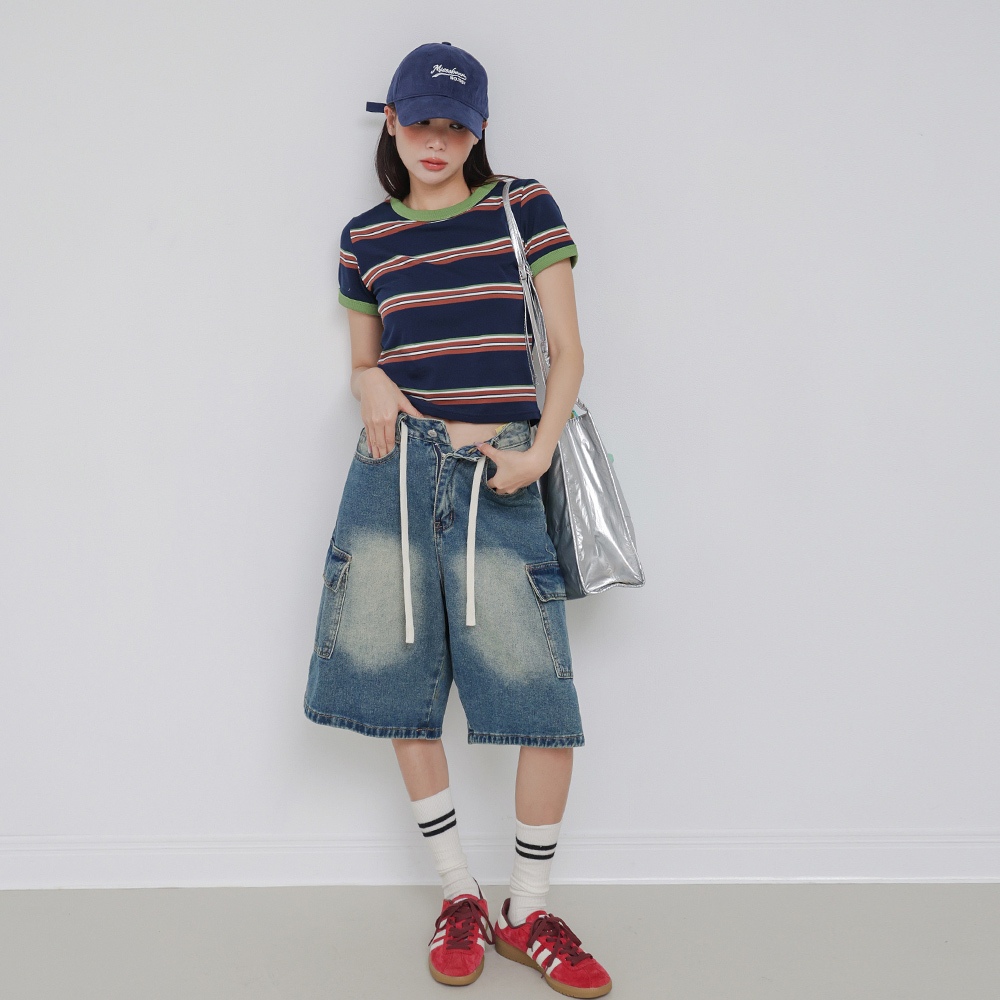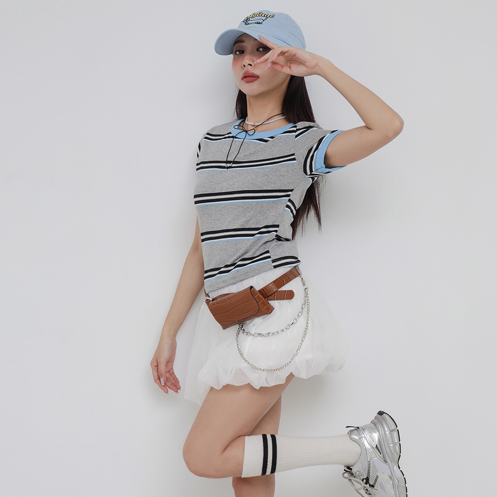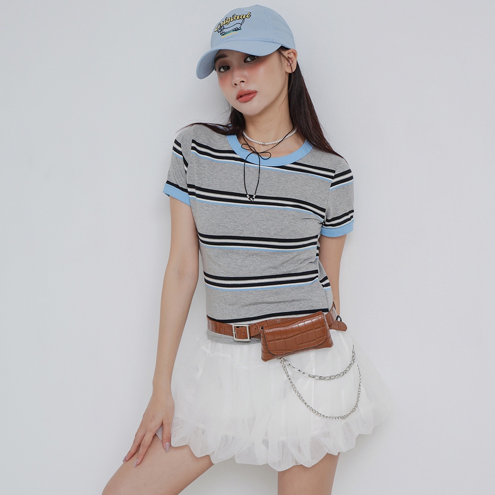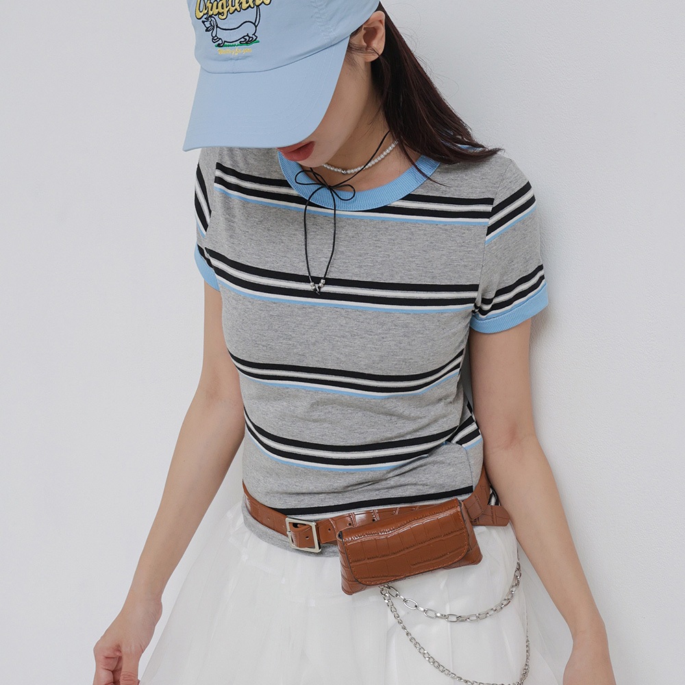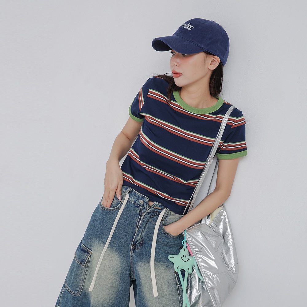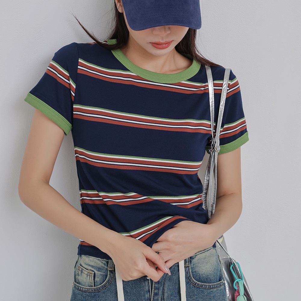 IN SHOP 撞色邊橫條短T-共2色【KT224431】綠|天藍T-shirtsIN’ SHOP 旗艦店