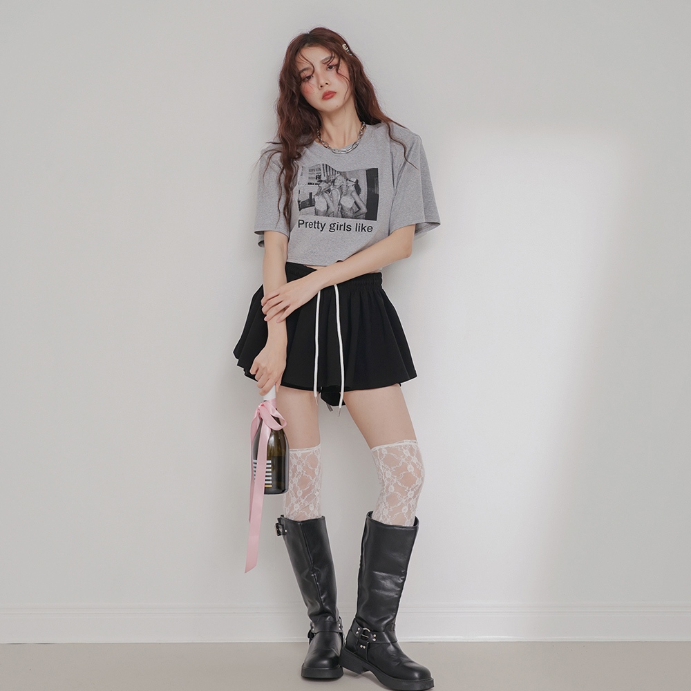 IN SHOP 棉料綁帶褲裙-共3色【KT201711】紅|灰|黑SkortsIN’ SHOP 旗艦店