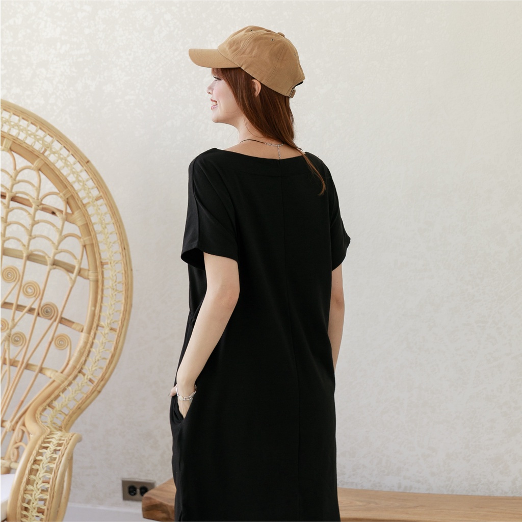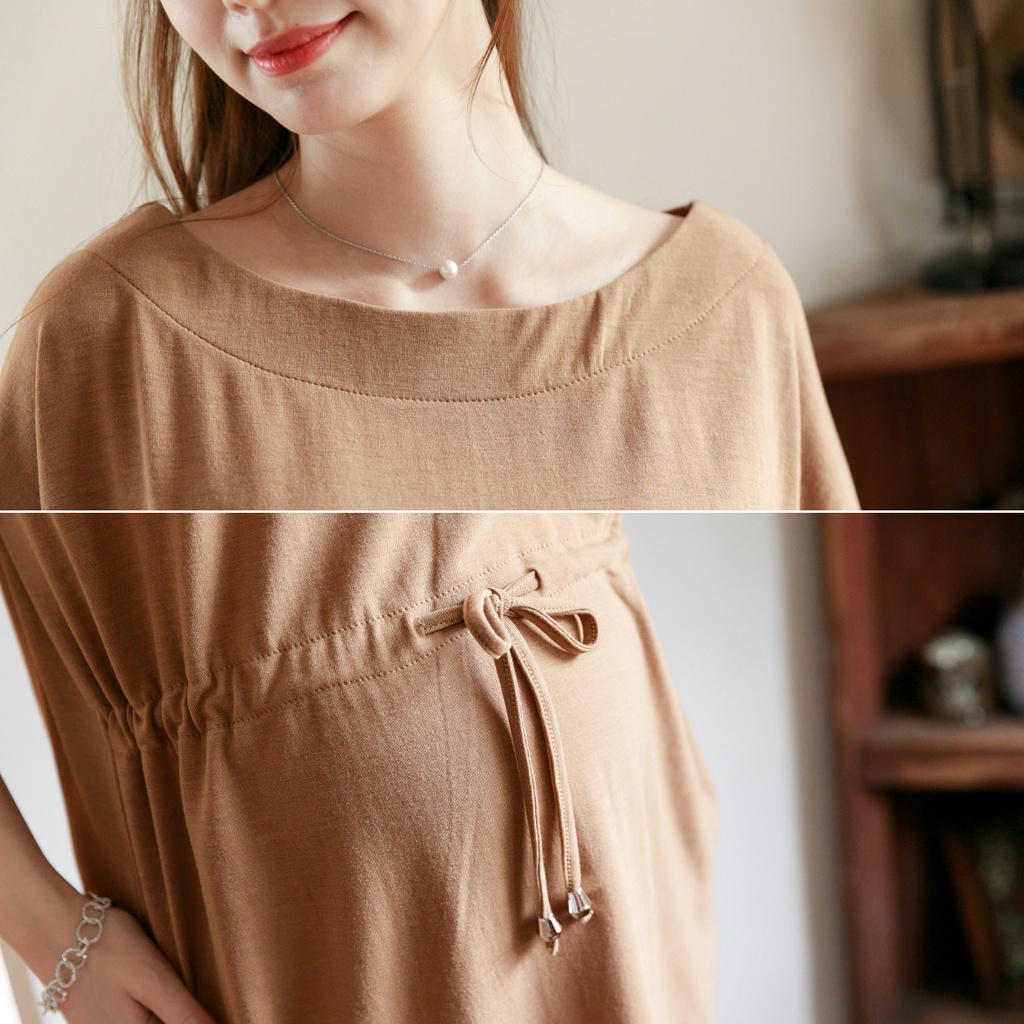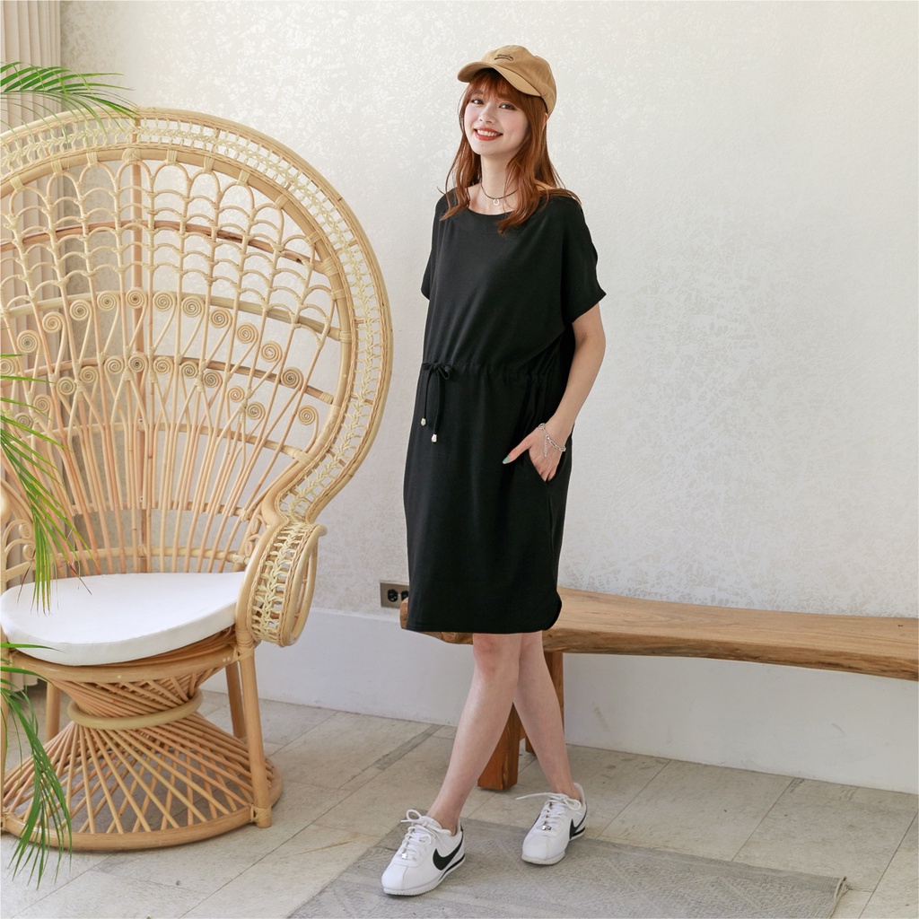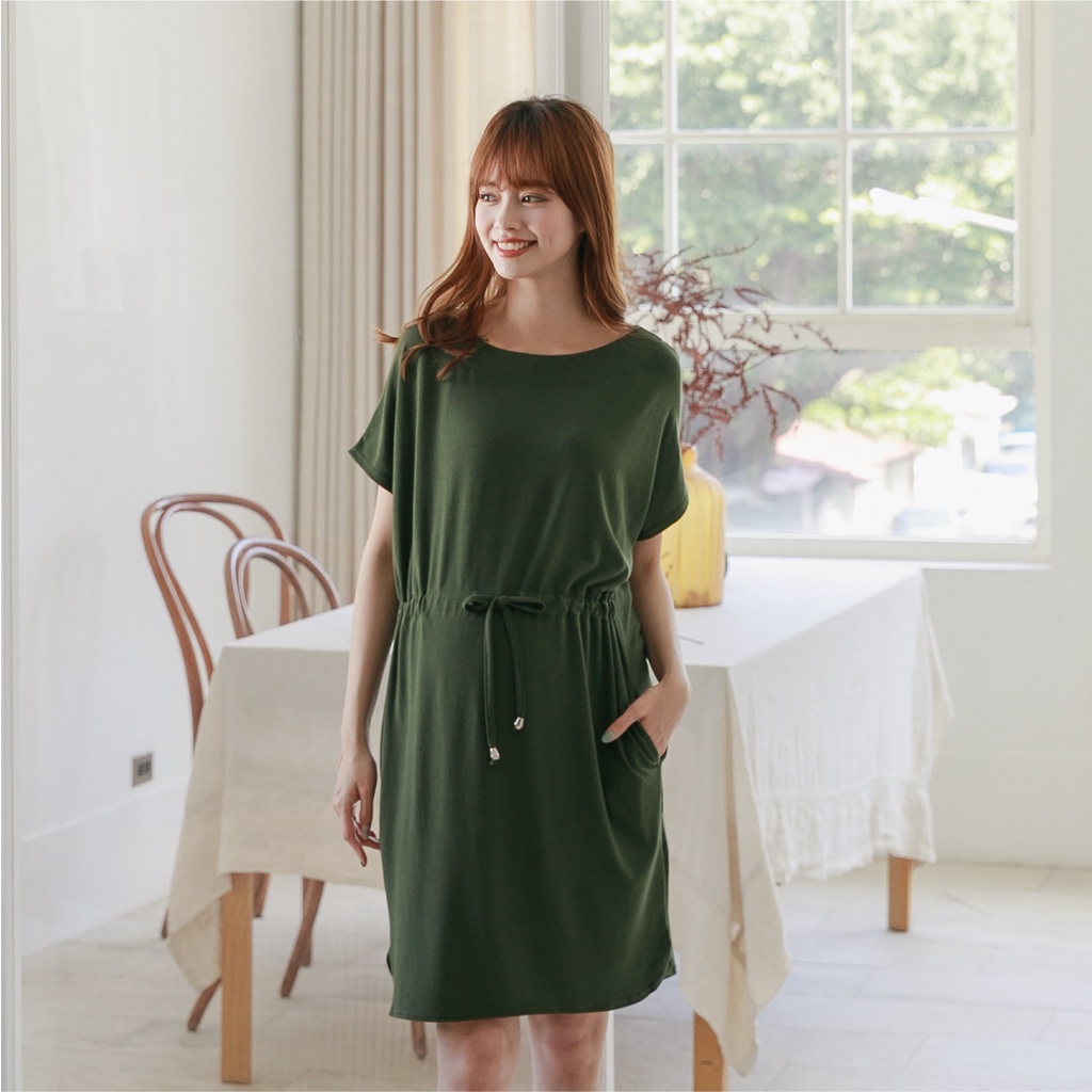 Mamamia孕婦裝 素面腰抽繩短洋裝 台灣製 孕婦裝 短袖 孕婦裙 孕婦連身裙 連身洋裝 孕婦洋裝 [D7135]咖啡|綠|黑|深藍Maternity DressesMamamia孕婦裝
