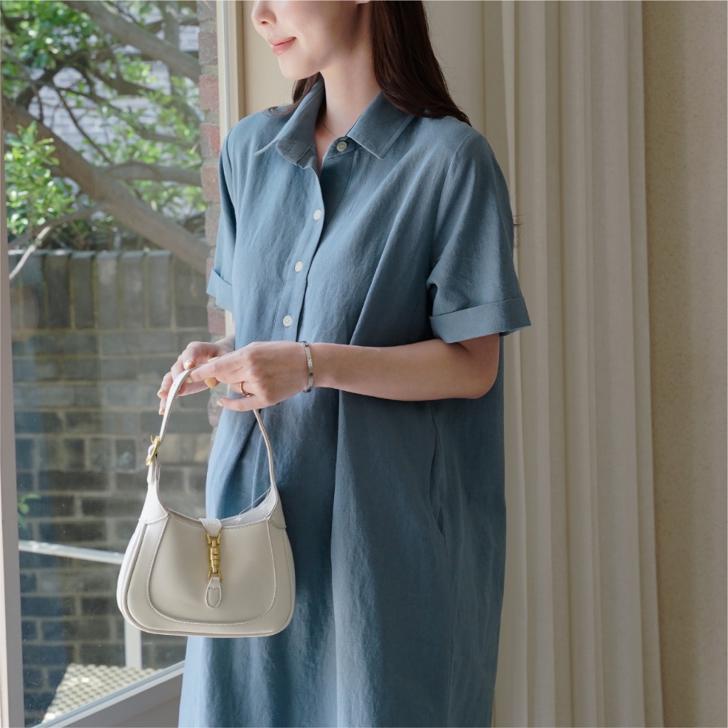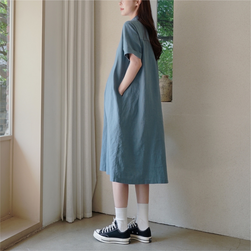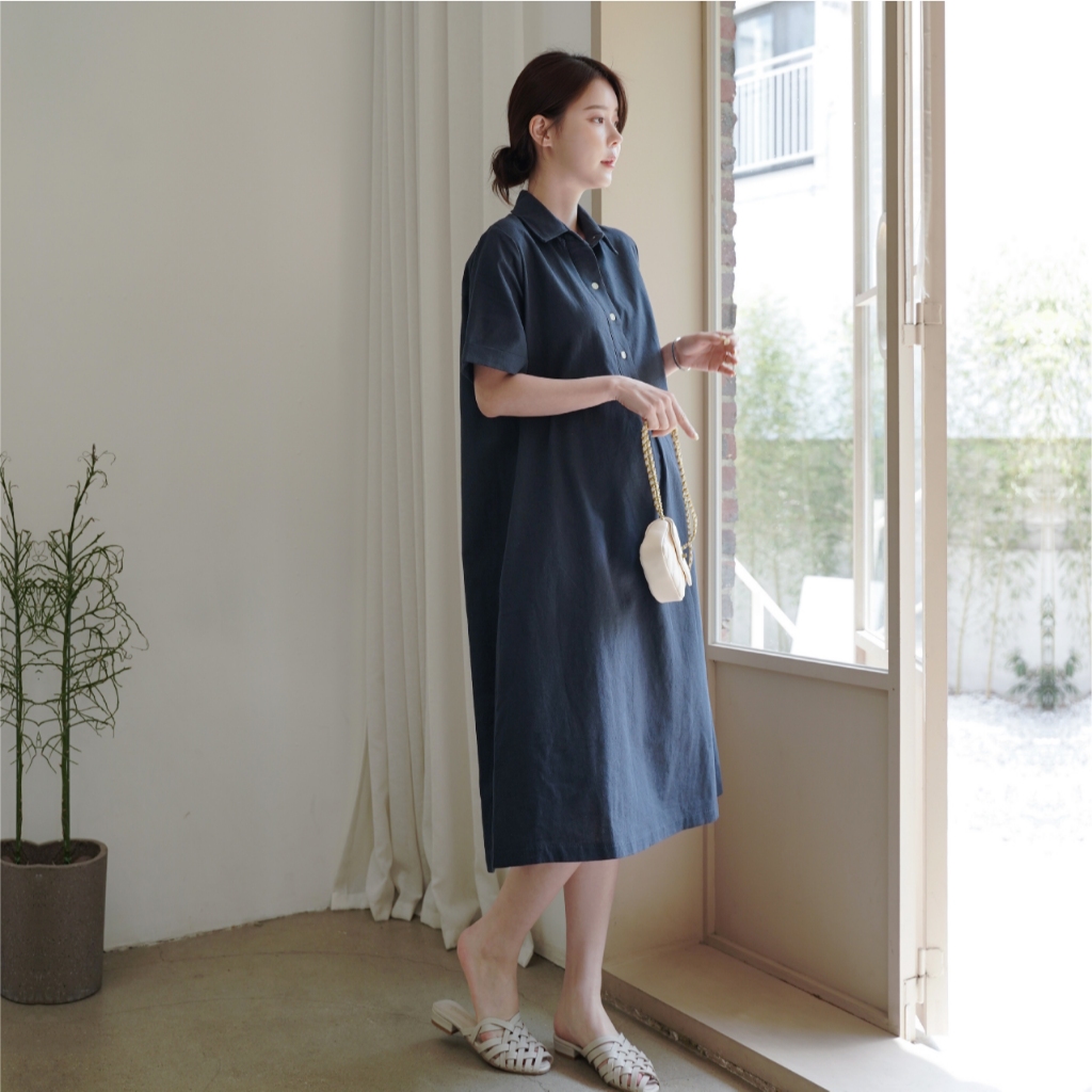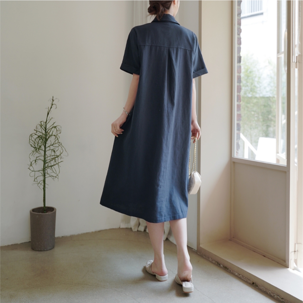 Mamamia孕婦裝 直角肩俐落麻質孕婦洋 正韓製 孕婦裙 洋裝 短袖 連身洋裝 孕婦洋裝 [D7617]深藍|淺藍Maternity DressesMamamia孕婦裝